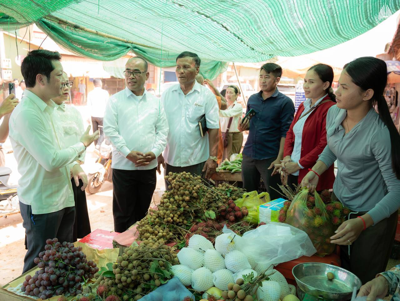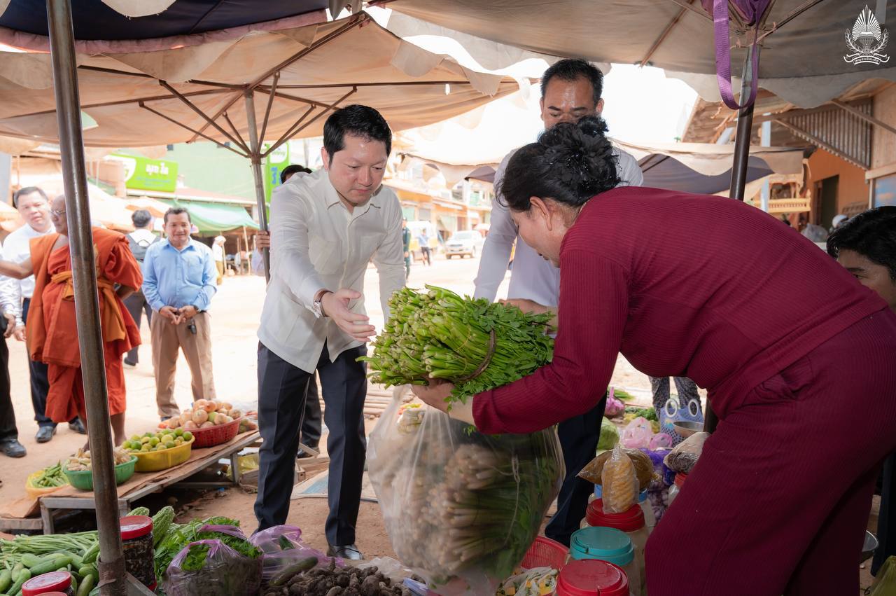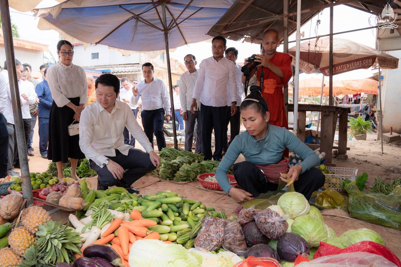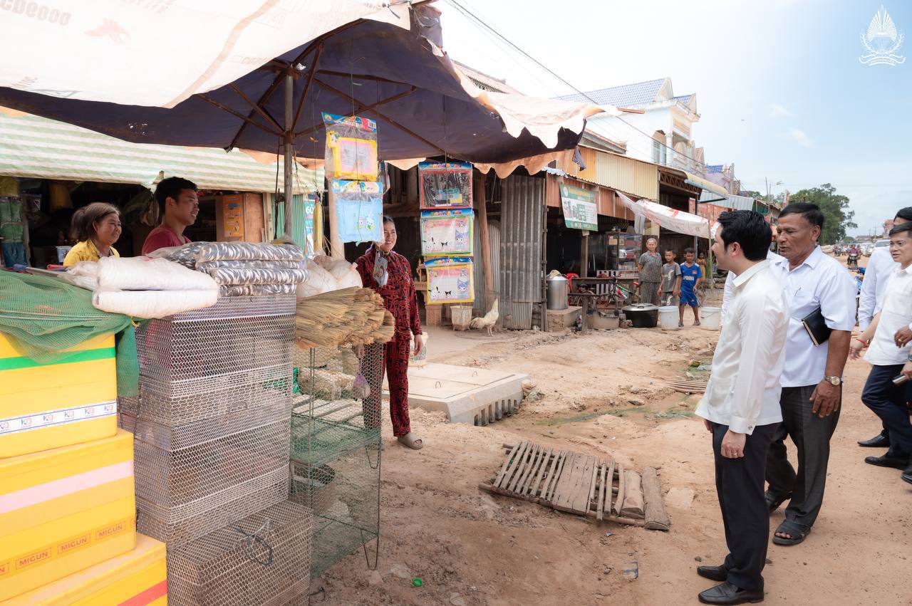 ខេត្តស្វាយរៀង ៖ ថ្ងៃពុធ ១៤កើត ខែអាសាឍ ឆ្នាំម្សាញ់ សប្តស័ក ព.ស.២៥៦៩ ត្រូវនឹងថ្ងៃទី៩ ខែកក្កដា ឆ្នាំ២០២៥ ឯកឧត្តម សុខ សូកេន រដ្ឋមន្រ្តីក្រសួងអធិការកិច្ច និងជាអនុប្រធានក្រុមការងាររាជរដ្ឋាភិបាលចុះមូលដ្ឋានខេត្តស្វាយរៀង ប្រធានក្រុមការងាររាជរដ្ឋាភិបាលចុះមូលដ្ឋានស្រុករមាសហែក បានអញ្ជើញចុះជួបសាកសួរសុខទុក្ខបងប្អូនប្រជាពលរដ្ឋ ពុកម៉ែ មាមីង លោកតាលោកយាយ ដែលប្រកបរបរលក់ដូរនៅផ្សារចន្ត្រី ស្ថិតនៅភូមិចុងព្រែក ឃុំចន្ត្រី ស្រុករមាសហែក ខេត្តស្វាយរៀង អមដំណើរដោយថ្នាក់ដឹកនាំជាច្រើនរូប និងសមាជិក សមាជិកក្រុមការងាររាជរដ្ឋាភិបាលចុះមូលដ្ឋានស្រុករមាសហែក ខេត្តស្វាយរៀង៕