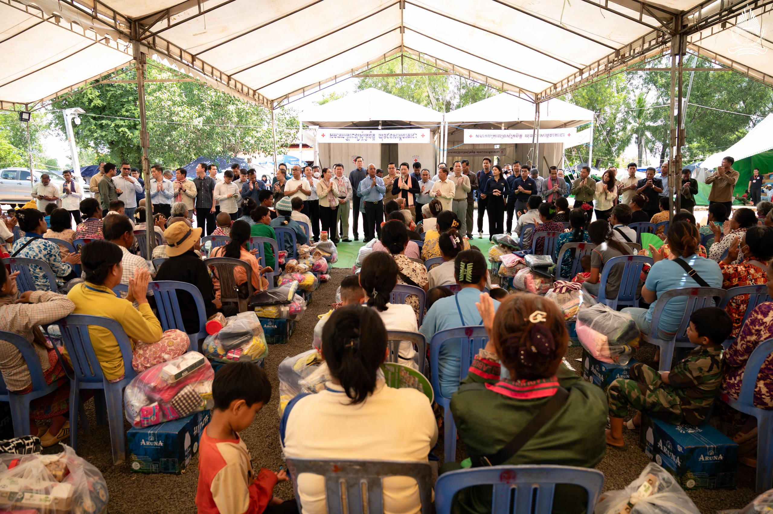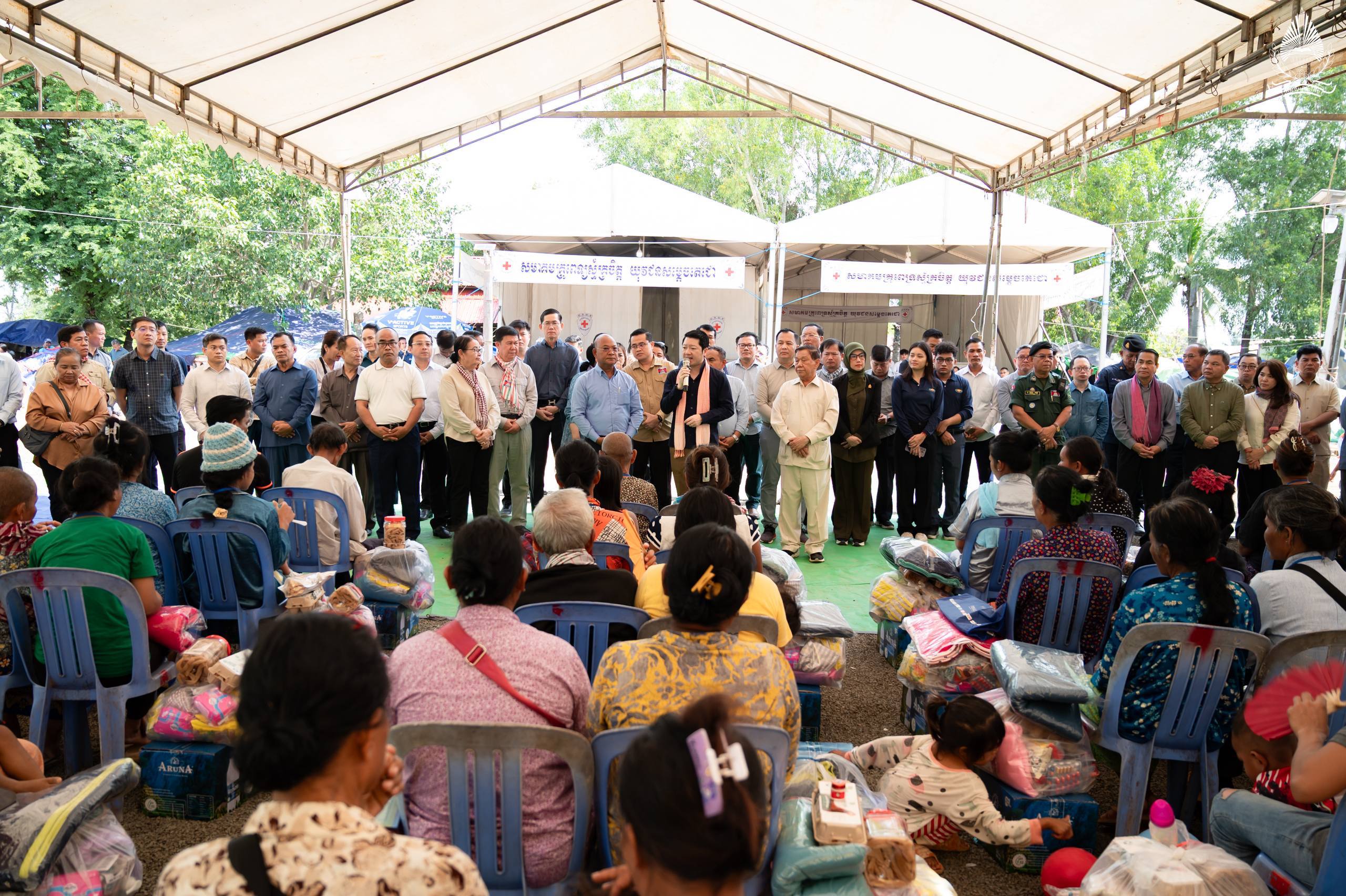 ថ្លែងក្នុងពិធីដ៏មានអត្ថន័យនេះ ឯកឧត្តមរដ្ឋមន្ត្រីបានពាំនាំនូវការផ្តាំផ្ញើសួរសុខទុក្ខពីសំណាក់ សម្តេចអគ្គមហាសេនាបតីតេជោ ហ៊ុន សែន ប្រធានព្រឹទ្ធសភា និងសម្តេចមហាបវរធិបតី ហ៊ុន ម៉ាណែត នាយករដ្ឋមន្ត្រីនៃព្រះរាជាណាចក្រកម្ពុជា និងបានបញ្ជាក់ជូនបងប្អូនប្រជាពលរដ្ឋអំពីចំណាត់ការប្រកបដោយភាពឈ្លាសវៃនិងម៉ត់ចត់របស់ប្រមុខរាជរដ្ឋាភិបាល ក្នុងការការពារបូរណភាពទឹកដី និងអធិបតេយ្យភាពជាតិ និងស្នើឱ្យប្រជាពលរដ្ឋទាំងអស់មានជំនឿទុកចិត្តលើរាជរដ្ឋាភិបាលដែលតែងតែគិតគូរពីសុខទុក្ខរបស់បងប្អូនគ្រប់កាលៈទេសៈ។ នាឱកាសនោះដែរ ឯកឧត្តមរដ្ឋមន្ត្រី បានចុះសាកសួរសុខទុក្ខតាមជំរុំស្នាក់នៅជនភៀសសឹក និងបានជូនពរដល់បងប្អូនប្រជាពលរដ្ឋទាំងអស់ ចៀសផុតពីជំងឺដង្កាត់នានា និងឆាប់បានទៅកាន់ភូមិឋានដ៏កក់ក្តៅរបស់ខ្លួន ក្រោយសភាពការណ៍វិលទៅរកប្រក្រតីភាពវិញ៕