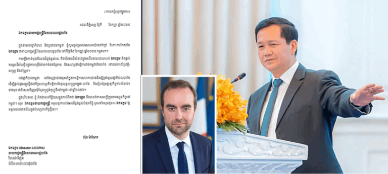 (ភ្នំពេញ)៖ សម្តេចមហាបវរធិបតី ហ៊ុន ម៉ាណែត នាយករដ្ឋមន្ត្រីនៃកម្ពុជា បានផ្ញើលិខិតអបអរសាទរជូនចំពោះឯកឧត្តម Sébastien LECORNU តែងតាំងជានាយករដ្ឋមន្ត្រី នៃសាធារណរដ្ឋបារាំង។