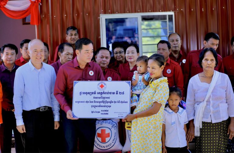 ឯកឧត្តម អ៊ុន ចាន់ដា ប្រធានគណៈកម្មាធិការសាខាកាកបាទក្រហមខេត្តកំពង់ចាម និងឯកឧត្តម ហោ ប៉េង តំណាងរដ្ឋមន្ត្រីក្រសួងអប់រំយុវជន និងកីឡា រួមជាមួយក្រុមការងារ នៅព្រឹកថ្ងៃទី៤ ខែតុលា ឆ្នាំ២០២៥ បានអញ្ជើញប្រគល់ផ្ទះមនុស្សធម៌១ខ្នង ជូនអ្នកស្រី អេន ស៊ីណា អាយុ ៣៨ឆ្នាំ ជាភរិយាកងទ័ពជួរមុខ រស់នៅភូមិរាយប៉ាយកណ្តាល ឃុំរាយប៉ាយ ស្រុកកងមាស។
