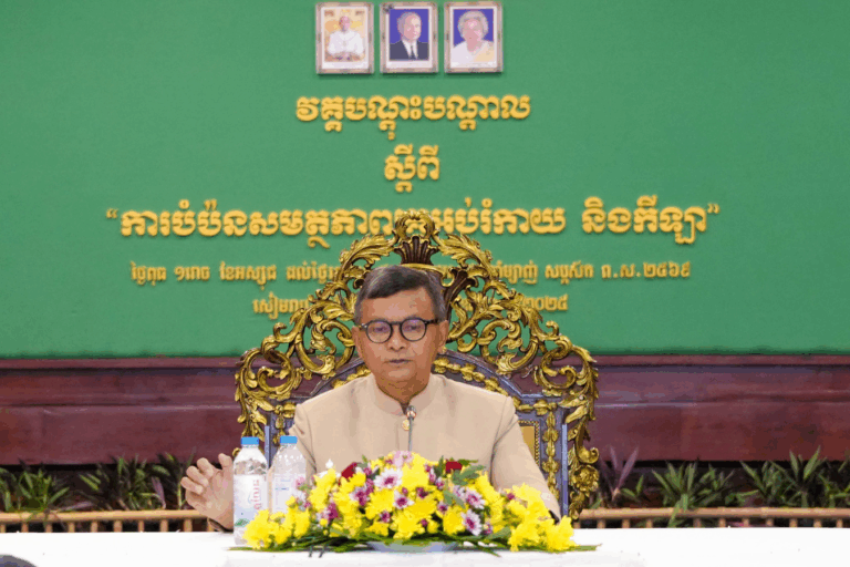 នេះជាការគូសបញ្ជាក់របស់ឯកឧត្តម នៅក្នុងវគ្គបណ្តុះបណ្តាលស្តីពីការបំប៉នសមត្ថភាពគ្រូអប់រំកាយ និងកីឡា នៅសណ្ឋាគារ អេមព្រីសអង្គរ រីសត&ស្ប៉ា ខេត្តសៀមរាប ពីថ្ងៃទី០៨-១២ ខែតុលា ឆ្នាំ២០២៥។