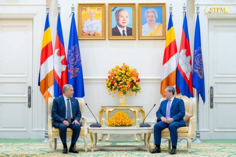 (ភ្នំពេញ)៖ នៅព្រឹកថ្ងៃអង្គារ ទី១៤ ខែតុលា ឆ្នាំ២០២៥នេះ សម្ដេចមហាបវរធិបតី ហ៊ុន ម៉ាណែត នាយករដ្ឋមន្ត្រីកម្ពុជា អនុញ្ញាតឱ្យឯកឧត្តម Datuk Seri Dr. Ahmad Zahit Hamidi ឧបនាយករដ្ឋមន្ត្រី រដ្ឋមន្ត្រីក្រសួងអភិវឌ្ឍន៍ជនបទ និងតំបន់ នៃប្រទេសម៉ាឡេស៊ី និងជាប្រធានគណបក្សរួបរួមជាតិម៉ាឡេស៊ី (UMNO) ចូលជួបសម្ដែងការគួរសម និងពិភាក្សាការងារ នៅវិមានសន្តិភាព រាជធានីភ្នំពេញ។