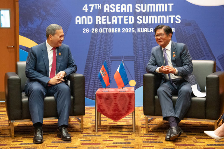 នៅថ្ងៃទី២៦ ខែតុលា ឆ្នាំ២០២៥ សម្តេចមហាបវរធិបតី ហ៊ុន ម៉ាណែត នាយករដ្ឋមន្រ្តីកម្ពុជា និង លោក Ferdinand Romualdez Marcos Jr. ប្រធានាធិបតីហ្វីលីពីន បានជួបពិភាក្សាការងារទ្វេភាគី ក្នុងឱកាសចូលរួមកិច្ចប្រជុំកំពូលអាស៊ានលើកទី៤៧ និងកិច្ចប្រជុំកំពូលពាក់ព័ន្ធ នៅទីក្រុងកូឡាឡាំពួរ ប្រទេសម៉ាឡេស៊ី នៅថ្ងៃទី២៥-២៨ ខែតុលា ឆ្នាំ២០២៥។