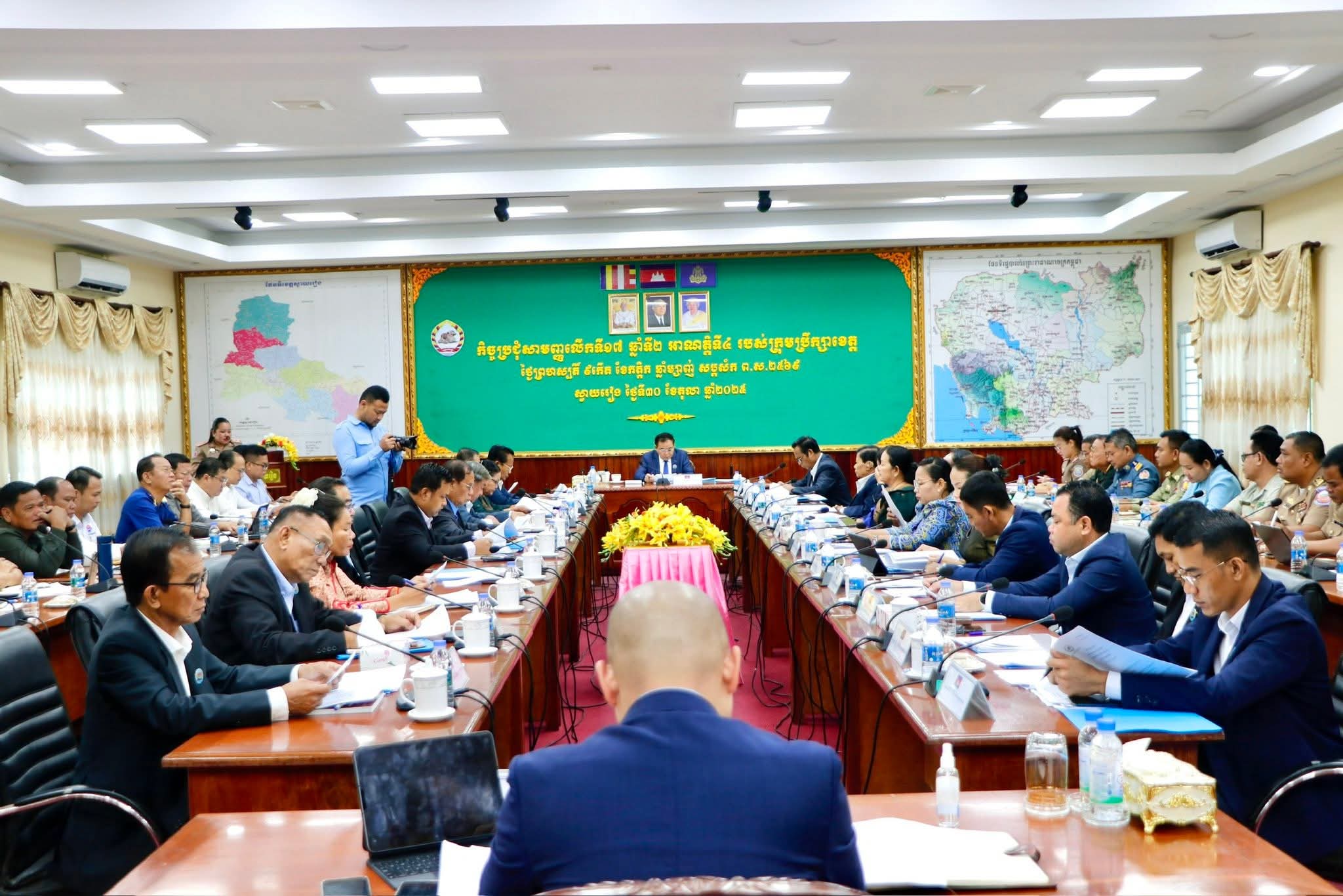 នាព្រឹកថ្ងៃព្រហស្បតិ៍៨កើត ខែកត្កិក ឆ្នាំម្សាញ់ សប្តស័ក ព.ស២៥៦៩ ត្រូវនឹងថ្ងៃទី៣០ ខែតុលា ឆ្នាំ២០២៥នេះ ឯកឧត្តម ម៉ែន វិបុល ប្រធានក្រុមប្រឹក្សាខេត្តស្វាយរៀង បានអញ្ជើញជាអធិបតីដឹកនាំកិច្ចប្រជុំសាមញ្ញលើកទី១៧ ឆ្នាំទី២ អាណត្តិទី៤ របស់ក្រុមប្រឹក្សាខេត្ត កិច្ចប្រជុំនេះក៏មានការអញ្ជើញចូលរួមពីសំណាក់ឯកឧត្តម ប៉េង ពោធិ៍សា អភិបាល នៃគណៈ អភិបាលខេត្ត ឯកឧត្តម លោកជំទាវ សមាជិកក្រុមប្រឹក្សាខេត្ត លោក លោកស្រី អភិបាលរងខេត្ត តំណាងអគ្គនាយកដ្ឋានរដ្ឋបាលនៃក្រសួងមហាផ្ទៃ លោកមេបញ្ជាការរងកងរាជអាវុធហត្ថខេត្ត លោកស្នងការរងនគរបាលខេត្ត លោកមេបញ្ជាការរងតំបន់ប្រតិបត្តិការសឹងរងស្វាយរៀង លោក លោកស្រី ប្រធានមន្ទីរ/អង្គភាពពាក់ព័ន្ធជុំវិញខេត្ត លោកអភិបាលក្រុង/ស្រុកទាំង៨ លោក លោកស្រីនាយកទីចាត់ការ/អង្គភាពចំណុះសាលាខេត្ត។