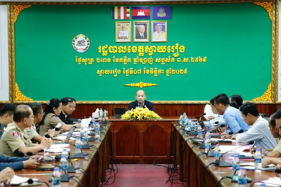នៅរសៀលថ្ងៃទី៧ ខែវិច្ឆិកា ឆ្នាំ២០២៥នេះ ឯកឧត្ដម ប៉េង ពោធិ៍សា អភិបាល នៃគណៈអភិបាលខេត្តស្វាយរៀង និងជាប្រធានគណៈបញ្ជាការឯកភាពរដ្ឋបាលខេត្តបានអញ្ជើញជាអធិបតីដឹកនាំកិច្ចប្រជុំត្រៀមសហការរៀបចំពិធីជំនួបប្រាស្រ័យព្រំដែនមិត្តភាព លើកទី២ រវាងថ្នាក់រដ្ឋមន្រ្តីក្រសួងការពារជាតិកម្ពុជា-វៀតណាមនៅខេត្តស្វាយរៀង ។