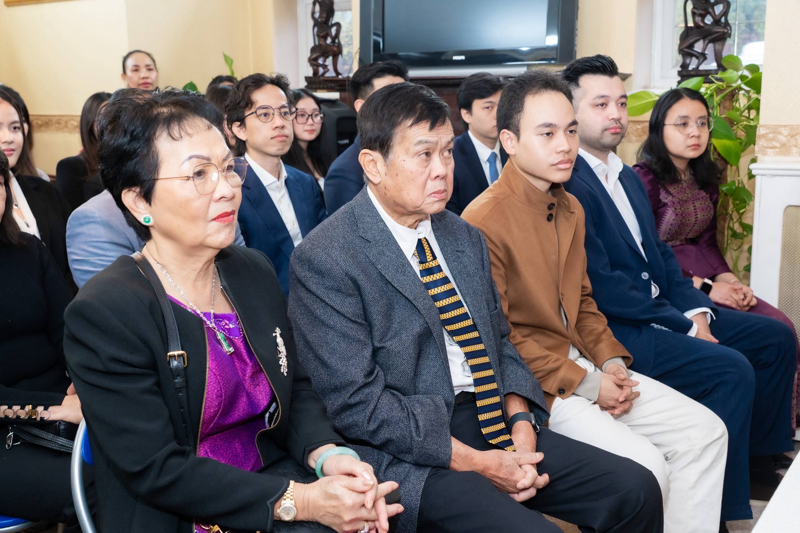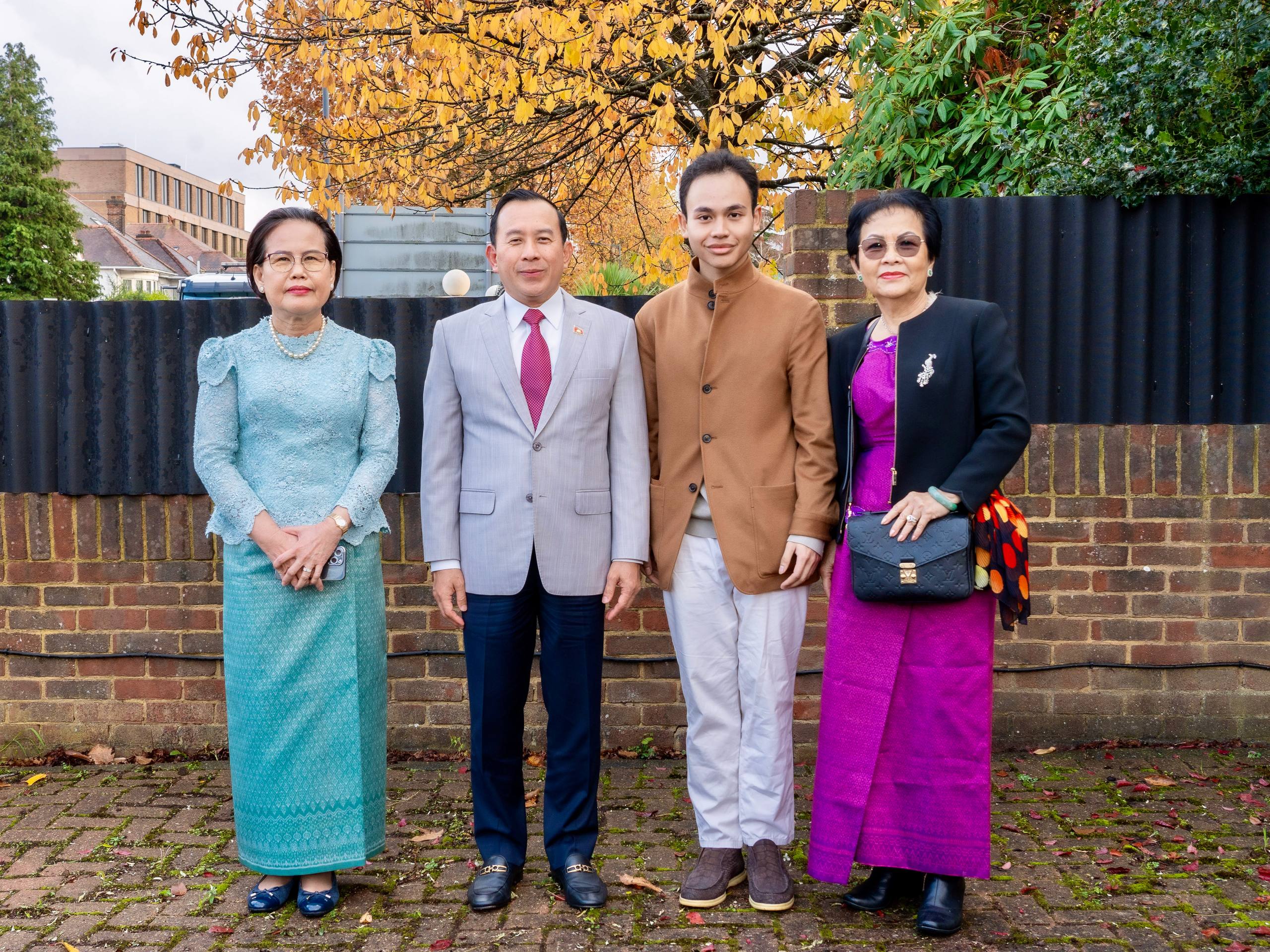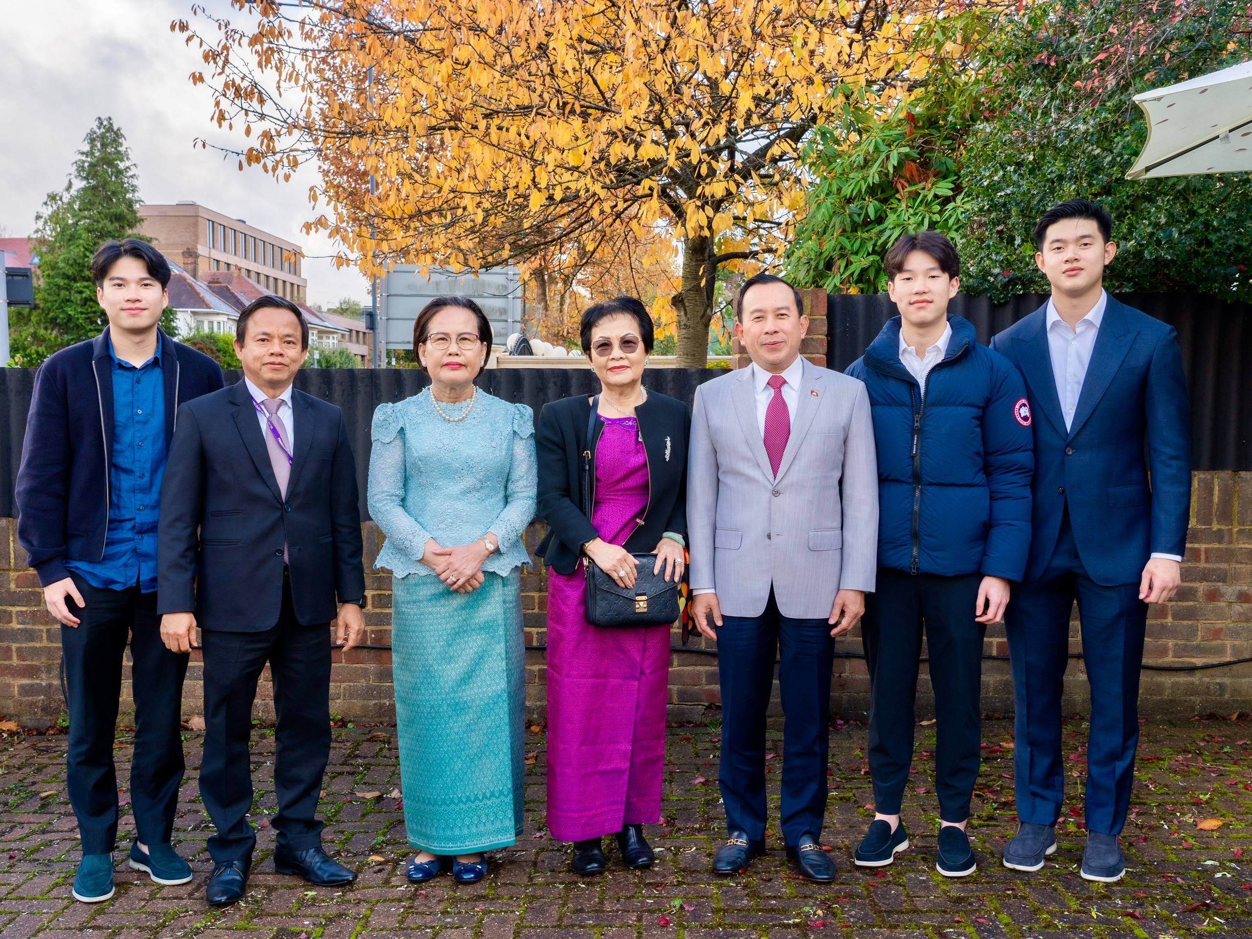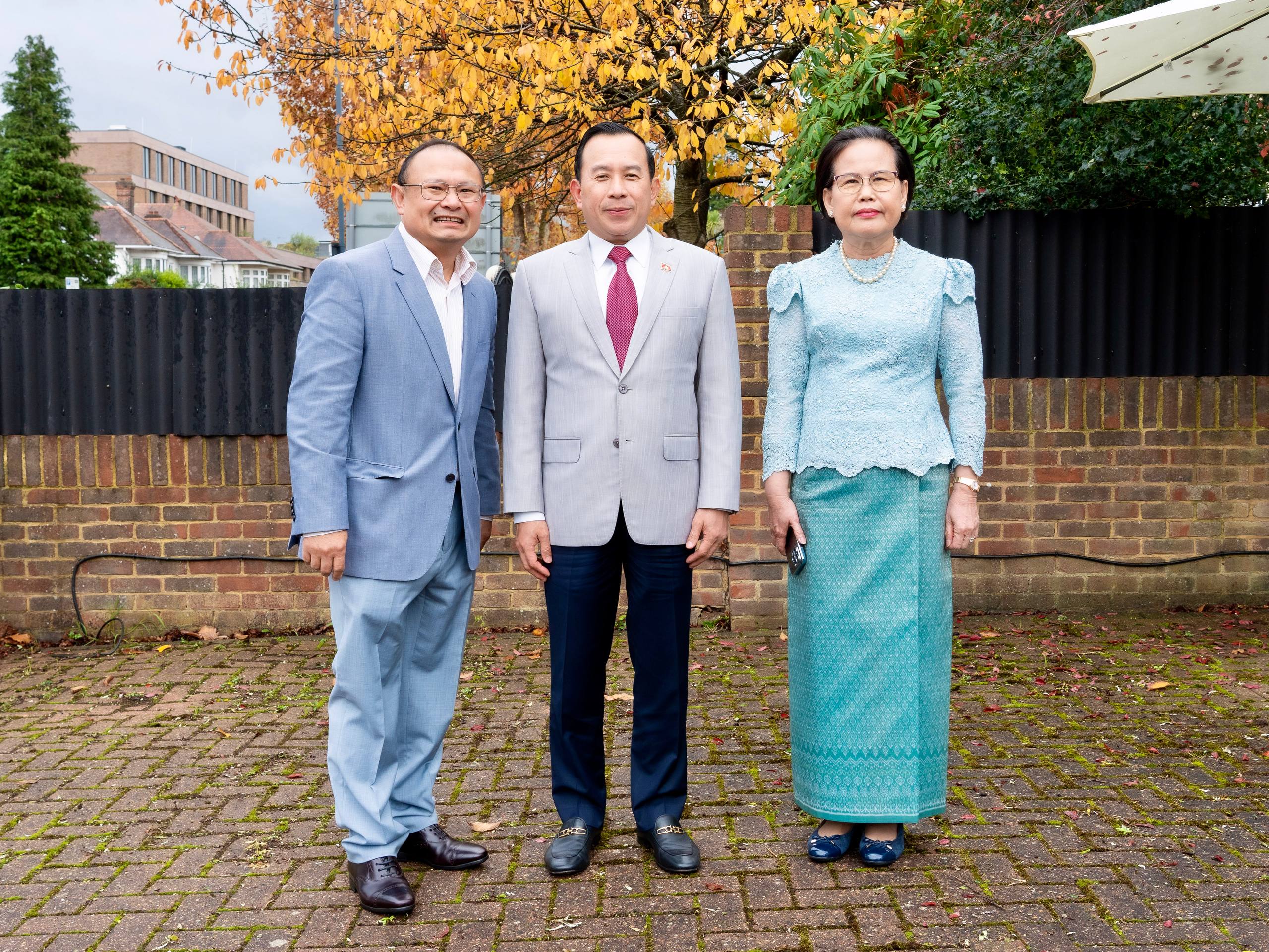 ឆ្លៀតក្នុងឱកាសនេះផងដែរ ឯកឧត្តមរដ្ឋមន្រ្តី ក៏បានពាំនាំនូវក្តីនឹករលឹក និងការសួរសុខទុក្ខពីថ្នាក់ដឹកនាំគ្រប់ជាន់ថ្នាក់ពីសំណាក់ព្រះករុណាព្រះបាទ នរោត្តម សីហមុនី សម្តេចអគ្គមហាសេនាបតី និងសម្តេចធិបតី ដល់បងប្អូនសហគមន៍ខ្មែរ សិស្ស និងនិស្សិតទាំងអស់ដែលកំពុងរស់នៅ និងធ្វើការនៅចក្រភពទាំងអស់។ ទន្ទឹមនឹងនេះដែរ ឯកឧត្តមរដ្ឋមន្រ្តី ក៏បានជម្រាបជូនពីសភាពការណ៍នៅតំបន់ព្រំដែនជាមួយប្រទេសថៃ និងយន្តការដោះស្រាយរបស់រាជរដ្ឋាភិបាល ដោយស្នើសុំបងប្អូនខ្មែរមានការជឿជាក់លើការដឹកនាំដ៏ត្រឹមត្រូវ និងប្រកបដោយគតិបណ្ឌិតរបស់សម្តេចធិបតី មានតែការឯកភាព និងសាមគ្គីភាពជាធ្លុងមួយរបស់ប្រជាជនកម្ពុជាជាមួយរាជរដ្ឋាភិបាលដែលជាកំលាំងដ៏ខ្លាំងក្លា ជាមួយការគាំទ្រពីប្រទេសជាមិត្តដែលស្រលាញ់សន្តិភាព ពិតជាធ្វើឱ្យប្រទេសថៃត្រូវតែបញ្ចប់សកម្មភាពអរិភាពរបស់ខ្លួនជាមួយកម្ពុជានាពេលនេះ។