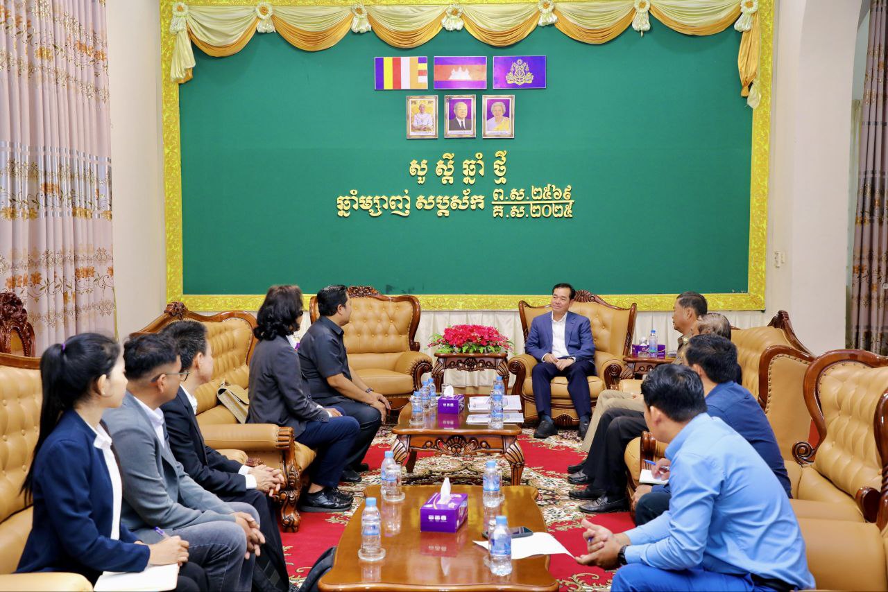 (កំពង់ចាម): នៅព្រឹកថ្ងៃទី១១ ខែវិច្ឆិកា ឆ្នាំ២០២៥ នេះ ឯកឧត្តម អ៊ុន ចាន់ដា អភិបាលនៃគណៈអភិបាលខេត្តកំពង់ចាម បានអនុញ្ញាតឱ្យប្រតិភូ ក្រុមការងារក្រសួងទេសចរណ៍ ដឹកនាំដោយលោក ម៉ែន ភារម្យ អគ្គនាយករងនៃនាយកដ្ឋានផែនការអភិវឌ្ឍន៍ទេសចរណ៍ ចូលជួបសម្ដែងការគួរសម និងពិភាក្សាការងារ ដេីម្បីរៀបចំព្រឹត្តិការណ៍ទេសចរណ៍ និងតំបន់ទេសចរណ៍ប្រវត្តិសាស្ត្រមួយចំនួនក្នុងខេត្តកំពង់ចាម។ បើតាមលោក ម៉ែន ភារម្យ អគ្គនាយករងនៃនាយកដ្ឋានផែនការអភិវឌ្ឍន៍ទេសចរណ៍ បានបញ្ជាក់ឱ្យដឹងថា ក្រុមការងារក្រសួងទេសចរណ៍ ដោយបានកិច្ចសហការជាមួយក្រុមហ៊ុន វីភី ស្មាត (VP.Start Technology co.,LTD) ស្នើសុំការឯកភាព និងគាំទ្រពី ឯកឧត្តម អភិបាលខេត្ត ដើម្បីដឹកនាំក្រុមការងារចុះរៀបចំឯកសារវិធានគន្លឹះអភិវឌ្ឍន៍នៅរមណីយដ្ឋានប្រាសាទនរគបាជ័យ និងតំបន់កោះប៉ែន រួមនិងការចុះសិក្សាស្រាវជ្រាវ ប្រមូលព័ត៌មាន ការផ្តិតយករូបភាព ពីទីតាំងរមណីយដ្ឋានប្រាសាទនគរបាជ័យ និងតំបន់ទេសចរណ៍ធម្មជាតិ កោះប៉ែន ផងដែរ។