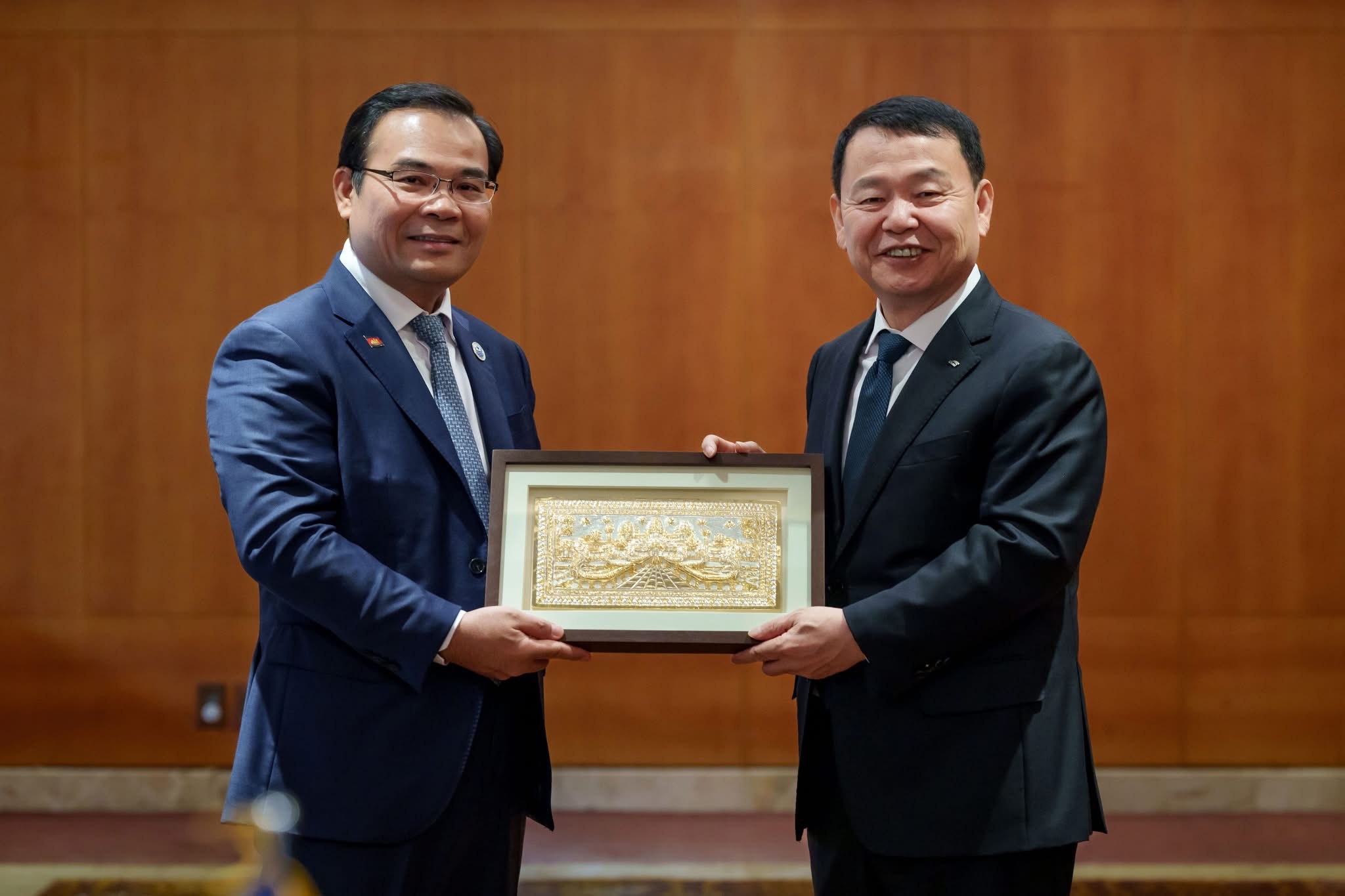 ក្នុងឱកាសអញ្ជើញដល់ប្រទេសកូរ៉េ នៅរសៀលថ្ងៃដដែល ឯកឧត្តម ថោ ជេដ្ឋា ព្រមទាំងគណៈប្រតិភូជាន់ខ្ពស់ក្រសួងធនធានទឹក និងឧតុនិយម បានជួបពិភាក្សាទ្វេភាគីជាមួយឯកឧត្តមបណ្ឌិត Yun Seog DAE នាយកប្រតិបត្តិនៃសាជីវកម្មធនធានទឹកកូរ៉េ ហើយដែលកិច្ចពិភាក្សាផ្តោតសំខាន់លើកិច្ចសហប្រតិបត្តិការជាយុទ្ធសាស្រ្តក្នុងការគ្រប់គ្រងធនធានទឹកប្រកបដោយនិរន្តរភាព ឆ្លើយតបទៅនឹងការប្រែប្រួលអាកាសធាតុសកល។