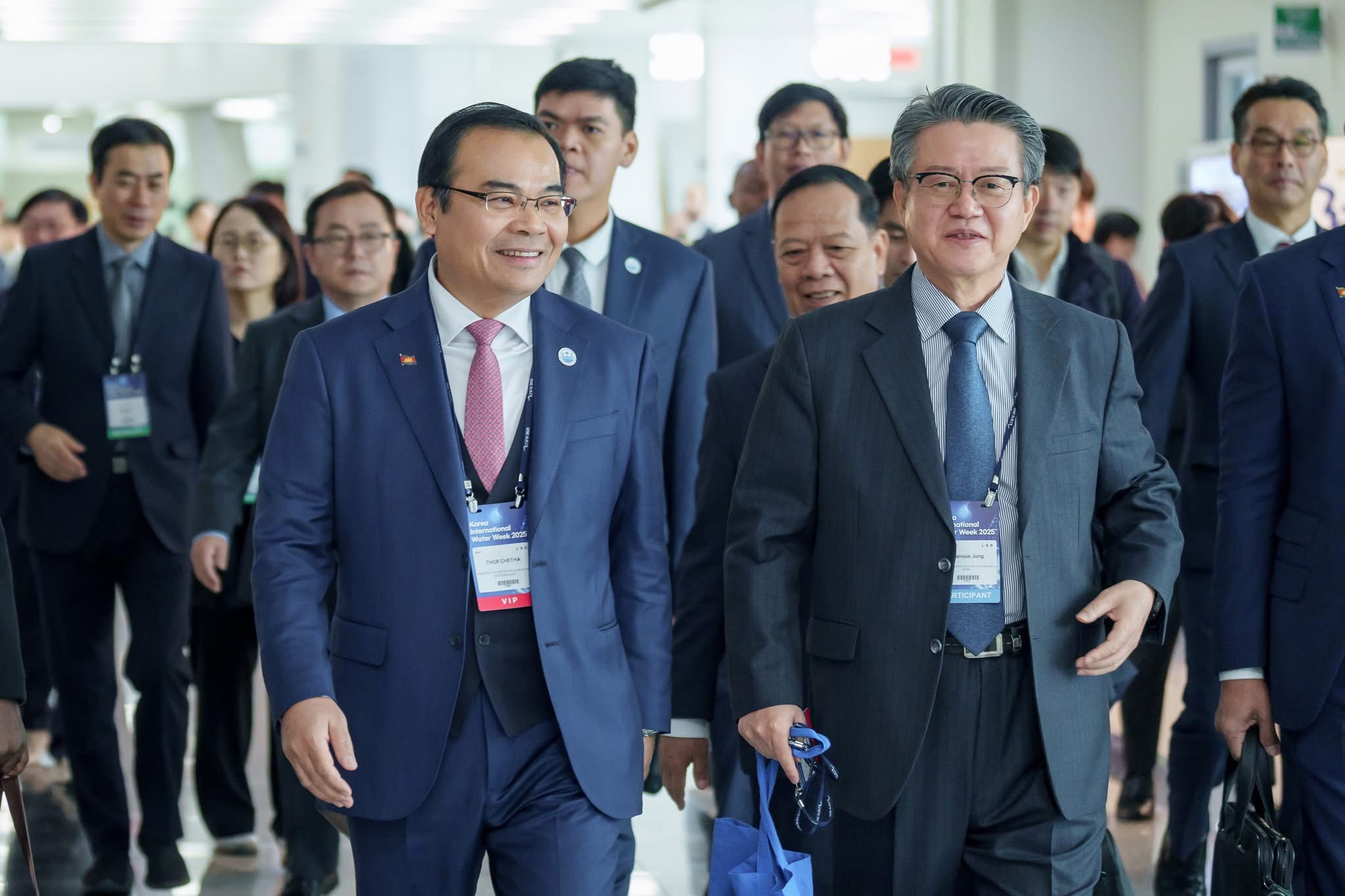 សូមជម្រាបថា កម្មវិធីសប្តាហ៍ទឹកអន្តរជាតិកូរ៉េឆ្នាំ២០២៥ ដែលមានការចូលរួមពីបណ្តារដ្ឋាភិបាល វិស័យឯកជន សង្គមស៊ីវិល អ្នកស្រាវជ្រាវ អ្នកជំនាញពាក់ព័ន្ធផ្នែកទឹកមកពីតំបន់នានានៅលើពិភពលោក បានប្រព្រឹត្តទៅក្រោមប្រធានបទ«ការកសាងអនាគតទឹកឆ្លាតវៃ ដោយការចែករំលែកបទពិសោធន៍ និងបច្ចេកវិទ្យា គំនិតច្នៃប្រឌិតឆ្លាតវៃ៖ ស្ពានឆ្ពោះទៅអនាគតទឹករួម»។