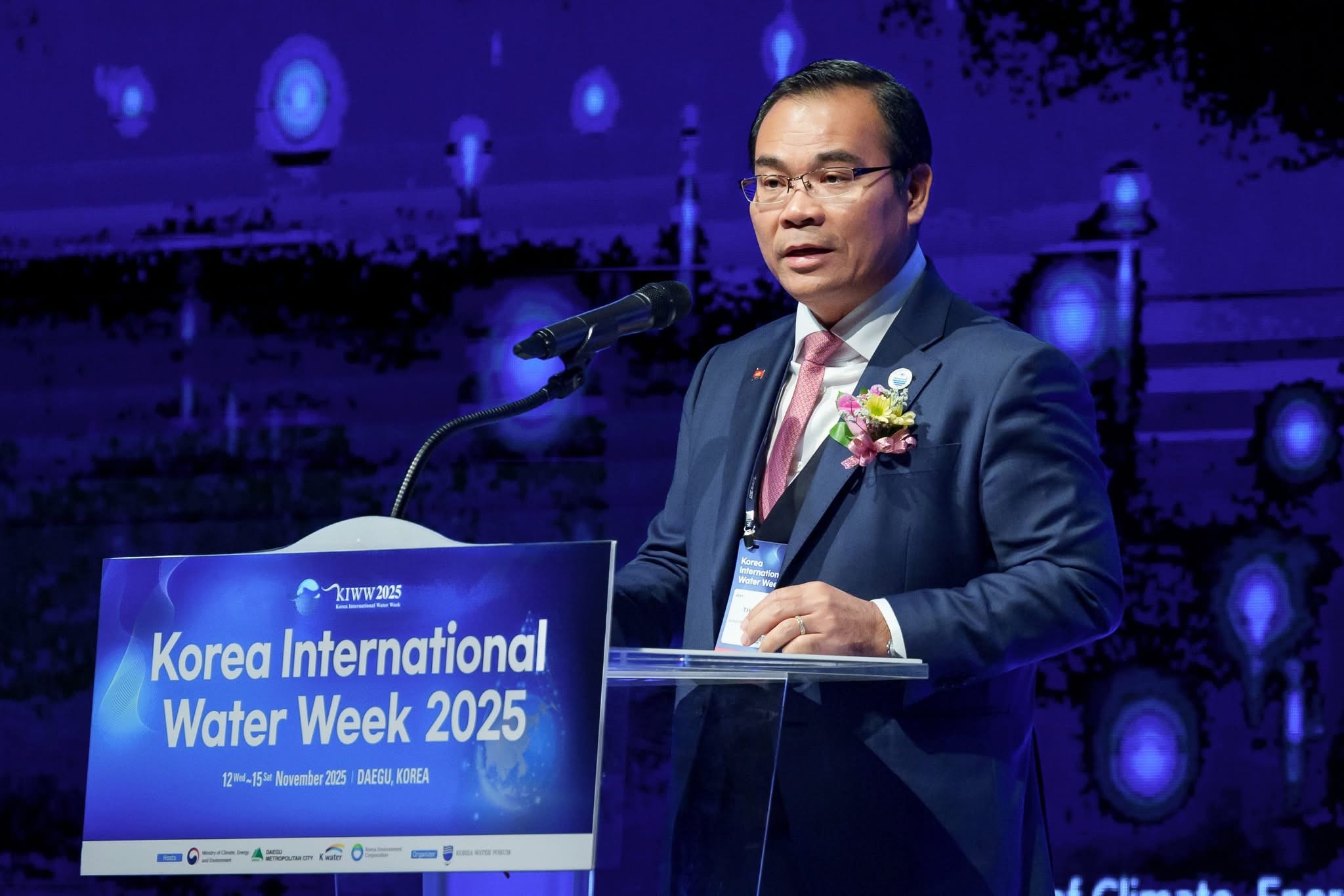 នាព្រឹកថ្ងៃពុធ ៧រោច ខែកត្តិក ឆ្នាំម្សាញ់ សប្តស័ក ពុទ្ធសករាជ ២៥៦៩ ត្រូវនឹងថ្ងៃទី១២ ខែវិច្ឆិកា ឆ្នាំ២០២៥នេះ ឯកឧត្តម ថោ ជេដ្ឋា រដ្ឋមន្ត្រីក្រសួងធនធានទឹក និងឧតុនិយម បានអញ្ជើញថ្លែងសុន្ទរកថាអបអរសាទរក្នុងពិធីបើកសប្តាហ៍ទឹកអន្តរជាតិកូរ៉េ(KIWW) ឆ្នាំ២០២៥ ក្នុងទីក្រុង Daegu សាធារណរដ្ឋកូរ៉ ក្រោមអធិបតីភាពឯកឧត្តម Kum Hanseung អនុរដ្ឋមន្ត្រីក្រសួងអាកាសធាតុ ថាមពល និងបរិស្ថានកូរ៉េ។