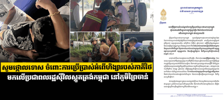 (ភ្នំពេញ)៖ អ្នកនាំពាក្យព្រឹទ្ធសភាកម្ពុជា បានចេញសេចក្តីថ្លែងការណ៍ថ្កោលទោសអំពើឈ្លានពានគួរឱ្យស្អប់ខ្ពើម និងការរំលោភបំពានលើ អធិបតេយ្យភាពកម្ពុជា ដោយប្រទេសថៃ កាលពីថ្ងៃទី១២ ខែវិច្ឆិកា ឆ្នាំ២០២៥ ដែលបណ្តាលឱ្យពលរដ្ឋស្លូតត្រង់កម្ពុជាម្នាក់ស្លាប់ និង៣នាក់ផ្សេងទៀតរងរបួស។