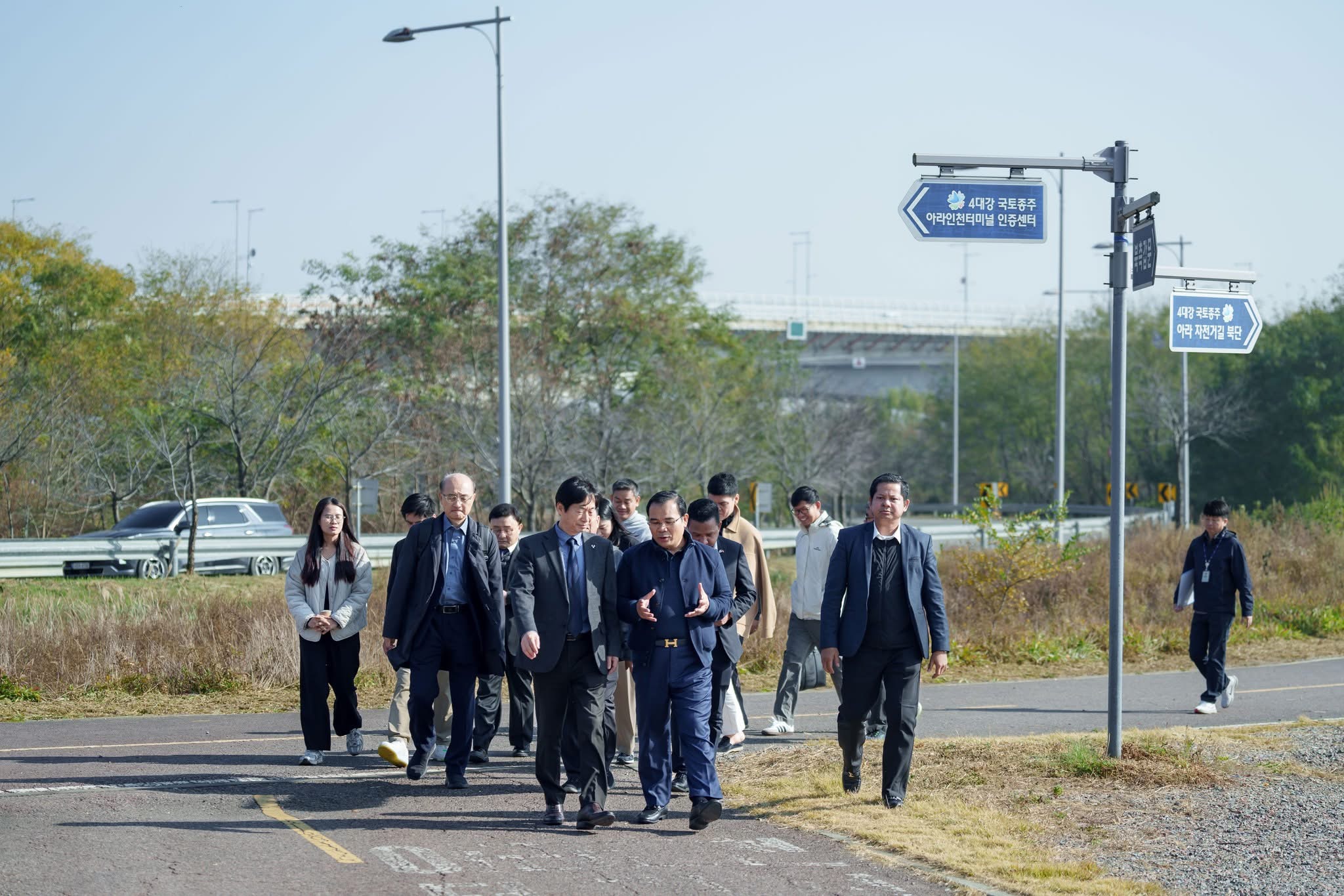 ក្នុងឱកាសបំពេញទស្សនកិច្ចនៅសាធារណរដ្ឋកូរ៉េ នាព្រឹកថ្ងៃព្រហស្បតិ៍ ៨រោច ខែកត្តិក ឆ្នាំម្សាញ់ សប្តស័ក ពុទ្ធសករាជ ២៥៦៩ ត្រូវនឹងថ្ងៃទី១៣ ខែវិច្ឆិកា ឆ្នាំ២០២៥នេះ ឯកឧត្តម ថោ ជេដ្ឋា រដ្ឋមន្ត្រីក្រសួងធនធានទឹក និងឧតុនិយម បានអញ្ជើញដឹកនាំគណៈប្រតិភូជាន់ខ្ពស់ក្រសួងចុះសិក្សាស្វែងយល់ទីតាំងផ្លូវទឹក Gyeongin Ara ដែលតភ្ជាប់ពីទន្លេហាន ក្នុងទីក្រុងSeoul ទៅកាន់សមុទ្រខាងលិច(សមុទ្រលឿង) ក្នុងទីក្រុង Incheon នៃសាធារណរដ្ឋកូរ៉េ។