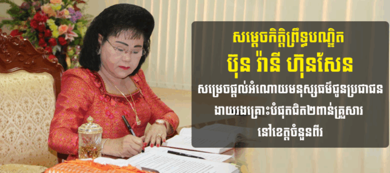 សម្តេចកិត្តិព្រឹទ្ធបណ្ឌិត ប៊ុន រ៉ានី ហ៊ុនសែន សម្រេចផ្តល់អំណោយមនុស្សធម៌ជូនប្រជាជនងាយរងគ្រោះបំផុតជិត២ពាន់គ្រួសារ នៅខេត្តចំនួនពីរ