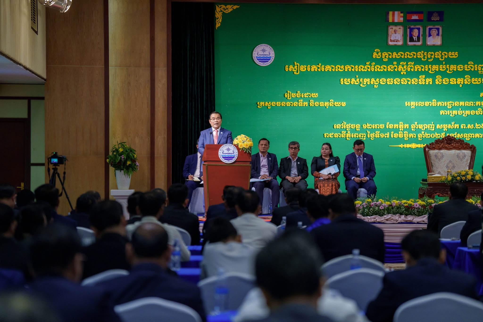 នាព្រឹកថ្ងៃចន្ទ ១២រោច ខែកត្តិក ឆ្នាំម្សាញ់ សប្តស័ក ពុទ្ធសករាជ ២៥៦៩ ត្រូវនឹងថ្ងៃទី១៧ ខែវិច្ឆិកា ឆ្នាំ២០២៥នេះ ឯកឧត្តម ថោ ជេដ្ឋា រដ្ឋមន្ត្រីក្រសួងធនធានទឹក និងឧតុនិយម ប្រធានគណៈកម្មាធិការជាតិទន្លេមេគង្គកម្ពុជា និងជាប្រធានអាជ្ញាធរទន្លេសាប បានអញ្ជើញជាអធិបតីភាពដ៏ខ្ពង់ខ្ពស់បើកសិក្ខាសាលាផ្សព្វផ្សាយស្ដីពីការដាក់ឱ្យប្រើប្រាស់គោលការណ៍ណែនាំស្ដីពីការគ្រប់គ្រងហិរញ្ញវត្ថុសាធារណៈរបស់ក្រសួងធនធានទឹក និងឧតុនិយម នៅសាលប្រជុំនៃសណ្ឋាគារភ្នំពេញ។