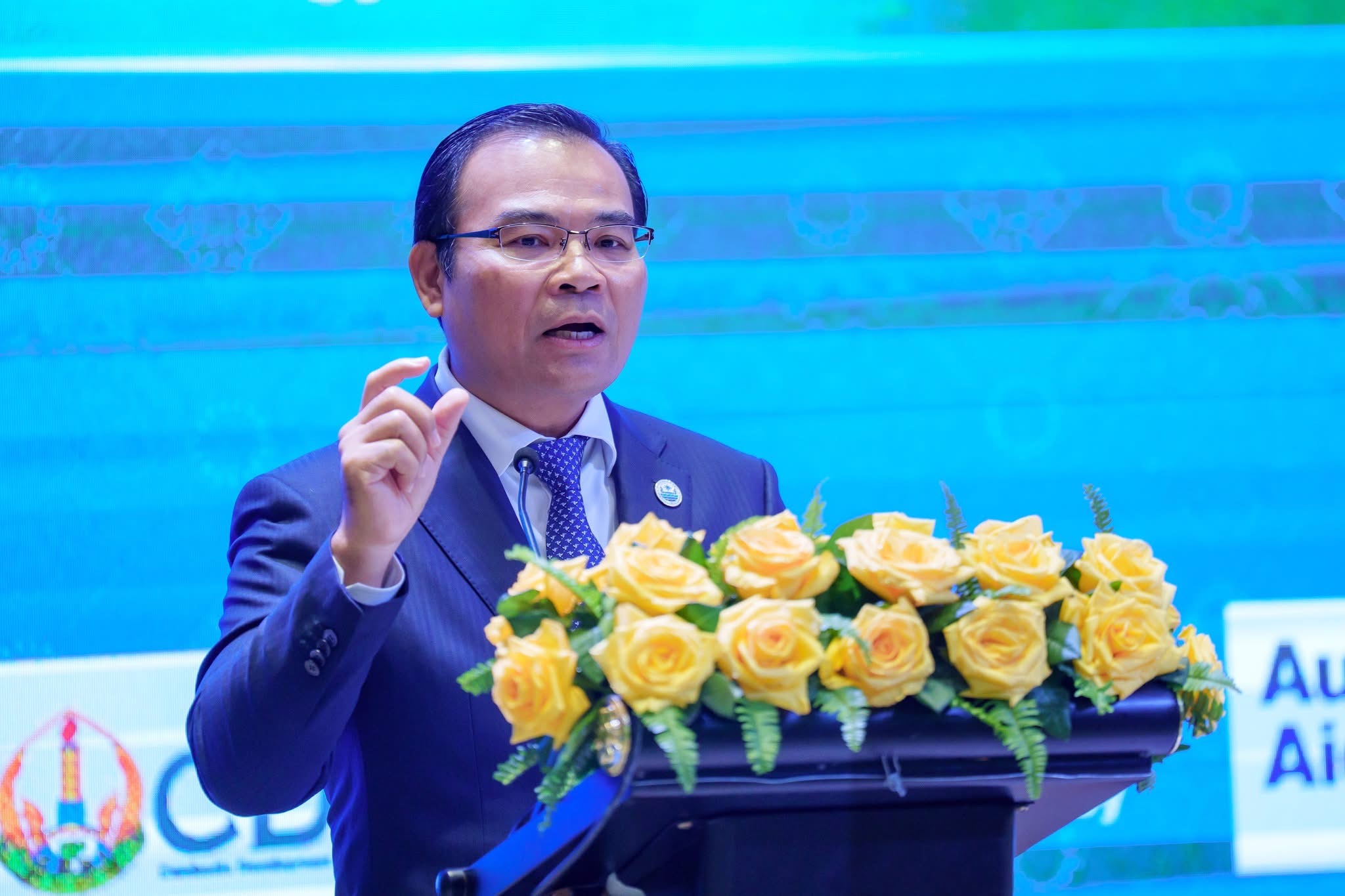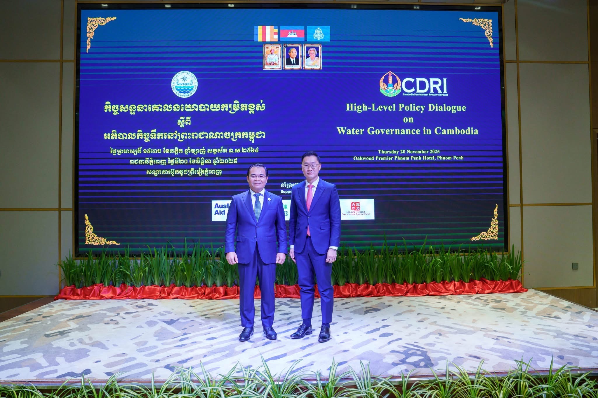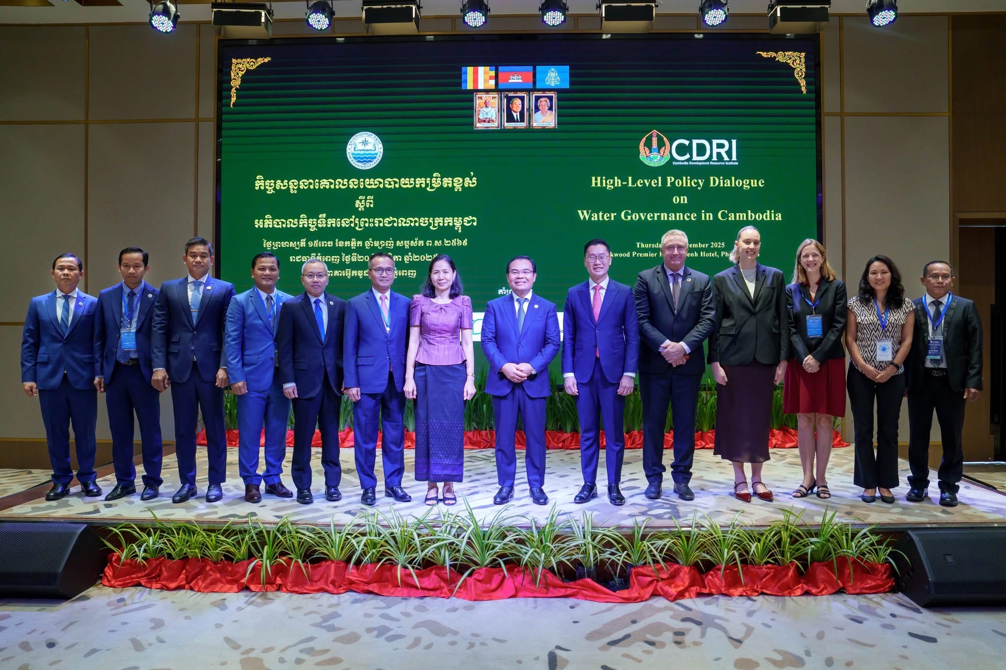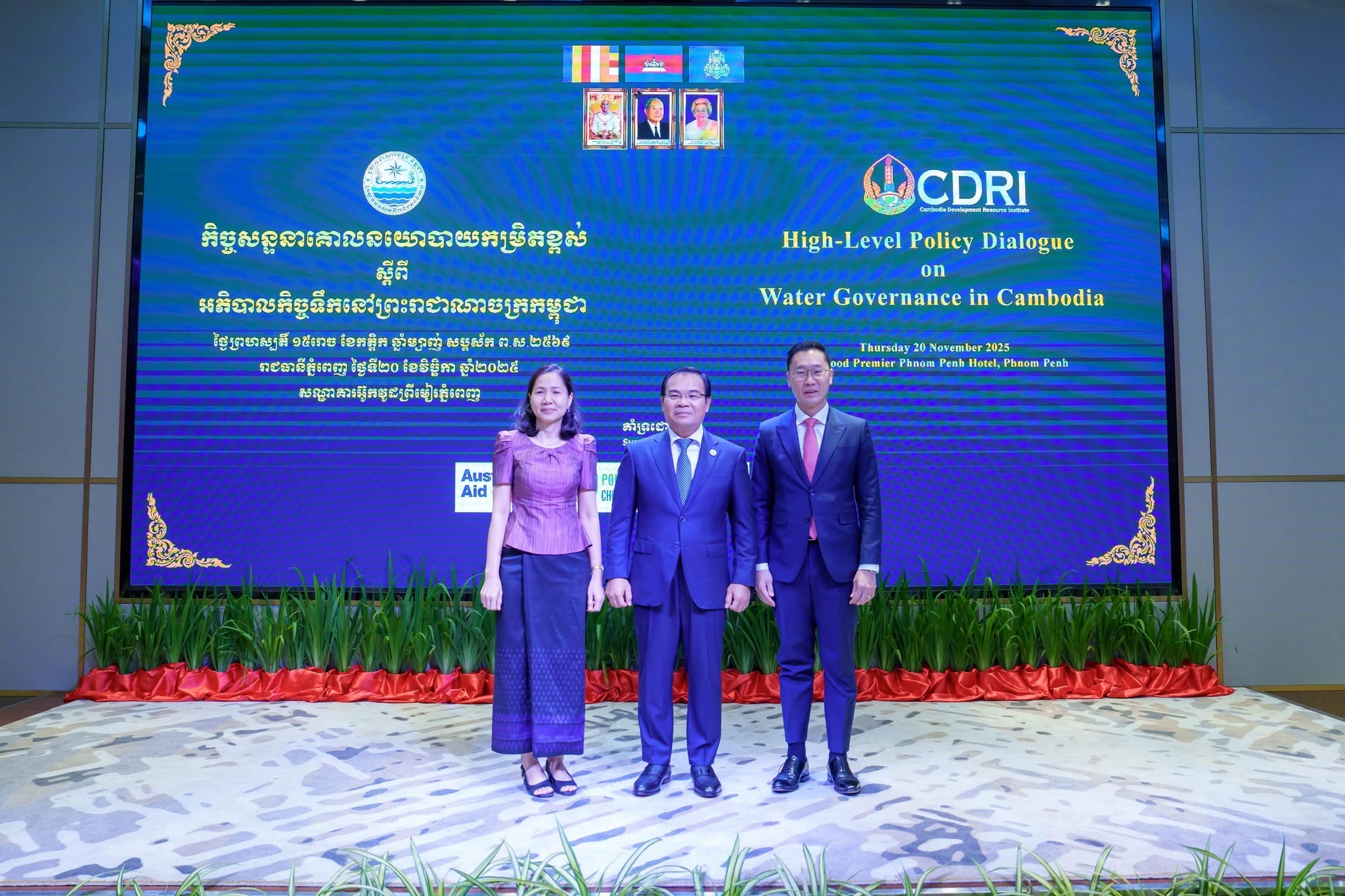 នាព្រឹកថ្ងៃព្រហស្បតិ៍ ១៥រោច ខែកត្តិក ឆ្នាំម្សាញ់ សប្តស័ក ពុទ្ធសករាជ ២៥៦៩ ត្រូវនឹងថ្ងៃទី២០ ខែវិច្ឆិកា ឆ្នាំ២០២៥ នេះ ឯកឧត្តម ថោ ជេដ្ឋា រដ្ឋមន្ត្រីក្រសួងធនធានទឹក និងឧតុនិយម ប្រធានគណៈកម្មាធិការជាតិទន្លេមេគង្គកម្ពុជា និងជាប្រធានអាជ្ញាធរទន្លេសាប បានអញ្ជើញជាអធិបតីភាពដ៏ខ្ពង់ខ្ពស់បើកកិច្ចសន្ទនាគោលនយោបាយកម្រិតខ្ពស់ស្តីពីអភិបាលកិច្ចទឹកនៅព្រះរាជាណាចក្រកម្ពុជា ដែលរៀបចំដោយវិទ្យាស្ថានបណ្តុះបណ្តាល និងស្រាវជ្រាវដើម្បីអភិវឌ្ឍន៍កម្ពុជា(វបសអ-CDRI) ក្រោមការគាំទ្រថវិកាពីក្រសួងការបរទេសនិងពាណិជ្ជកម្មអូស្ត្រាលី នៅសាលប្រជុំនៃសណ្ឋាគារអ៊ូកវូដព្រីមៀរភ្នំពេញ។