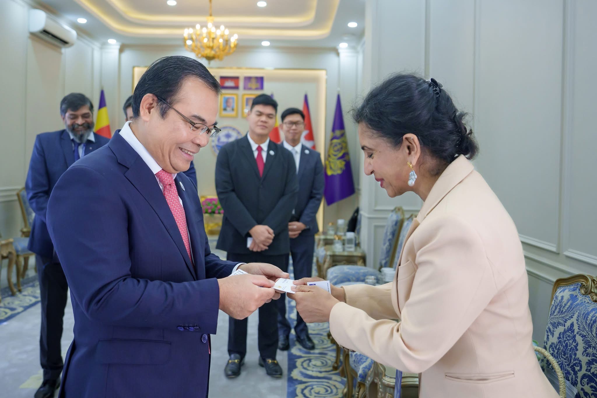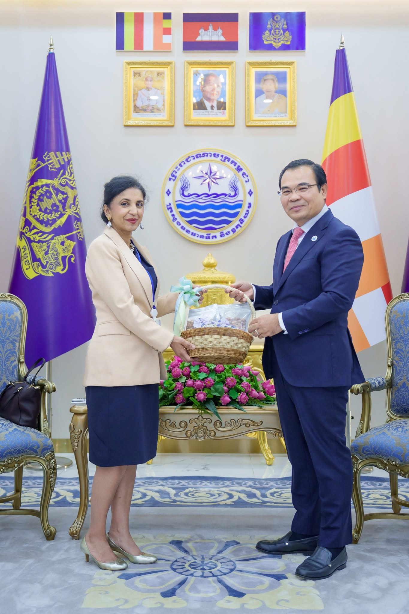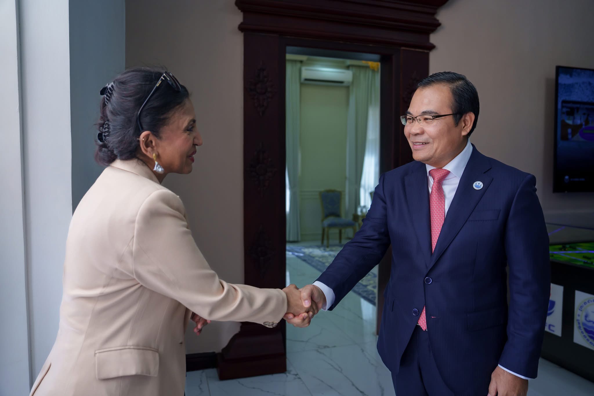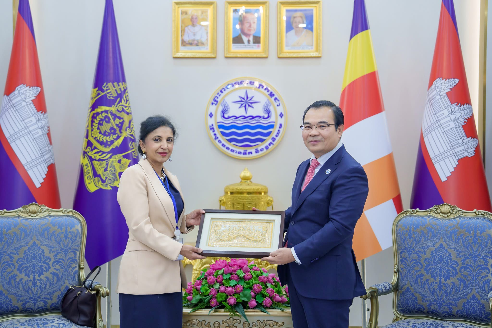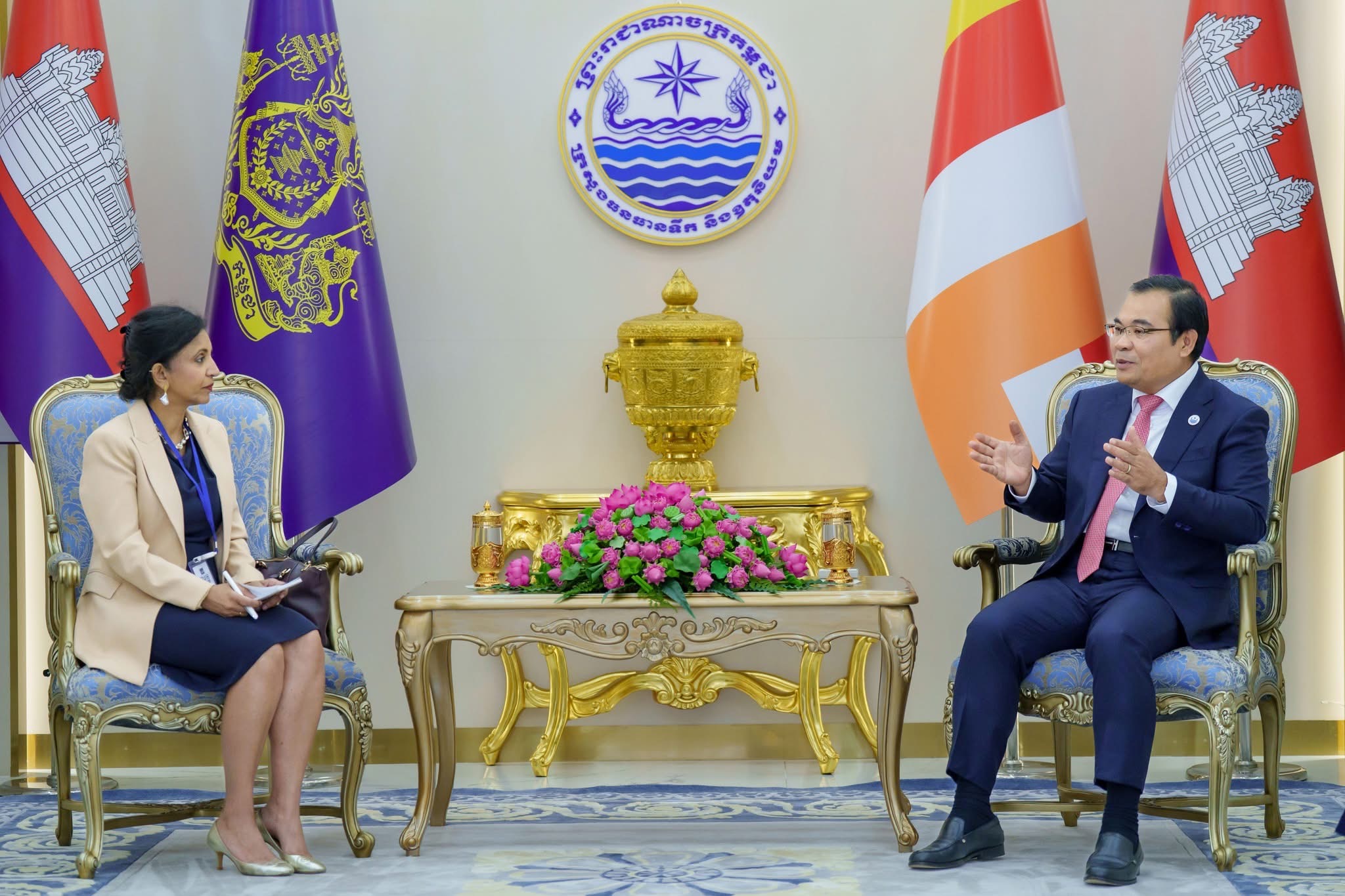 នាព្រឹកថ្ងៃអង្គារ ៥កើត ខែមិគសិរ ឆ្នាំម្សាញ់ សប្តស័ក ពុទ្ធសករាជ ២៥៦៩ ត្រូវនឹងថ្ងៃទី២៥ ខែវិច្ឆិកា ឆ្នាំ២០២៥នេះ ឯកឧត្តម ថោ ជេដ្ឋា រដ្ឋមន្ត្រីក្រសួងធនធានទឹក និងឧតុនិយម បានអនុញ្ញាតឱ្យលោកស្រី Yasmin Siddiqi នាយិកាប្រតិបត្តិធនាគារអភិវឌ្ឍន៍អាស៊ីប្រចាំប្រទេសកម្ពុជា ព្រមទាំងសហការី ដើម្បីចូលជួបសម្ដែងការគួរសម និងពិភាក្សាការងារ នៅទីស្ដីការក្រសួងធនធានទឹក និងឧតុនិយម។