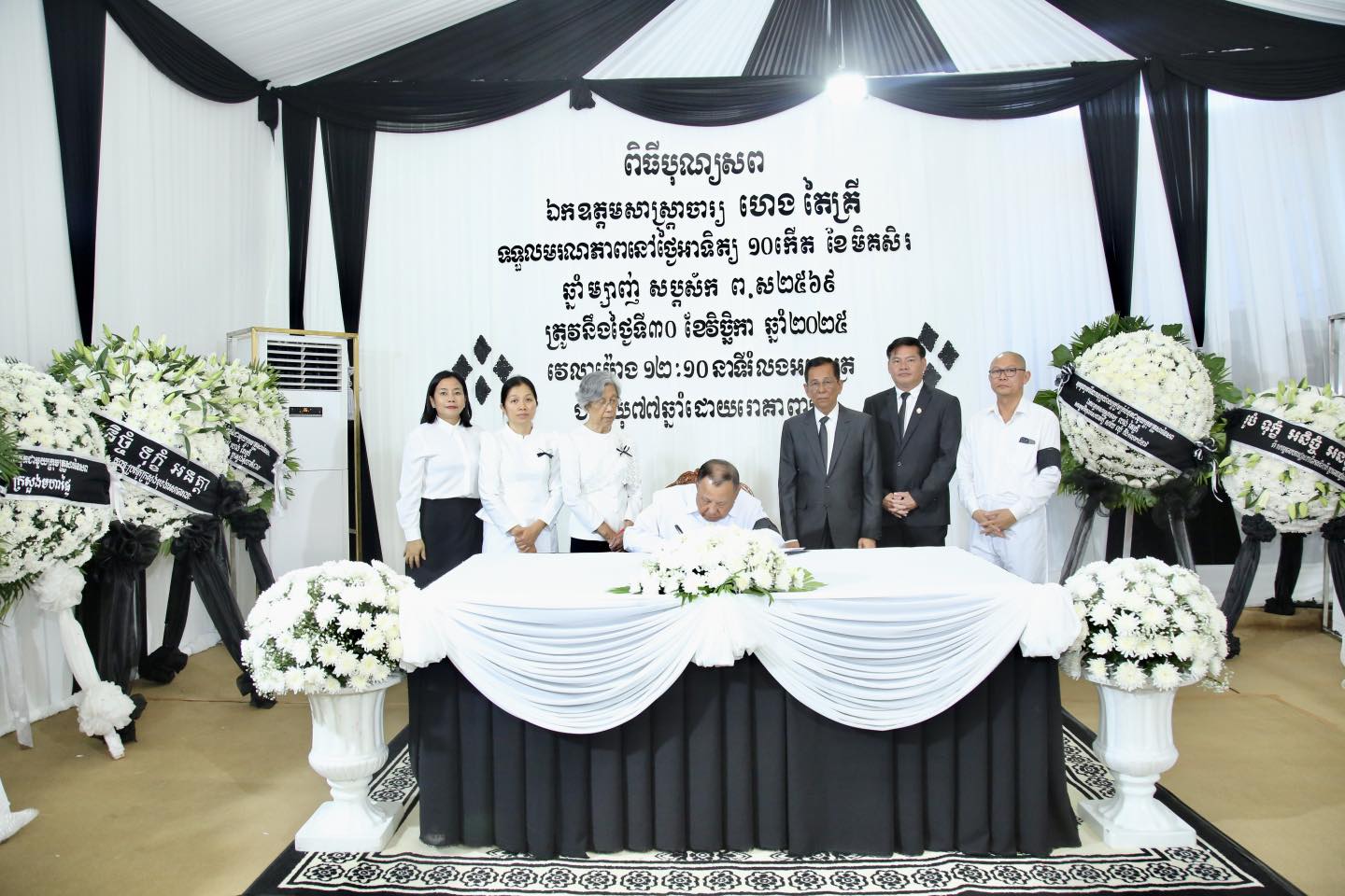 រសៀលថ្ងៃចន្ទ ១១កើត ខែមិគសិរ ឆ្នាំម្សាញ់សប្តស័ក ពុទ្ធសករាជ ២៥៦៩ ត្រូវនឹងថ្ងៃទី១ ខែធ្នូ ឆ្នាំ២០២៥ សម្តេចវិបុលសេនាភក្តី សាយ ឈុំ ឧត្តមប្រឹក្សាផ្ទាល់ព្រះមហាក្សត្រ នៃព្រះរាជាណាចក្រកម្ពុជា និងលោកជំទាវ បានអញ្ជើញចូលរួមរំលែកទុក្ខ ជាមួយក្រុមគ្រួសារនៃសព ឯកឧត្តមបណ្ឌិត ហេង តៃគ្រី រដ្ឋលេខាធិការក្រសួងសុខាភិបាល ដែលបានទទួលមរណភាព កាលពីថ្ងៃអាទិត្យ ១០កើត ខែមិគសិរ ឆ្នាំម្សាញ់ សប្តស័ក ព.ស២៥៦៩ ត្រូវនឹងថ្ងៃទី៣០ ខែវិច្ឆិកា ឆ្នាំ២០២៥ វេលាម៉ោង ១២៖១០នាទីរំលងអាធ្រាត្រ ក្នុងជន្មាយុ ៧៧ឆ្នាំ ដោយជរាពាធ ។