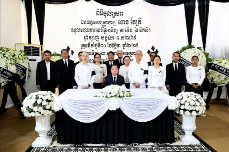 ឯកឧត្តម នេត្រ ភក្ត្រា រដ្ឋមន្ត្រីក្រសួងព័ត៌មាន ដឹកនាំគណៈប្រតិភូក្រសួង អញ្ជើញដាក់កម្រងផ្កាគោរពវិញ្ញាណក្ខន្ធសពឯកឧត្តមសាស្រ្តចារ្យ ហេង តៃគ្រី រដ្ឋលេខាធិការក្រសួងសុខាភិបាល និងជាអតីតប្រធានមន្ទីរពេទ្យកាល់ម៉ែត ដែលបានទទួលមរណភាពនៅថ្ងៃទី៣០ ខែវិច្ឆិកា ឆ្នាំ២០២៥ ក្នុងជន្មាយុ ៧៧ឆ្នាំ ដោយរោគាពាធ ខណៈពិធីគោរពវិញ្ញាណក្ខន្ធ នាព្រឹកថ្ងៃទី០២ ខែធ្នូ ឆ្នាំ២០២៥ នៅផ្ទះលេខ៣១ ផ្លូវលេខ៧៥ សង្កាត់ស្រះចក ខណ្ឌដូនពេញ រាជធានីភ្នំពេញរាជធានីភ្នំពេញ។