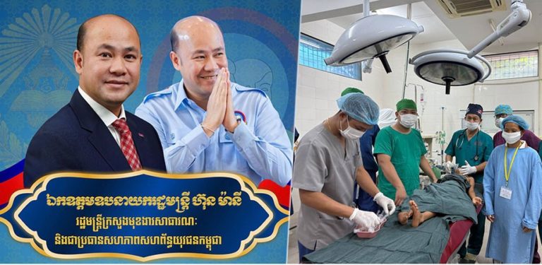(ភ្នំពេញ)៖ ឯកឧត្តមឧបនាយករដ្ឋមន្ដ្រី ហ៊ុន ម៉ានី រដ្ឋមន្ដ្រីក្រសួងមុខងារសាធារណៈ និងជាប្រធានសហភាពសហព័ន្ធយុវជនកម្ពុជា តាមរយៈសម្ព័ន្ធគ្រូពេទ្យសហភាពសហព័ន្ធយុវជនកម្ពុជា និងមានការយកចិត្តទុកដាក់ពីលោកបណ្ឌិត ហេង សុខគង់ ប្រធានសម្ព័ន្ធគ្រូពេទ្យ បានសម្របសម្រួលផ្តល់ជូននូវការវះកាត់ ជូនកុមារីមកពីគ្រួសារក្រីក្រម្នាក់ ដែលមានបញ្ហាក្រញង់ជើងដោយសារពស់ចឹកកាលពី៣ឆ្នាំមុន នៅខេត្តក្រចេះ។