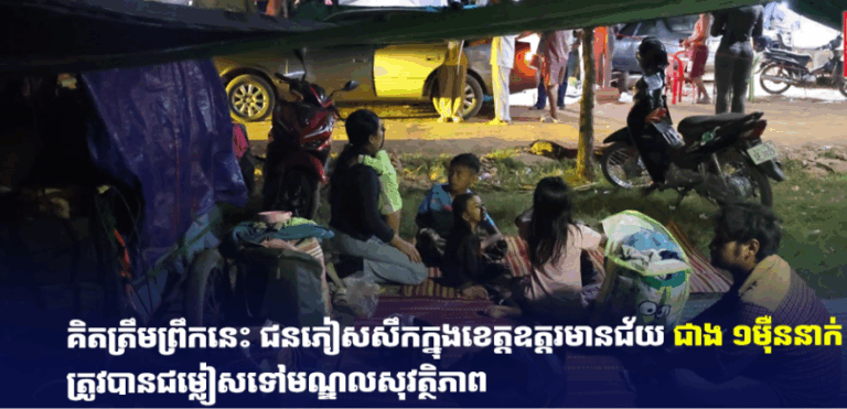 (ភ្នំពេញ)៖ រដ្ឋបាលខេត្តឧត្តរមានជ័យ បានបញ្ជាក់ឱ្យដឹងថា គិតត្រឹមម៉ោង ៨:០០ព្រឹក ថ្ងៃទី០៩ ខែធ្នូ ឆ្នាំ២០២៥នេះ មានជនភៀសសឹក នៅខេត្តឧត្តរមានជ័យ ចំនួន ៣,៥០៣គ្រួសារ សរុបប្រជាពលរដ្ឋ ១១ ១៣៨នាក់ បានគេចចេញពីតំបន់ព្រំដែន មកមណ្ឌលសុវត្តិភាព បន្ទាប់ពីក្រុមទាហានថៃ បានបើកការវាយប្រហារមកលើដែនអធិបតេយ្យភាពរបស់កម្ពុជា៕