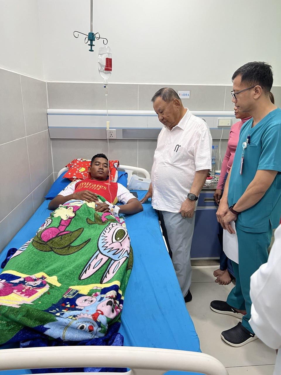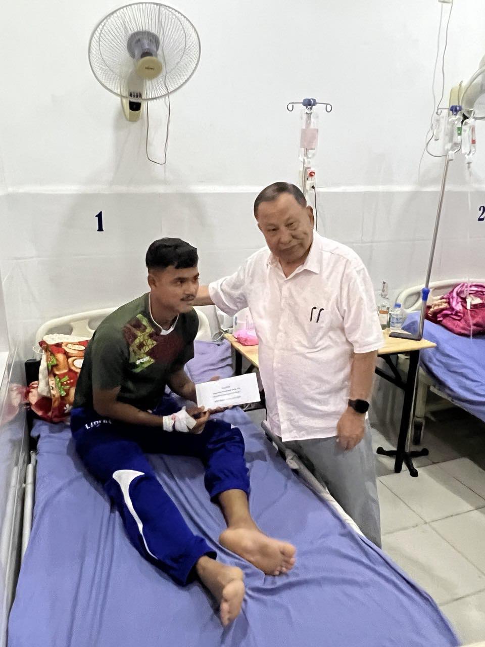 កាលពីល្ងាចថ្ងៃទី១០ ខែធ្នូ ឆ្នាំ២០២៥ សម្តេច វិបុលសេនាភក្តី សាយ ឈុំ អនុប្រធានគណបក្ស ប្រជាជនកម្ពុជា និងជាប្រធានក្រុមការងារគណបក្សចុះមូលដ្ឋានរាជធានីភ្នំពេញ បានអញ្ជើញចុះសាកសួរសុខទុក្ខ វីរយុទ្ធជនសមរភូមិមុខ ដែលទទួលរងរបួស ដោយការវាយប្រហាររបស់កងទ័ពថៃឈ្លានពានទឹកដីកម្ពុជា ហើយកំពុងសម្រាកព្យាបាលនៅមន្ទីរពេទ្យព្រះកេតុមាលា រាជធានីភ្នំពេញ ។