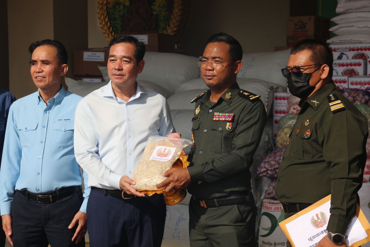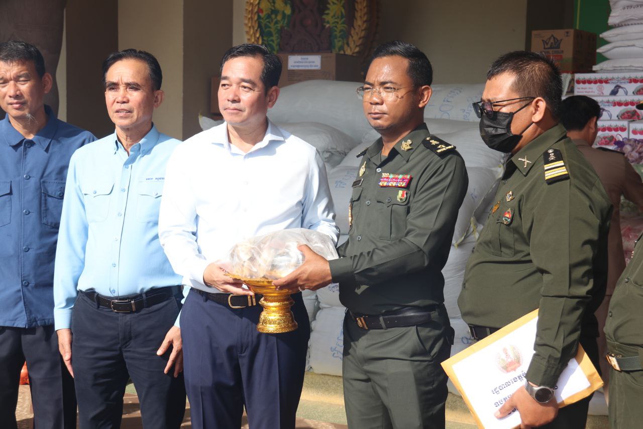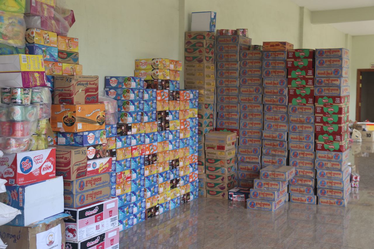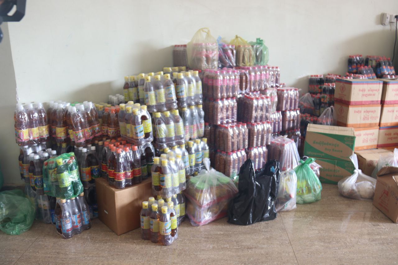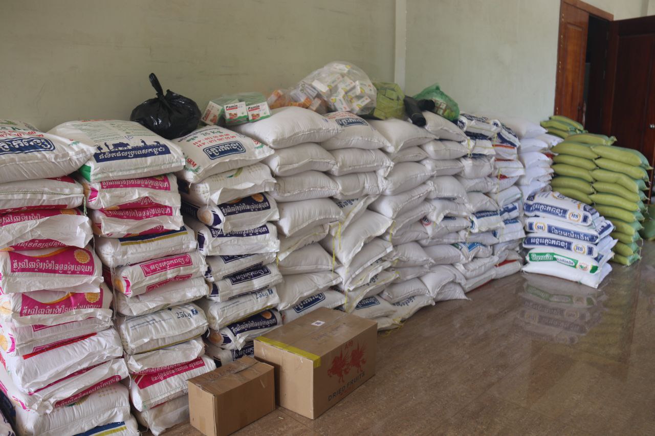ត្រីខកំប៉ុងចំនួន១០០កេសធំ, ខ្ទឹមសរចំនួន១០០គីឡូក្រាម, អំបុកខ្មែរ ចំនួន១,៥០០កញ្ចប់ ស្មើនឹង១,៥០០គីឡូក្រាម, ឆៃពៅ ចំនួន១០០គីឡូក្រាម, ត្រសក់ចាវ ចំនួន១២០គីឡូក្រាម, ត្រីប្រឡាក់ ចំនួន១,០០០គីឡូក្រាម, ប្រេងឆា ចំនួន១,០០០លីត្រ (ក្នុង១កាដុង៥លីត្រ), ស្ករស ចំនួន១០០គីឡូក្រាម, អំបិល ចំនួន៣០០គីឡូក្រាម, ប៊ីចេង ចំនួន៥០គីឡូក្រាម, អង្ករ ចំនួន១០តោន, មី ចំនួន៣០០កេស, សាច់ស្រស់ចំនួន២កេសធំ, បន្លែផ្លែឈើ និងសាច់ស្រស់មួយចំនួនធំ, អំពូលសូឡាចំនួន៥០ឈុត និងថវិកាសរុប ចំនួន៤០,០០០,០០០រៀល។