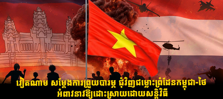 រដ្ឋមន្ត្រីការបរទេសវៀតណាម លោក Le Hoai Trung បានបង្ហាញការព្រួយបារម្ភជុំវិញការវិវត្តស្ថានការណ៍ដ៏ស្មុគស្មាញនៅតាមបណ្ដោយព្រំដែនកម្ពុជា-ថៃ អំឡុងកិច្ចពិភាក្សា ជាមួយសមភាគីថៃរបស់លោក លោក Sihasak Phuangketkeow នៅក្នុងប្រទេសថៃ កាលពីថ្ងៃអាទិត្យ ទី១៤ ខែធ្នូ។ នេះបើតាមទីភ្នាក់ងារសារព័ត៌មានវៀតណាម ដកស្រង់ចេញផ្សាយ ដោយទីភ្នាក់ងារសារព័ត៌មានចិន Xinhua។