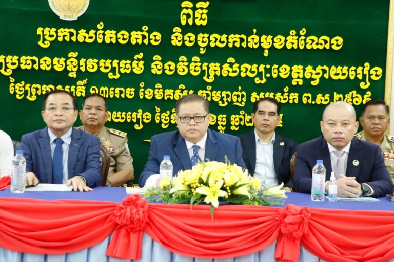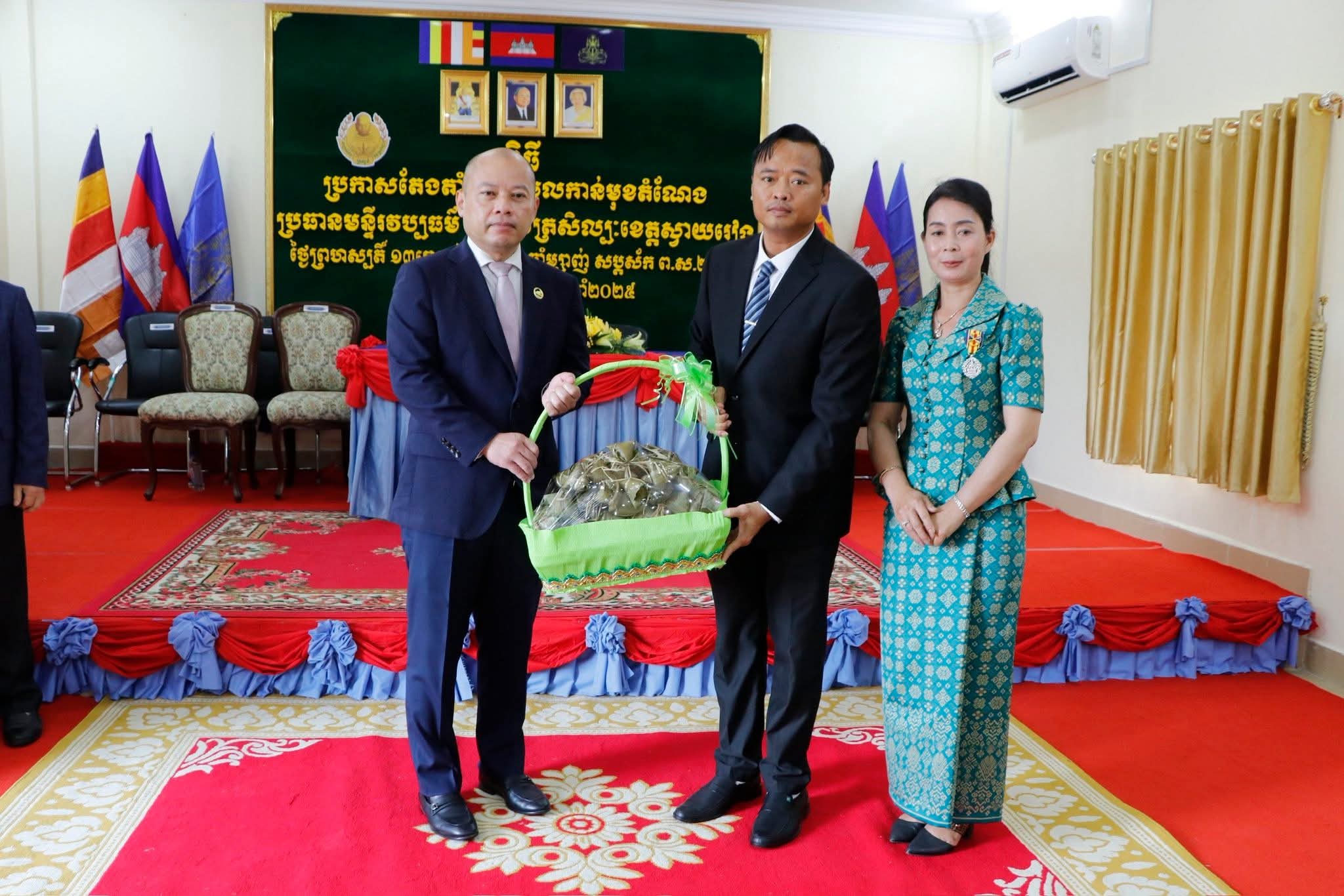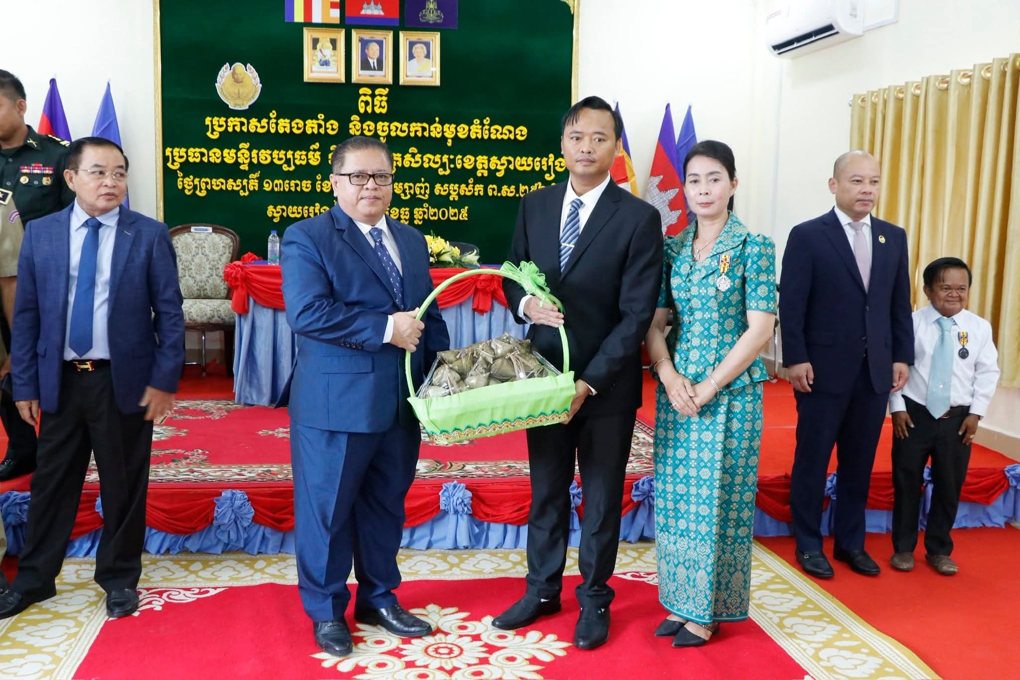 នាព្រឹកថ្ងៃព្រហស្បតិ៍ ១៣រោច ខែមិគសិរ ឆ្នាំម្សាញ់ សប្តស័ក ពុទ្ធសករាជ ២៥៦៩ ត្រូវនឹងថ្ងៃទី១៨ ខែធ្នូ ឆ្នាំ២០២៥ថ្ងៃនេះ ឯកឧត្តម ម៉ែន វិបុល ប្រធានក្រុមប្រឹក្សាខេត្តស្វាយរៀង ឯកឧត្តម ប៉េង ពោធិ៍សា អភិបាលនៃគណៈអភិបាលខេត្ត និងឯកឧត្តម ឡុង ប៉ុណ្ណាស៊ីរីវត្ថរដ្ឋលេខាធិការក្រសួងវប្បធម៌ និងវិចិត្រសិល្បៈ តំណាងលោកជំទាវបណ្ឌិតសភាចារ្យ ភឿង សកុណា រដ្ឋមន្ត្រី ក្រសួងវប្បធម៌ និងវិចិត្រសិល្បៈ បានអញ្ជេីញជាអធិបតីក្នុងពិធីប្រកាសចូលកាន់មុខតំណែងប្រធានមន្ទីរវប្បធម៌ និងវិចិត្រសិល្បៈខេត្តស្វាយរៀង។