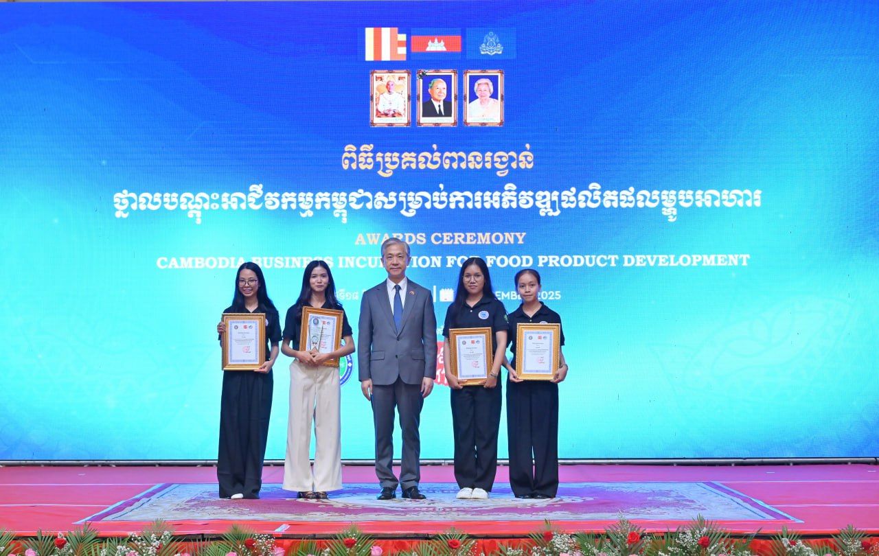 កម្មវិធីនេះក៏មានការប្រគល់ពានរង្វាន់ជ័យលាភីស្តីពី «ថ្នាលបណ្តុះអាជីវកម្មកម្ពុជា សម្រាប់ការអភិវឌ្ឍផលិតផលម្ហូបអាហារ» ដែលជាសកម្មភាពសំខាន់មួយរបស់គម្រោង ផ្តោតលើការជំរុញនវានុវត្តន៍ក្នុងការកែច្នៃផលិតផលម្ហូបអាហារដោយប្រើប្រាស់វត្ថុធាតុដើមក្នុងស្រុក។