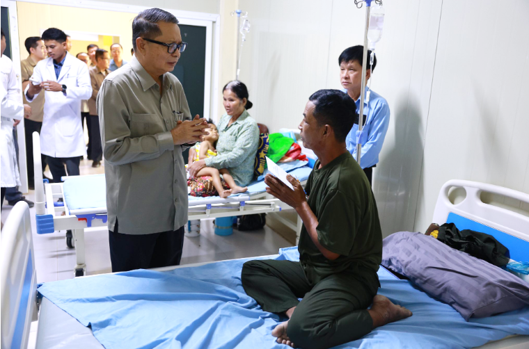 សម្តេចមហាមន្ត្រី បានសម្តែងនូវក្តីអាណិតអាសូរជាពន់ពេក ចំពោះវីរកងទ័ព ដែលកំពុងសម្រាកព្យាបាលរបួស ដោយសារត្រូវផ្សែងពុលដែលបង្កឡើងដោយកងទ័ពថៃឈ្លានពានលើដែនអធិបតេយ្យកម្ពុជា និងបានសួរសុខទុក្ខដល់កុមារកំពុងព្យបាលជំងឺគ្រុនឈាម ដែលត្រូវជាកូនរបស់វីរកងទ័ពជួរមុខដែលកំពុងឈរជើងយ៉ាងអង់អាចក្លាហាន កាពារបូរណភាពទឹកដី និងអធិបតេយ្យកម្ពុជា។