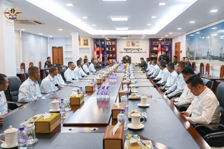 នាយឧត្តមសេនីយ៍ វង្ស ពិសេន អគ្គមេបញ្ជាការ នៃកងយោធពលខេមរភូមិន្ទ បានទទួលជួបចំណេះសំណាល និងសួរសុខទុក្ខវីរៈកងទ័ពកម្ពុជាទាំង ១៨រូប ដែលបាននិវត្តន៍មកដល់មាតុប្រទេសវិញ បន្ទាប់ពីជាប់នៅប្រទេសថៃអស់រយៈពេល ១៥៥ ថ្ងៃ នារសៀលថ្ងៃទី០២ ខែមករា ឆ្នាំ២០២៦ នៅអគ្គបញ្ជាការដ្ឋាន។
