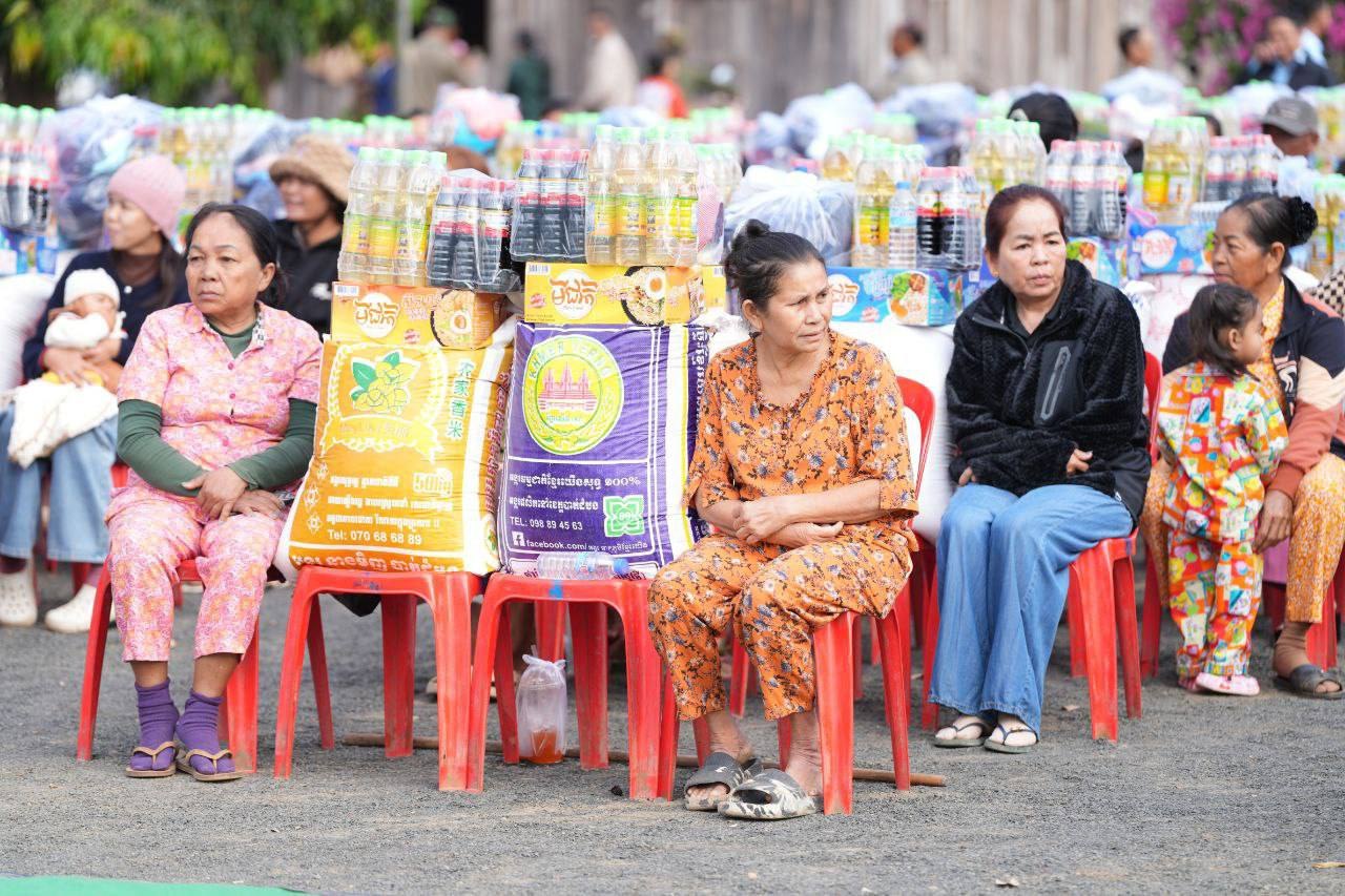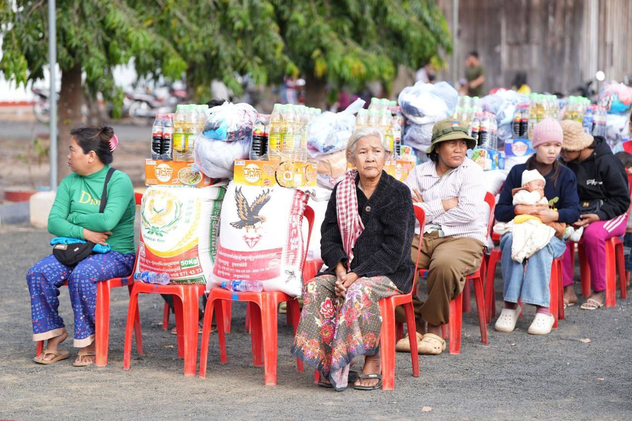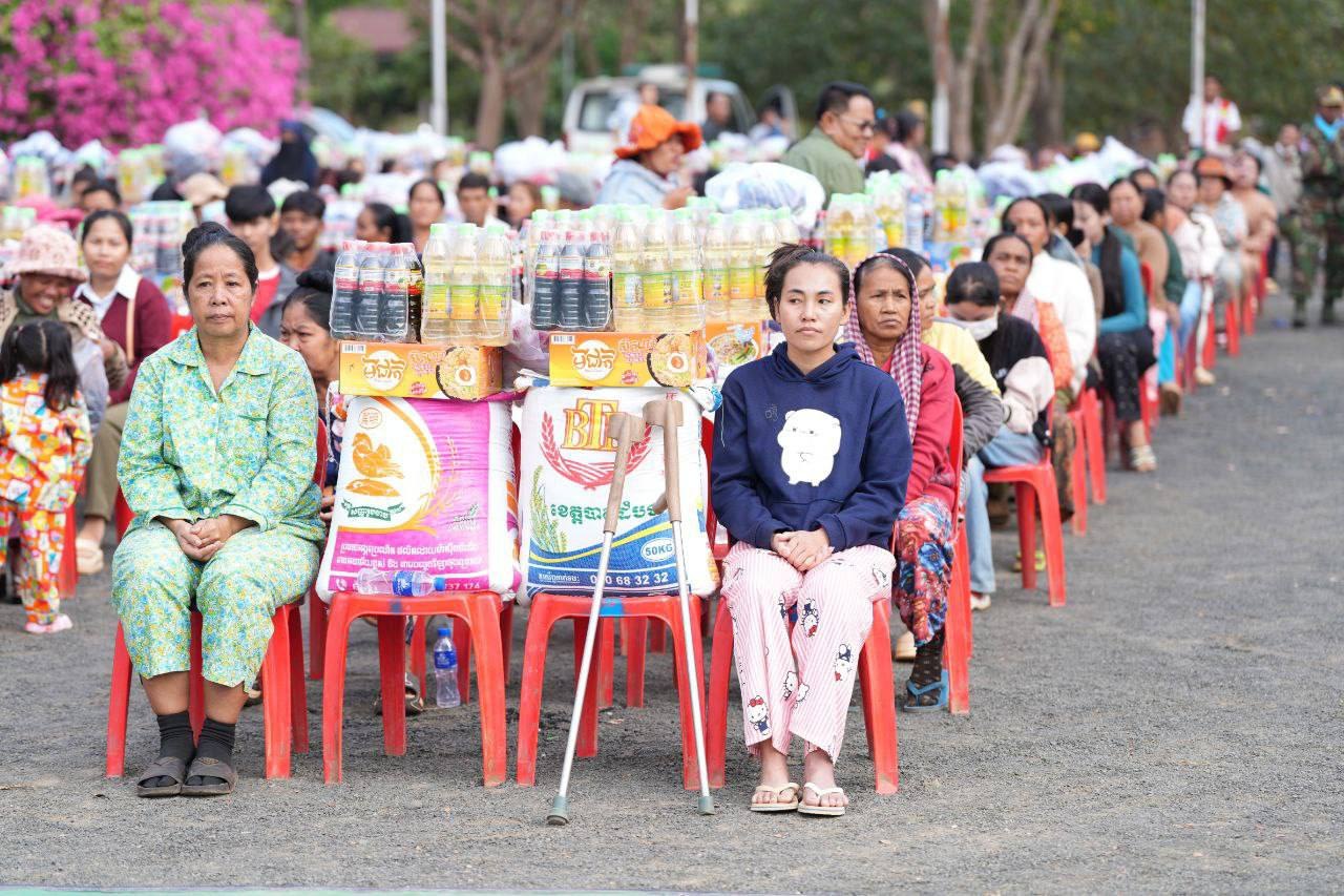 គ្រឿងឧបភោគបរិភោគ និងថវិកា ជាអំណោយរបស់សម្តេចធិបតី និងលោកជំទាវបណ្ឌិត ដែលត្រូវបាននាំយកមក ចែកជូន ដល់គ្រួសារវីរកងទ័ព និងគ្រួសារជនភៀសសឹក ក្នុងមួយគ្រួសារទទួលបានអង្ករ ៥០គីឡូក្រាម ទឹកត្រី ១យួរ ទឹកស៊ីអ៉ីវ ១យួរ មី ១កេស សម្លៀកបំពាក់ និងថវិកាមួយចំនួន៕