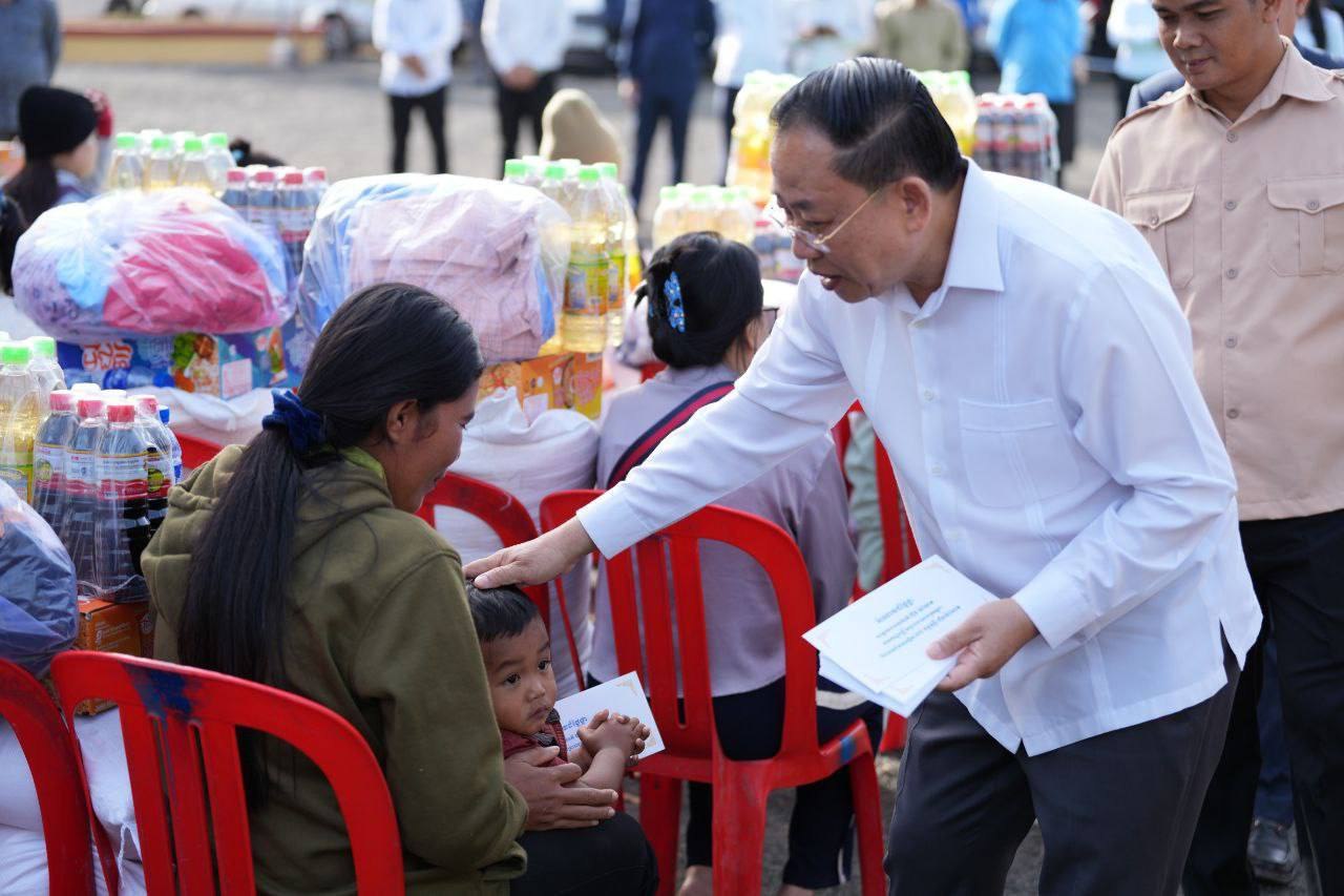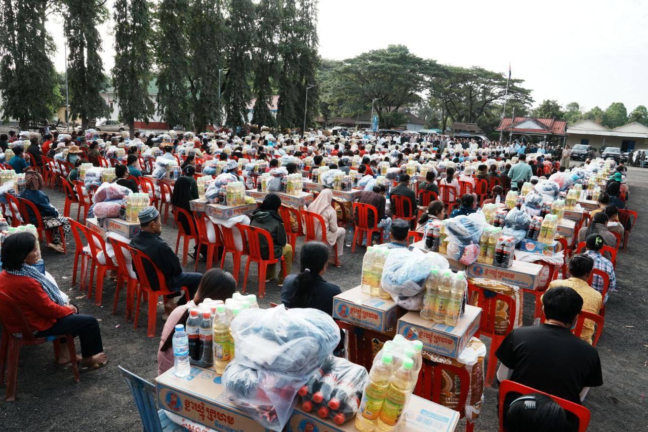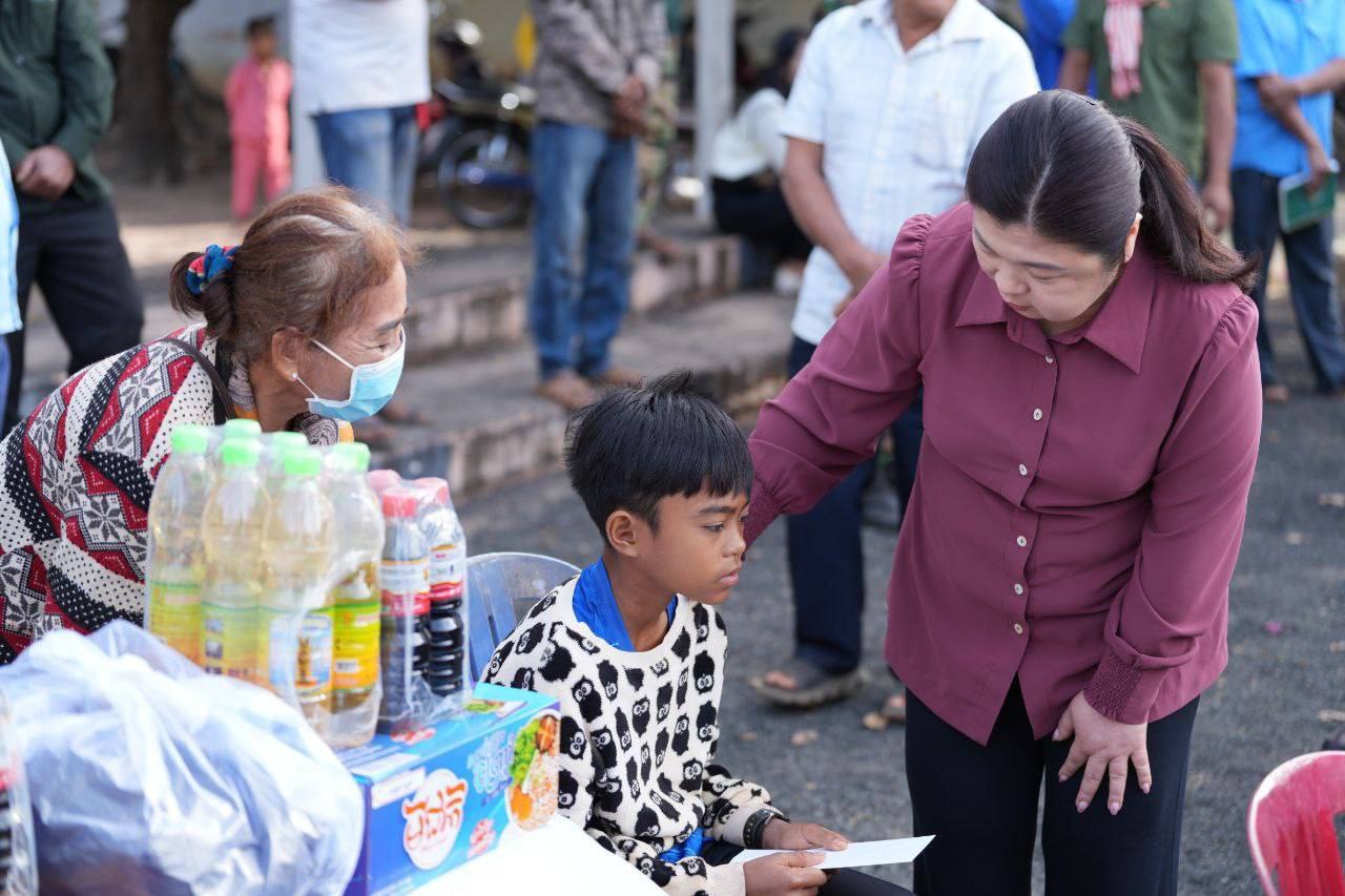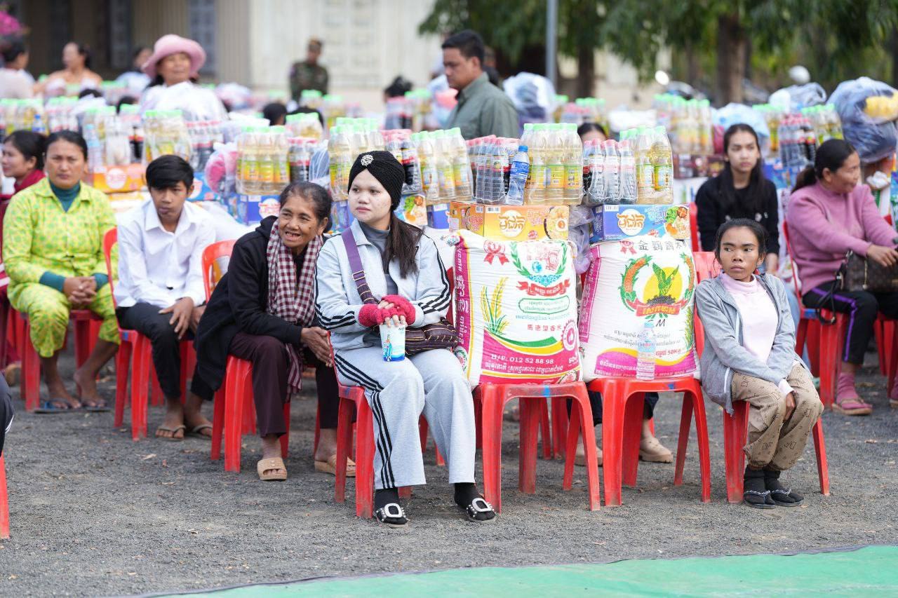 គ្រឿងឧបភោគបរិភោគ និងថវិកា ជាអំណោយរបស់សម្តេចធិបតី និងលោកជំទាវបណ្ឌិត ដែលត្រូវបាននាំយកមក ចែកជូន ដល់គ្រួសារវីរកងទ័ព និងគ្រួសារជនភៀសសឹក ក្នុងមួយគ្រួសារទទួលបានអង្ករ ៥០គីឡូក្រាម ទឹកត្រី ១យួរ ទឹកស៊ីអ៉ីវ ១យួរ មី ១កេស សម្លៀកបំពាក់ និងថវិកាមួយចំនួន៕