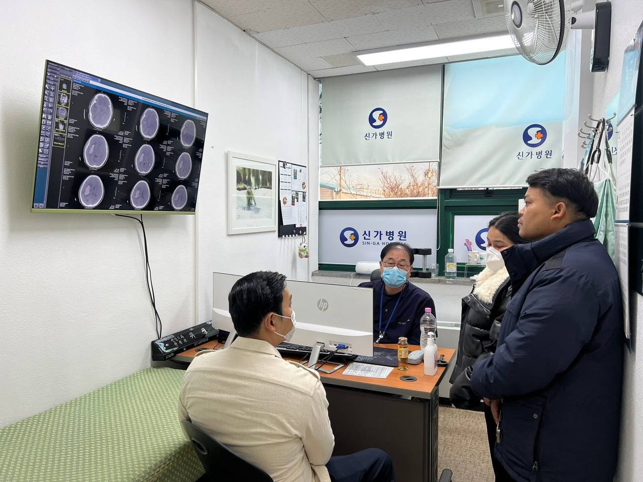 (កូរ៉េខាងត្បូង)៖ ឯកឧត្តម ឃួន ផុនរតនៈ ឯកអគ្គរាជទូតកម្ពុជាប្រចាំសាធារណរដ្ឋកូរ៉េ នៅព្រឹកថ្ងៃទី៨ ខែមករា ឆ្នាំ២០២៦ អមដោយអនុព័ន្ធការងារ បានចុះសួរសុខទក្ខ ប្អូនប្រុស ទេព ស៊ីណា អាយុ ៣២ឆ្នាំ ជាពលករបម្រើការងារផ្នែកឧស្សាហកម្មនៅតំបន់ក្វាងជូធំ ដែលរងគ្រោះដោយជំងឺដាច់សរសៃឈាមខួរក្បាលកំពុងសម្រាកព្យាបាល នៅមន្ទីរពេទ្យស៊ីនហ្គា ( Sin Ga hospital )។
