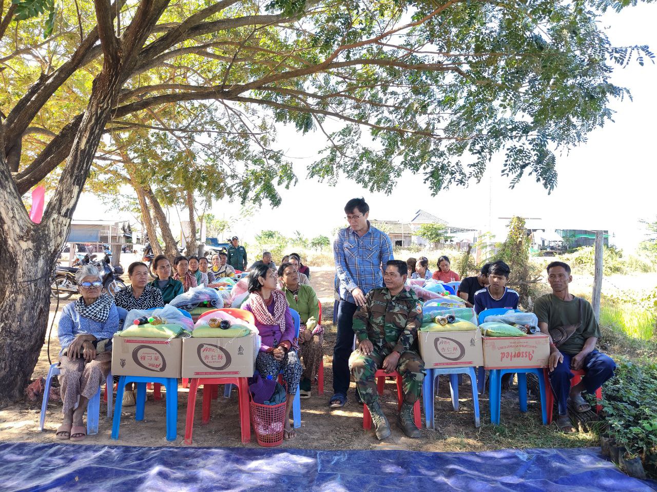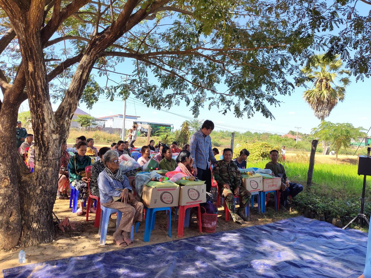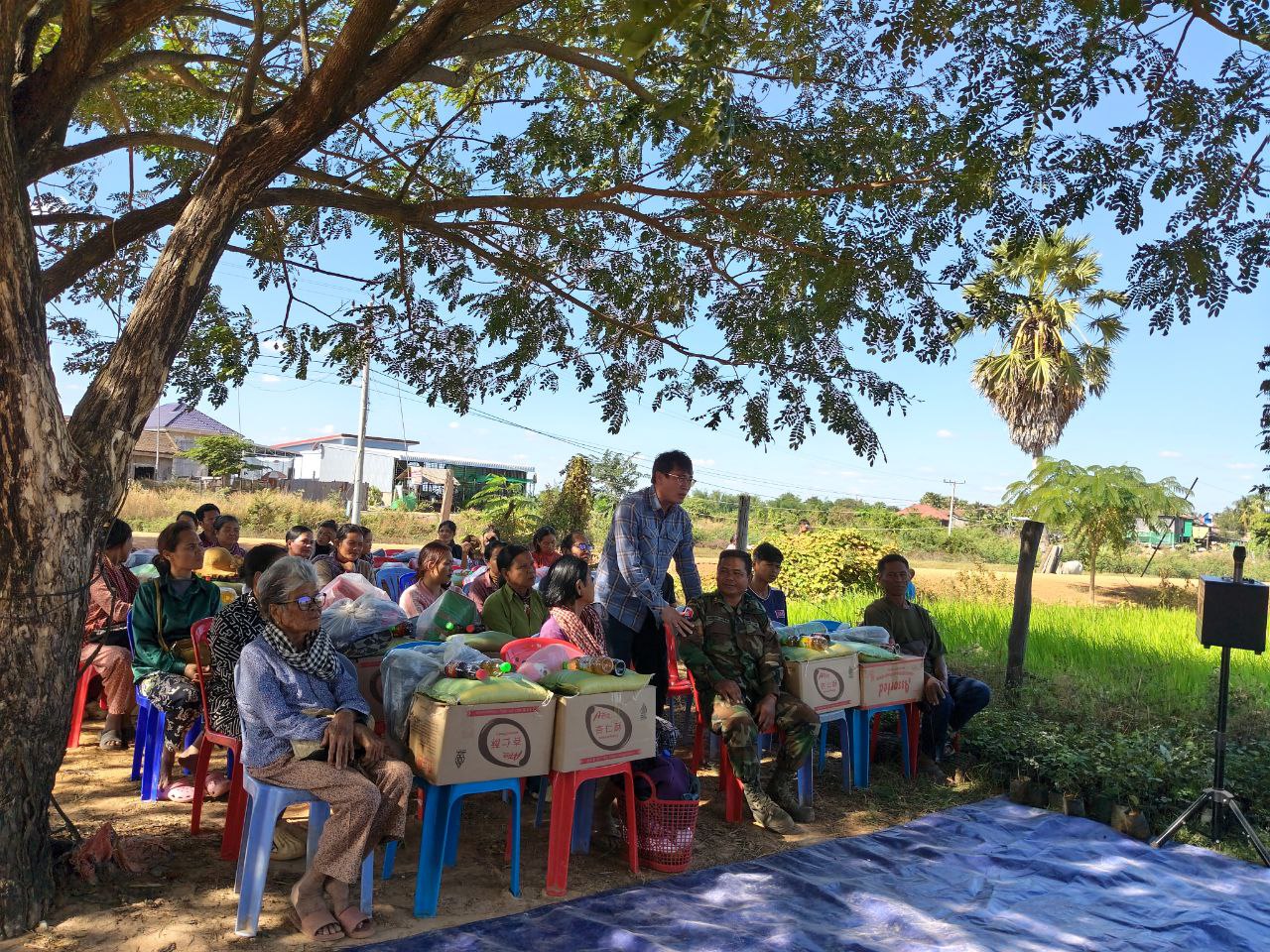 សូមបញ្ជាក់ផងដែរថា គ្រួសារកងទ័ពជួរមុខ និងគ្រួសារភៀសសឹកជាកងទ័ពជួរមុខចំនួន ៣០គ្រួសារ ក្នុង១គ្រួសារទទួលបាន៖ អង្ករ ៥គីឡូក្រាម ភួយ ១កន្សែងតូច១ សំឡីអនាម័យ ២ដុំតូច សាប៊ូដុសមុខ lemon ២ដុំតូច សាប៊ូលាងចាន១កញ្ចប់តូច ថ្នាំដុសធ្មេញ១ប្រអប់ សាច់ក្រក១កញ្ចប់តូច ឆៃប៉ូវផ្អែម១កញ្ចប់តូច អំបិលអ៊ីយ៉ូត១ថង់ ស្ករសកន្លះគីឡូក្រាម ទឹកត្រី១ដប ទឹកស៊ីអ៊ីវ១ដប តាំងហ៊ុន៤ដុំ នំហូប១ថង់ ខ្ទឹមស១គីឡូ ចាហួយ១កាដុងតូច ត្រីខ១កំប៉ុង ថវិការ ៥០ ០០០រៀល។