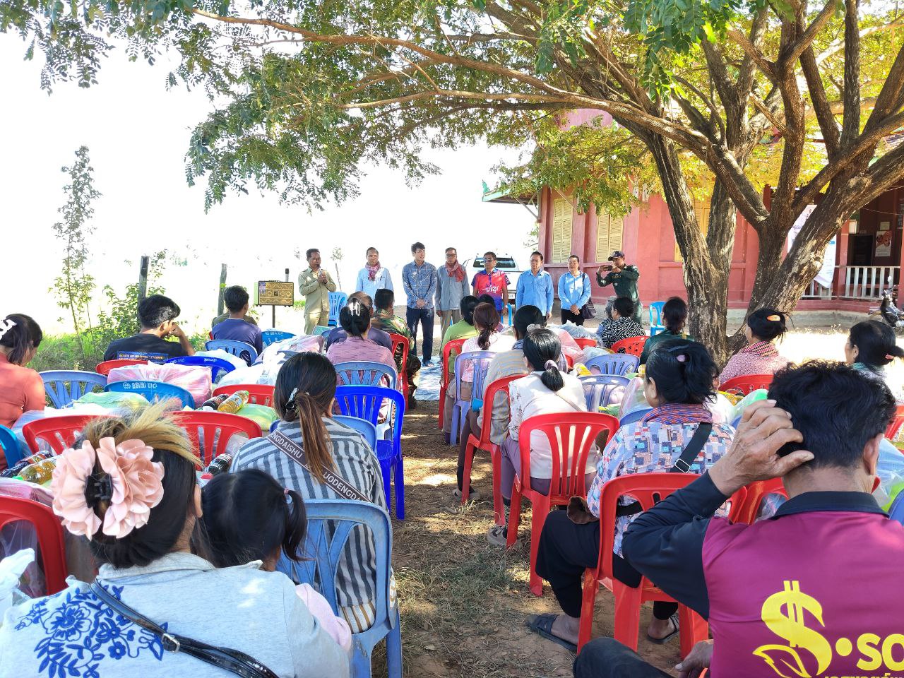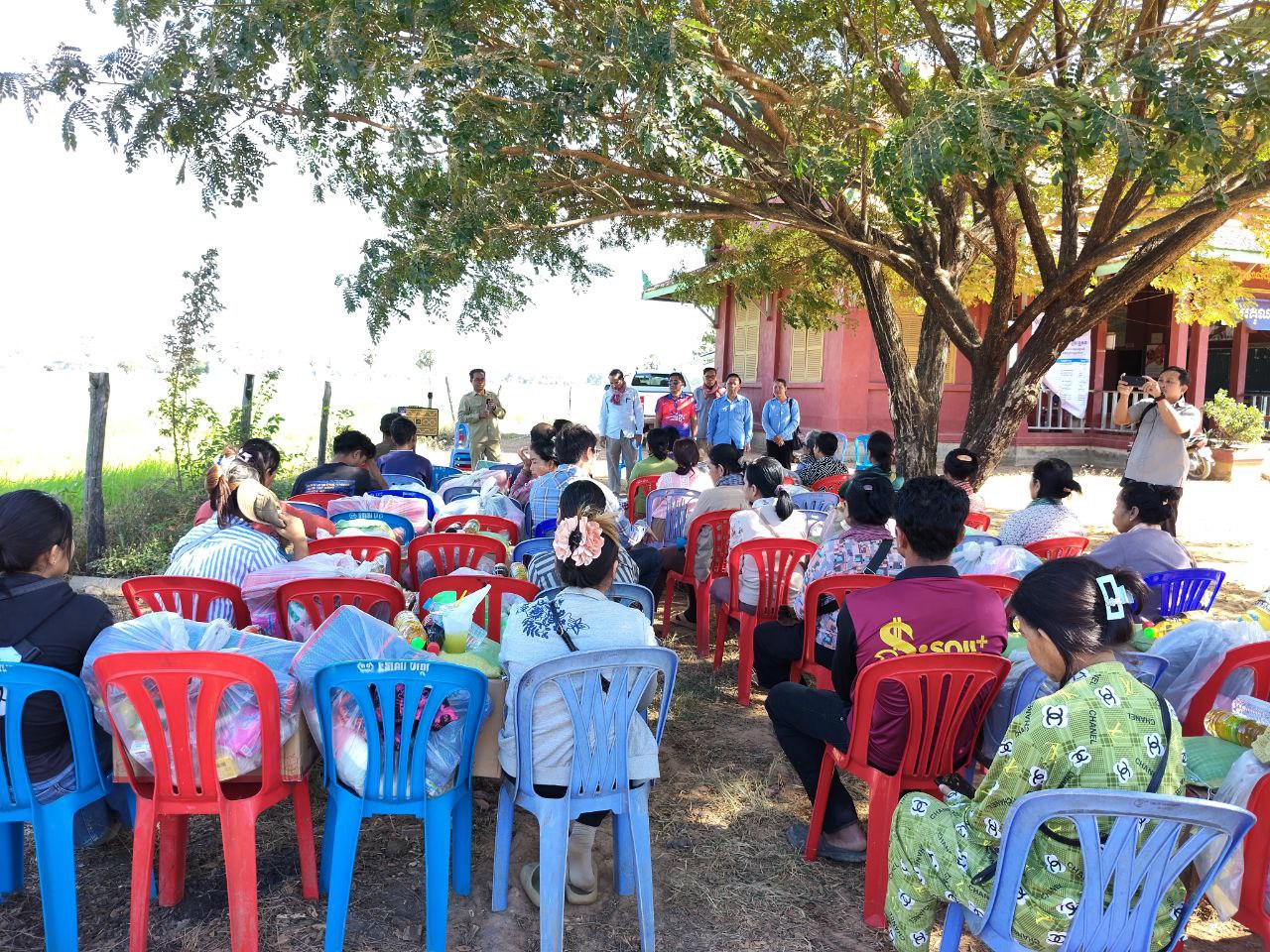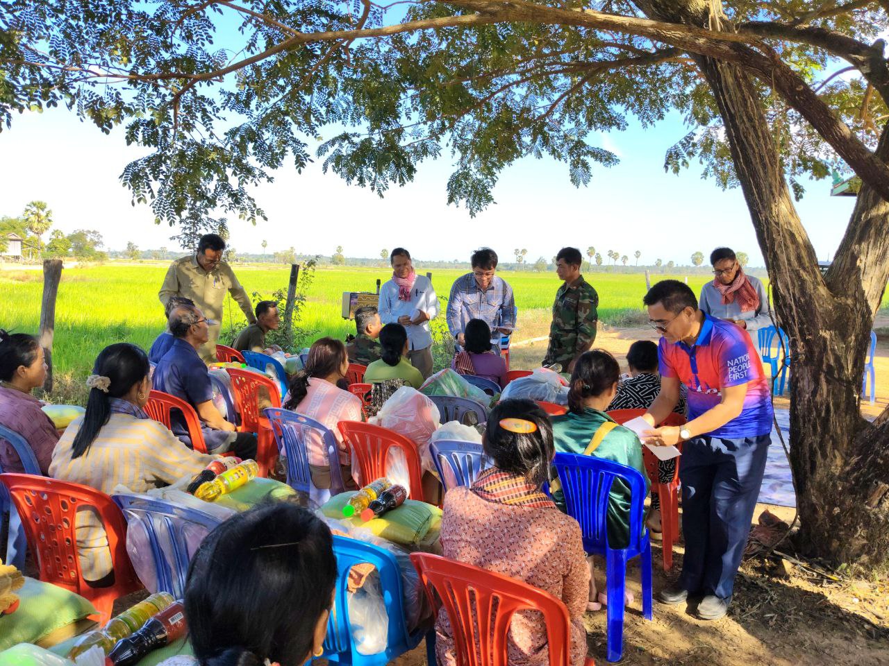 សូមបញ្ជាក់ផងដែរថា គ្រួសារកងទ័ពជួរមុខ និងគ្រួសារភៀសសឹកជាកងទ័ពជួរមុខចំនួន ៣០គ្រួសារ ក្នុង១គ្រួសារទទួលបាន៖ អង្ករ ៥គីឡូក្រាម ភួយ ១កន្សែងតូច១ សំឡីអនាម័យ ២ដុំតូច សាប៊ូដុសមុខ lemon ២ដុំតូច សាប៊ូលាងចាន១កញ្ចប់តូច ថ្នាំដុសធ្មេញ១ប្រអប់ សាច់ក្រក១កញ្ចប់តូច ឆៃប៉ូវផ្អែម១កញ្ចប់តូច អំបិលអ៊ីយ៉ូត១ថង់ ស្ករសកន្លះគីឡូក្រាម ទឹកត្រី១ដប ទឹកស៊ីអ៊ីវ១ដប តាំងហ៊ុន៤ដុំ នំហូប១ថង់ ខ្ទឹមស១គីឡូ ចាហួយ១កាដុងតូច ត្រីខ១កំប៉ុង ថវិការ ៥០ ០០០រៀល។