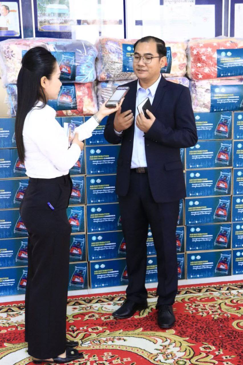 សូមបញ្ជាក់ជូនផងដែរថា ជំនួយទាំងអស់នេះ សមាគមប្រគល់ជូនក្រសួងធម្មការ និងសាសនា តាមរយៈលោក ឡា ឡៃ រដ្ឋលេខាធិការក្រសួងធម្មការ និងសាសនា ដើម្បី ឧបត្ថម្ភគ្រឿងឧបភោគបរិភោគ និងសម្ភារៈ ដើម្បីជូនដល់វីរកងទ័ពដ៏អង់អាចក្លាហាន និងបងប្អូនប្រជាពលរដ្ឋភៀសសឹក ដែលជាទឹកចិត្តដ៏ធំធេង បានបង្ហាញនូវការគោរពស្រឡាញ់ ផ្តល់កម្លាំងចិត្តដល់វីរភាពកងទ័ពការពារជាតិរបស់យើង និងជាគាំទ្រវីរកងទ័ពជួរមុខកម្ពុជា ដ៏អង់អាចក្លាហាន ក្នុងន័យបង្ហាញពីខឿនការពារជាតិ ជាពិសេសការគិតគូរដល់បងប្អូន ប្រជាពលរដ្ឋភៀសសឹក។