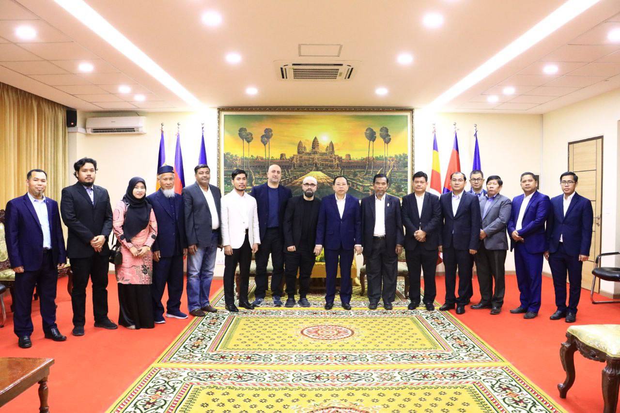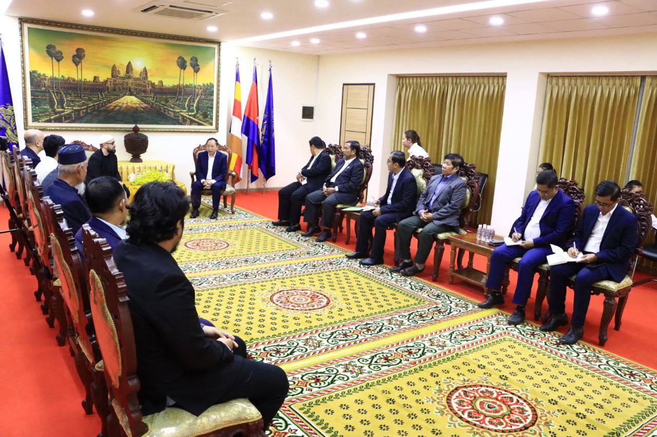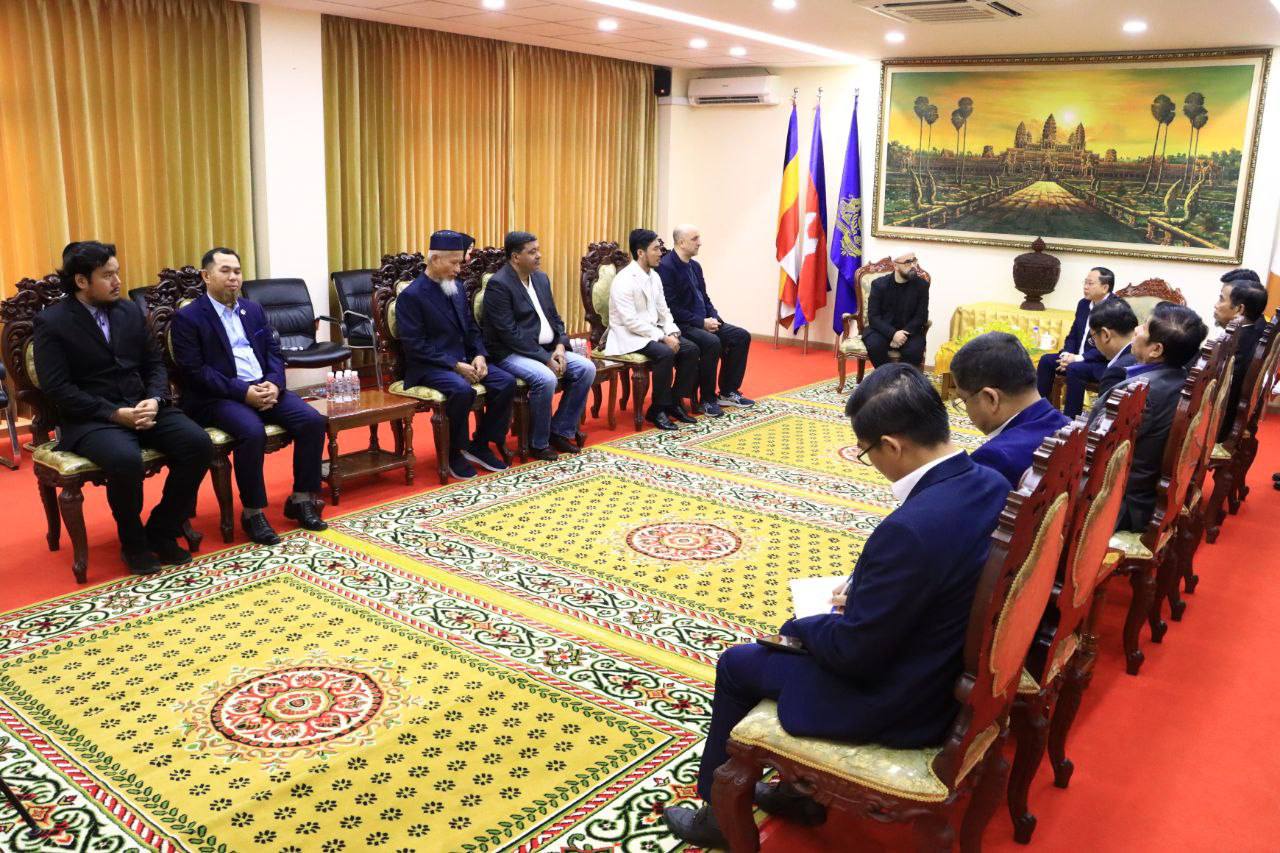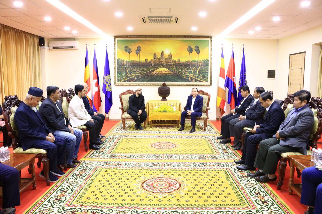 ឯកឧត្តមបណ្ឌិត ចាយ បូរិន រដ្ឋមន្ត្រីក្រសួងធម្មការ និងសាសនា អនុញ្ញាតឱ្យលោក Abdalrahman Ramon Gonzalez Suarez Farid Ben Amar (អាប់ដាល់រ៉ាម៉នរ៉នហ្សាលេស ស្វារ៉េស) ប្រធានសមាគម Humanipedie ប្រទេសបែលហ្សិក និងលោក ហ្វារីដ ប៊ែន អាម៉ា (Farid Ben Amar) ប្រធានសមាគម Projet Alyatim ប្រទេសបែលហ្ស៊ិក សុះ ជីបព្រល ប្រធានសមាគមអភិវឌ្ឍន៍ និងការអប់រំមុស្លីមកម្ពុជា និងសហការី ចូលជួបសម្តែងការគួរសមពិភាក្សាការងារ និងនាំយកអំណោយមកប្រគល់ជូនសម្រាប់ ចែកជូនវីរកងទ័ព និងគ្រួសារភៀសសឹក តាមរយៈក្រសួងធម្មការនិងសាសនា នាថ្ងៃទី១៣ ខែមករា ឆ្នាំ២០២៦ នៅទីស្តីការក្រសួង។
