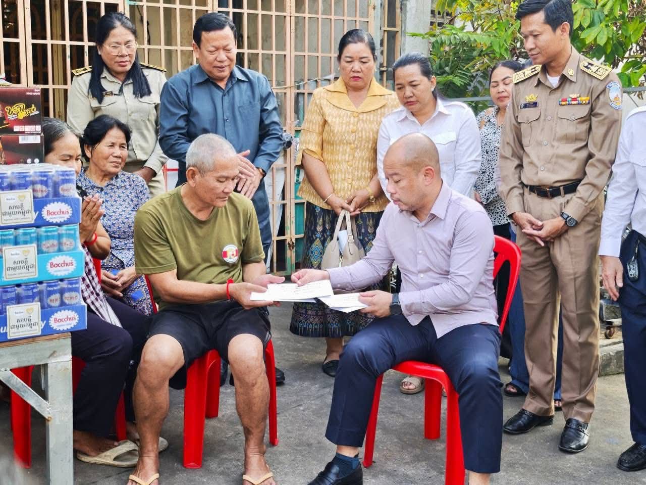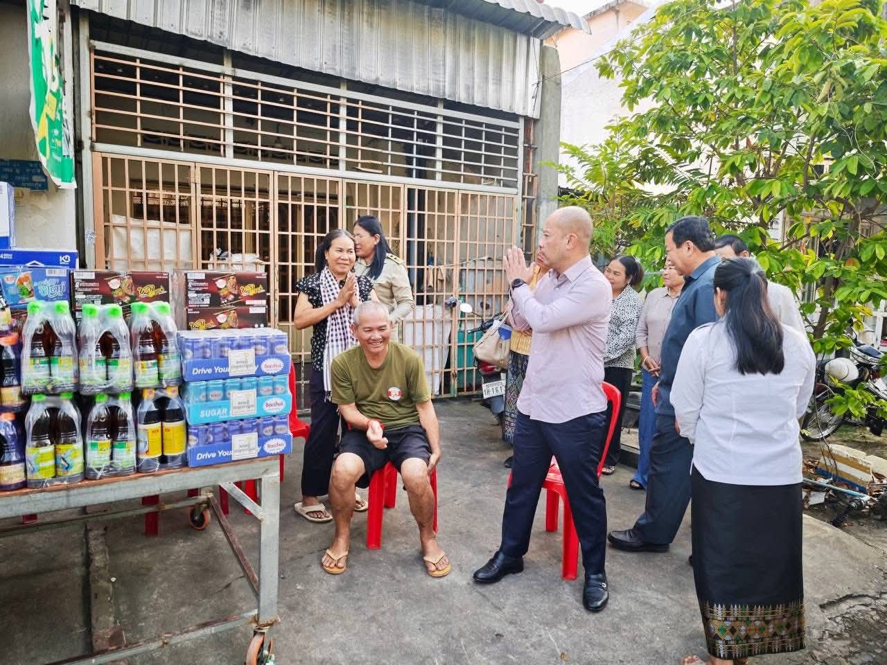 សម្ភារ: និងថវិកា រួមមាន អង្ករ ១៥០គ.ក ,មី ១៣កេស ,ទឹកត្រី ៦យួរ ,ទឹកស៊ីអ៊ីវ ៥យួរ ,ទឹកបរិសុទ្ធ ១០កេស ,បាកាស់ ៣កេស និងថវិកាចំនួន ២ ១០០ ០០០ រៀល។