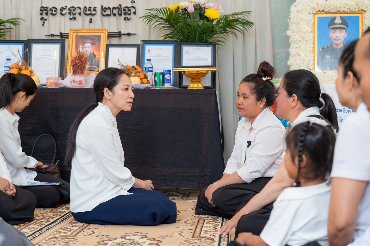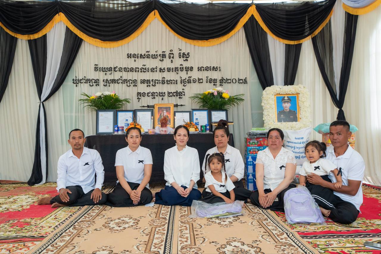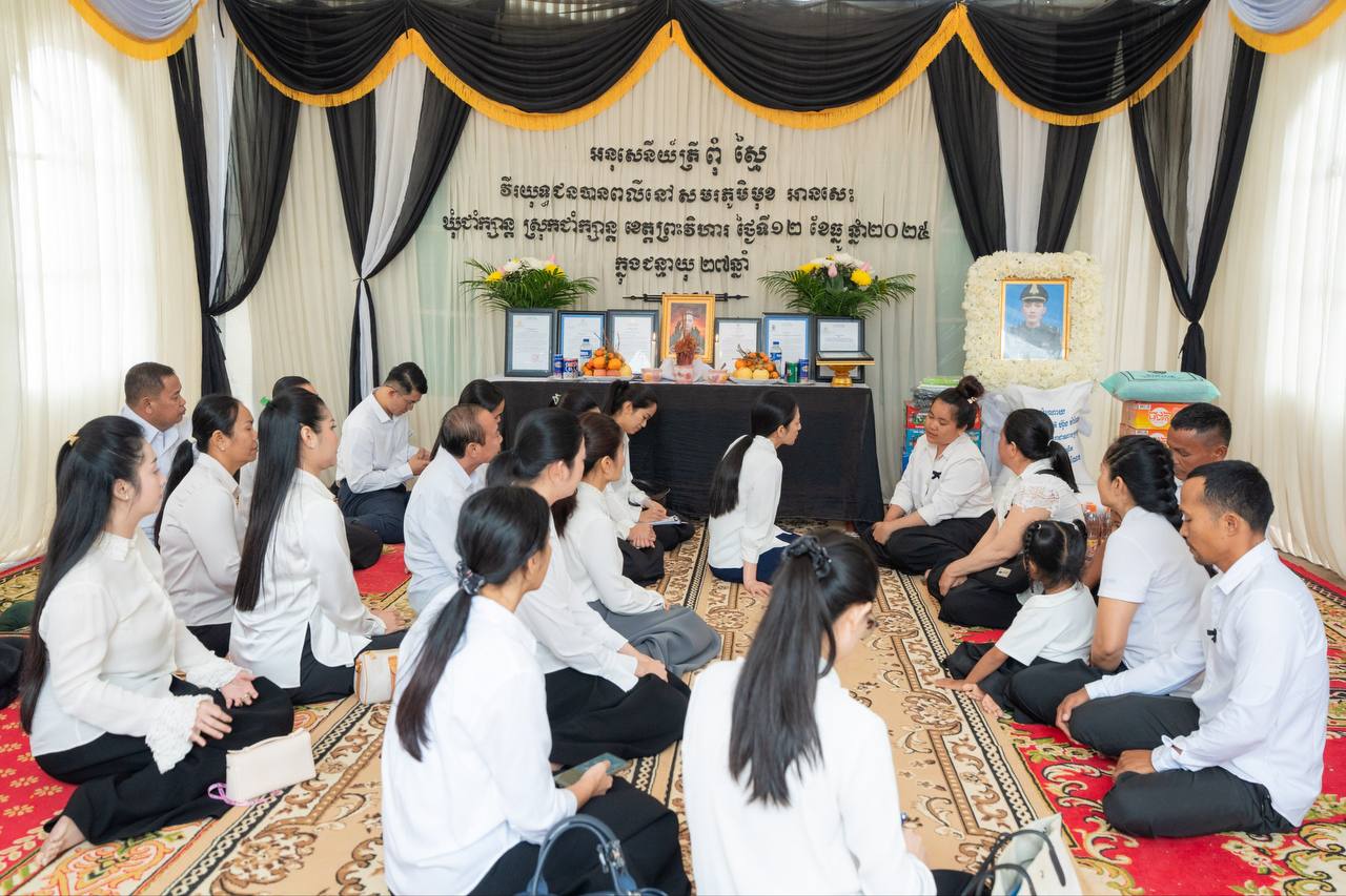 ដោយមានអារម្មណ៍សោកសៅជាពន់ពេក លោកជំទាវបណ្ឌិត បានបន្តអញ្ជើញចូលរួមគោរពវិញ្ញាណក្ខន្ធវីរកងទ័ពដោយផ្ទាល់នៅគេហដ្ឋានរបស់សពនៅក្នុងមូលដ្ឋានខេត្តក្រចេះ។