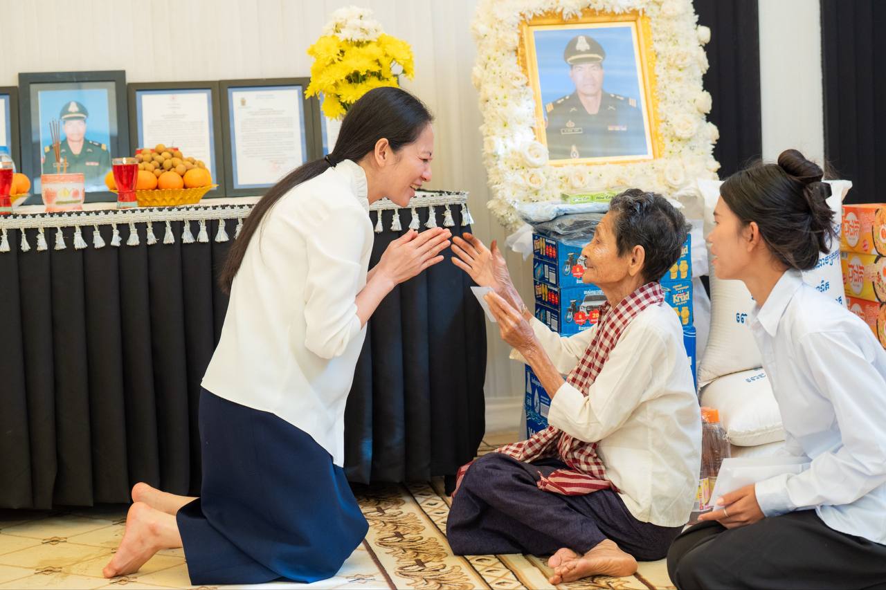 ស្ថិតក្នុងវេលានេះដែរ លោកជំទាវបណ្ឌិត ថែមទាំងបានពាំនាំប្រសាសន៍ចូលរួមរំលែកមរណទុក្ខដ៏ក្រៀមក្រំបំផុត និងប្រសាសន៍សួរសុខទុក្ខពី សម្តេចអគ្គមហាសេនាបតីតេជោ ហ៊ុន សែន សម្តេចកិត្តិព្រឹទ្ធបណ្ឌិត ប៊ុន រ៉ានី ហ៊ុនសែន រួមទាំង សម្តេចមហាបវរធិបតី ហ៊ុន ម៉ាណែត ជូនដល់ក្រុមគ្រួសារនៃសពផងដែរ ។ ទន្ទឹមនឹងនេះ លោកជំទាវបណ្ឌិត ក៏បាននាំយកមកជាមួយនូវអំណោយដ៏ថ្លៃថ្លារបស់ សម្តេចធិបតី និងលោកជំទាវបណ្ឌិត ជូនដល់ក្រុមគ្រួសារនៃសព ដើម្បីជួយសម្រួលដល់ការរស់នៅប្រចាំថ្ងៃ ៕