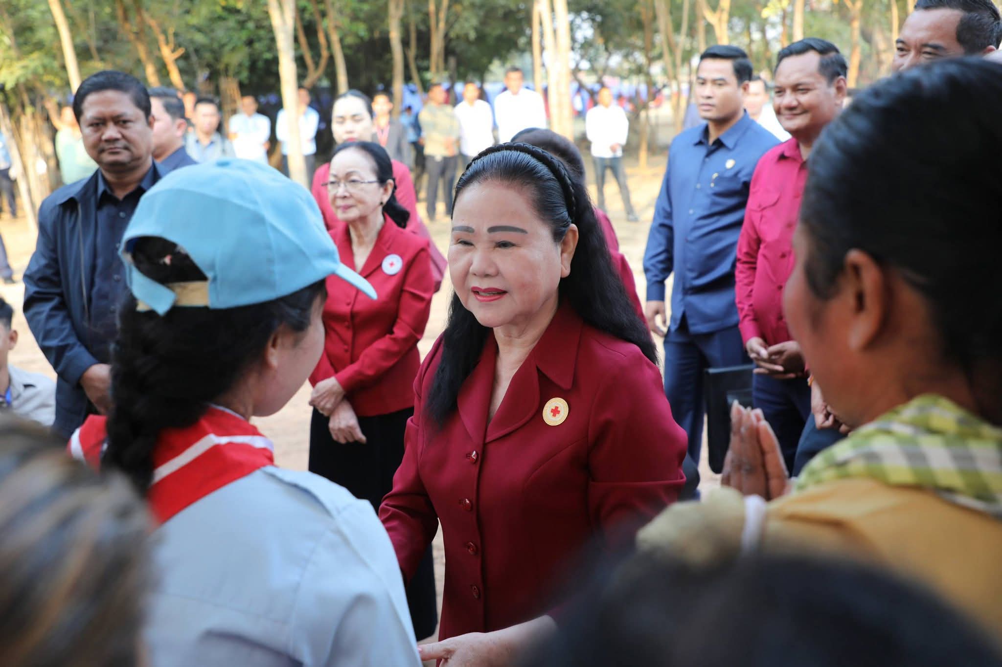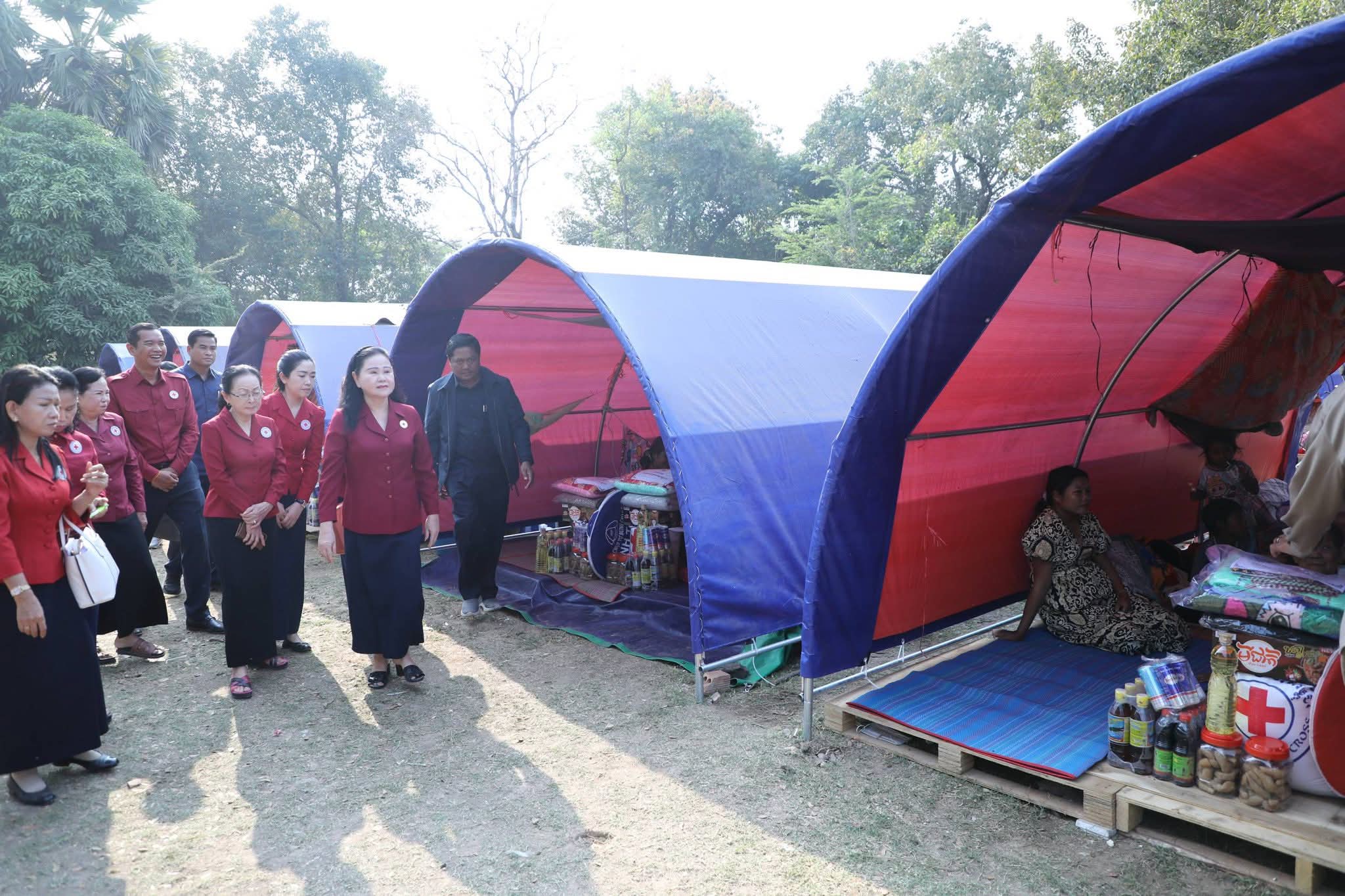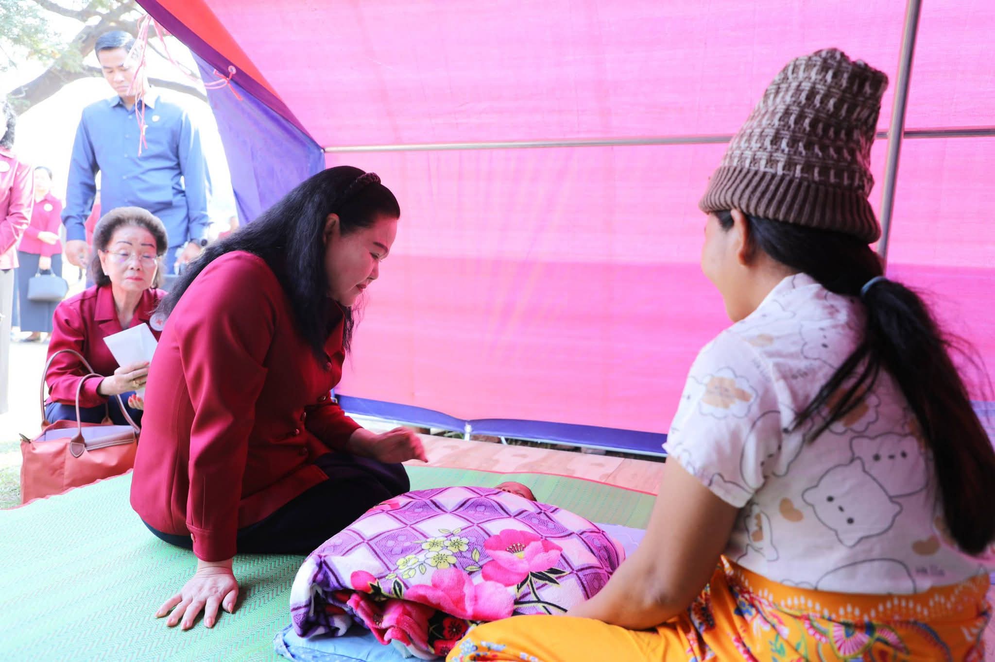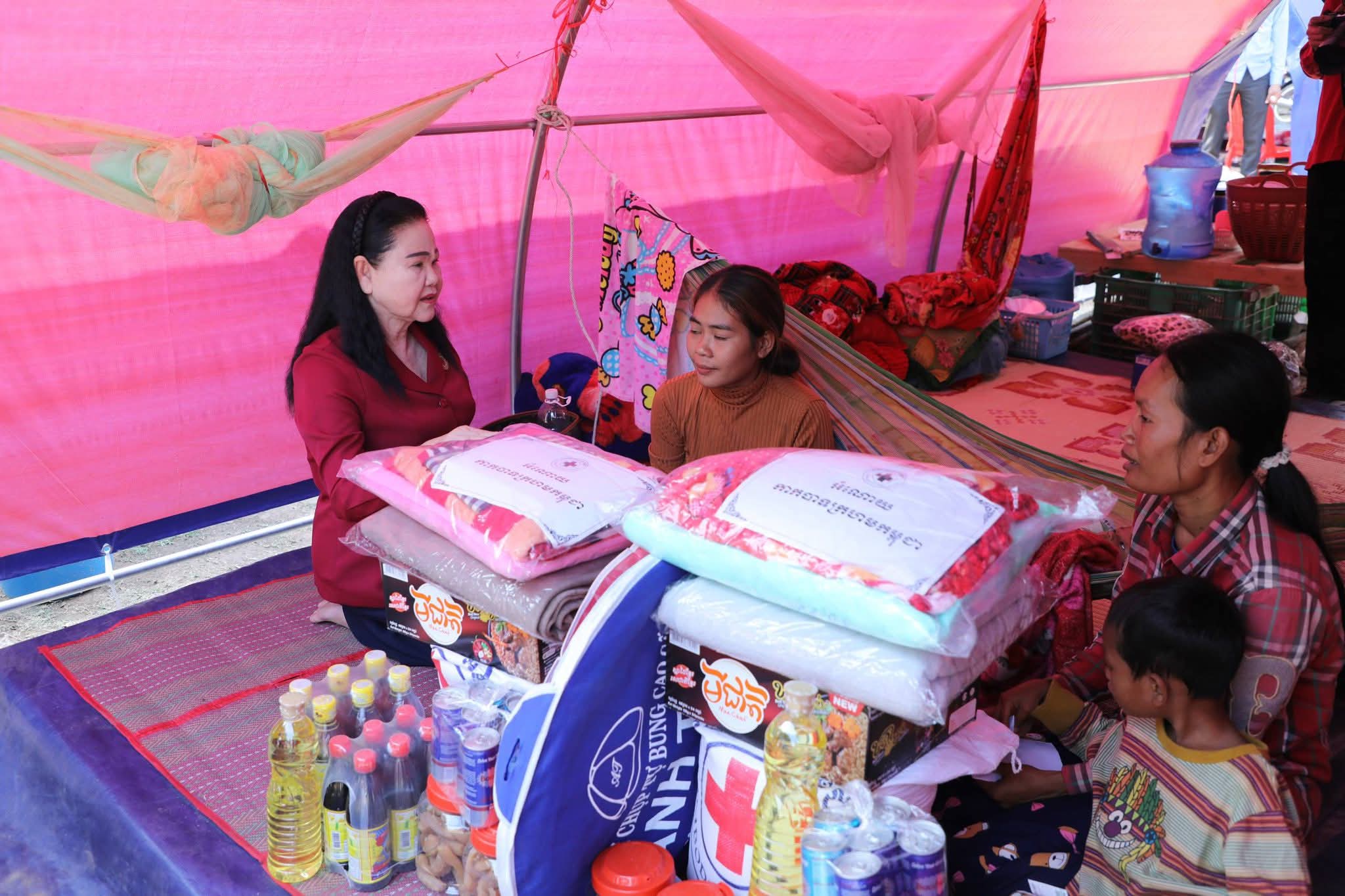 ក្នុងឱកាសជួបសំណេះសំណាលសួរសុខទុក្ខជាមួយប្រជាជនភៀសសឹកទាំងអស់ សម្តេចកិត្តិព្រឹទ្ធបណ្ឌិត ប៊ុន រ៉ានី ហ៊ុនសែន បានពាំនាំនូវព្រះរាជបន្ទូលរបស់ ព្រះករុណា ព្រះមហាក្សត្រ ជាអម្ចាស់ជីវិតលើត្បូង និងព្រះសវណីយ៍ សម្តេចព្រះមហាក្សត្រី ព្រះវររាជមាតាជាតិខ្មែរ ព្រះប្រធានកិត្តិយស កាកបាទក្រហមកម្ពុជា ជាទីគោរពសក្ការៈដ៏ខ្ពង់ខ្ពស់បំផុត ដែលព្រះអង្គទាំងទ្វេបានផ្តាំផ្ញើសួរសុខទុក្ខ និងក្តីនឹករលឹក ជាពិសេសការគិតគូរពីសុខទុក្ខប្រជានុរាស្ត្ររបស់ព្រះអង្គនៅគ្រប់ទីកន្លែង និងគ្រប់ពេលវេលា ព្រមទាំងសូមជូនពរបងប្អូនប្រជាពលរដ្ឋសូមមានសុខភាពល្អ ដើម្បីបន្តប្រកបរបរចិញ្ចឹមជីវិតតទៅមុខទៀត។