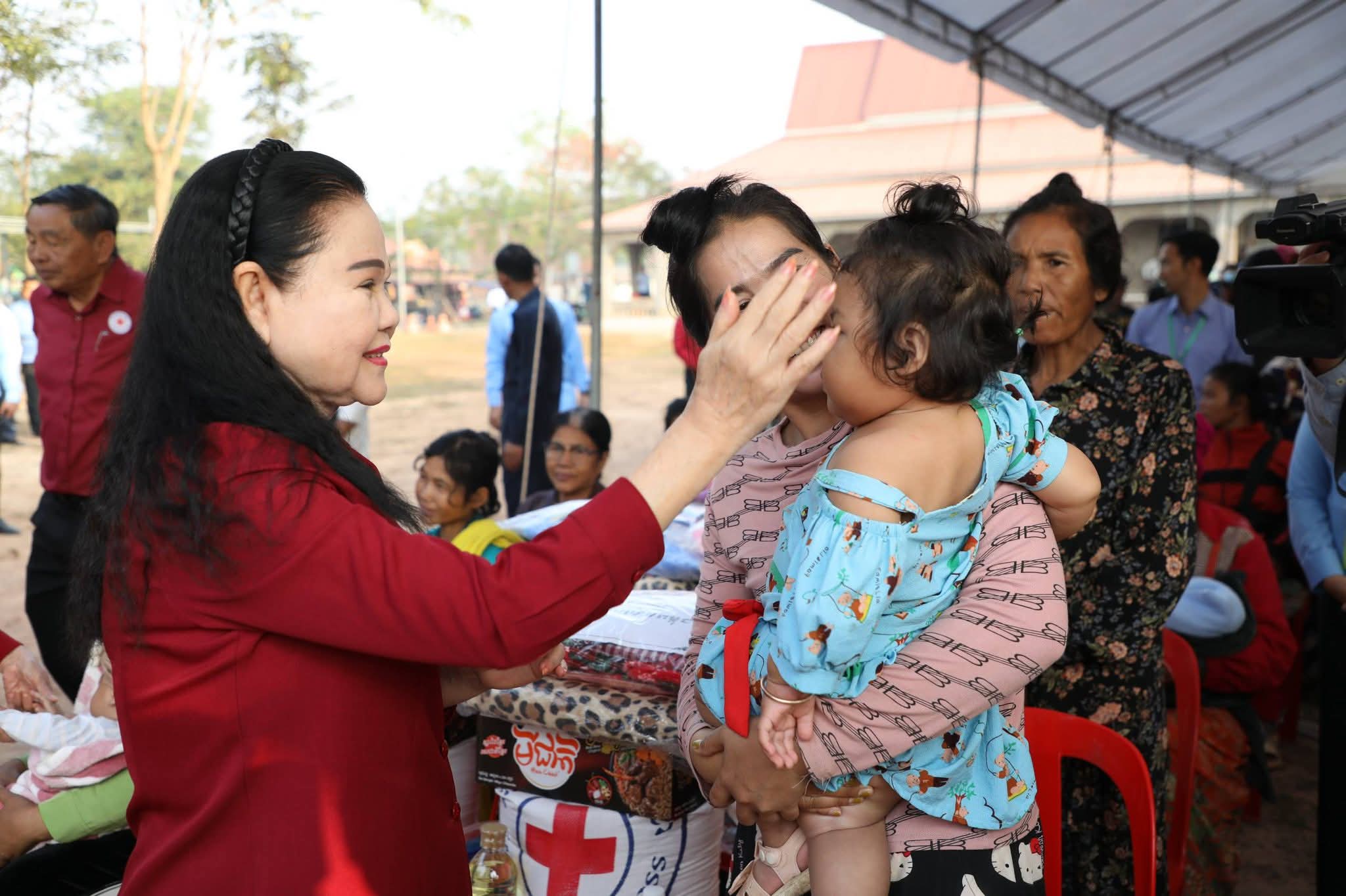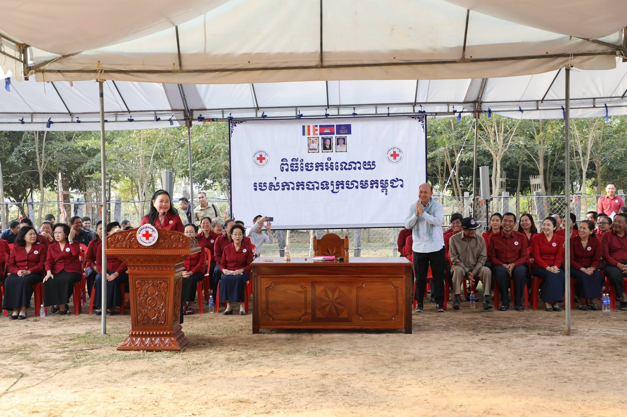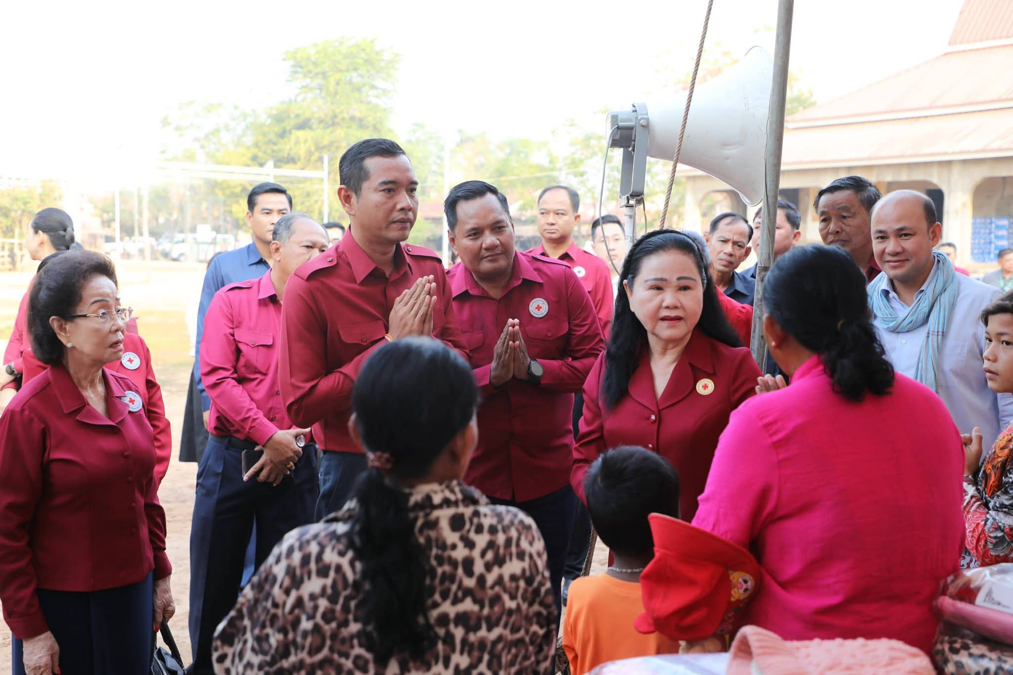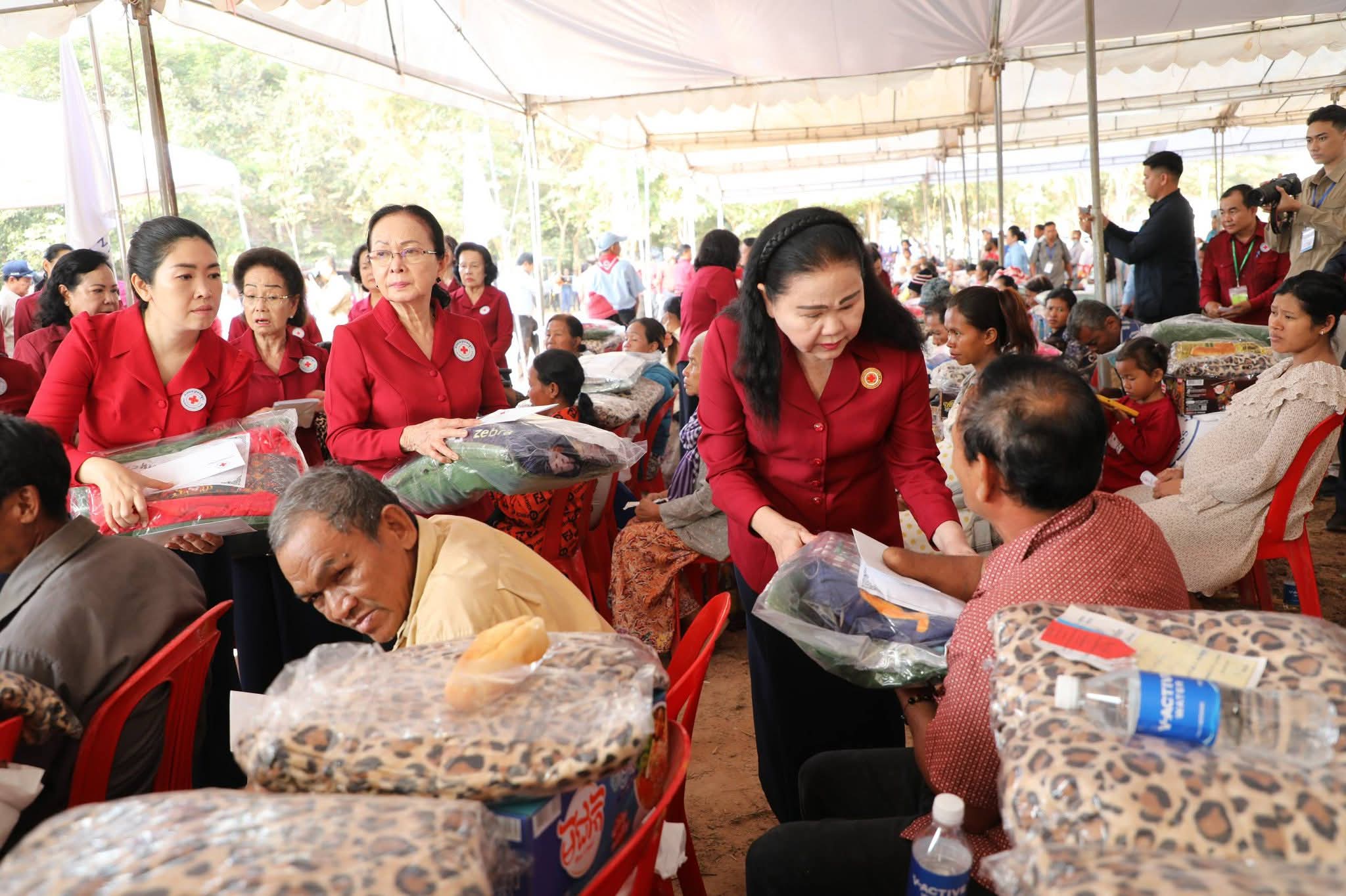សម្តេចកិត្តិព្រឹទ្ធបណ្ឌិត ប៊ុន រ៉ានី ហ៊ុនសែន បានថ្លែងបញ្ជាក់ថា៖ កាកបាទក្រហមកម្ពុជា ដែលជាជំនួយការឱ្យអាជ្ញាធរសាធារណៈក្នុងវិស័យមនុស្សធម៌ ទោះបីជាស្ថិតក្នុងកាលៈទេសៈណាក៏ដោយក៏កាកបាទក្រហមកម្ពុជា នៅតែគិតគូរយកចិត្តទុកដាក់ដល់ប្រជាពលរដ្ឋគ្រប់ពេលវេលា ហើយស្បៀង-សម្ភារដែលនាំមកចែកជូនជួយសម្រាលការលំបាកដល់បងប្អូនប្រជាពលរដ្ឋនាពេលនេះ គឺទទួលបានពីសប្បុរសជនគ្រប់មជ្ឈដ្ឋាន ដែលមានសទ្ធាជ្រះថ្លាឧបត្ថម្ភជាស្បៀង សម្ភារ និងថវិកាជូនដល់កាកបាទក្រហមកម្ពុជា ទើបកាកបាទក្រហមកម្ពុជានាំយកអំណោយទាំងអស់នេះមកជួយសម្រាលការលំបាកដល់បងប្អូនប្រជាពលរដ្ឋនាពេលនេះ។ ជាក់ស្តែង អំណោយដែលនាំយកមកចែកជូននាពេលនេះមាន ភួយ ជាអំណោយរបស់ គណៈកម្មាធិការអន្តរជាតិនៃកាកបាទក្រហម (ICRC), មុងអង្រុត និងភួយ ជាអំណោយរបស់ក្រុមហ៊ុន តូយ៉ូតា ខេមបូឌា, ភេសជ្ជៈបាកាស ជាអំណោយរបស់ អ្នកឧកញ៉ា សុខ សំណាង និងលោកជំទាវ ស៊ីម សុនិមល, នំប៉័ងនិងទឹកសុទ្ធ ជាអំណោយរបស់សាខាកាកបាទក្រហមកម្ពុជា ខេត្តសៀមរាប។ ដោយឡែក លោកជំទាវ អ៊ូ ធីតាពៅ គួចចំរើន បានឧបត្ថម្ភថវិកា ១ម៉ឺនដុល្លារ និងលោកអ្នកឧកញ៉ា ហុង សួន ស៊ីគង់ទ្រីវ ក៏បានឧបត្ថម្ភថវិកា ១ម៉ឺនដុល្លារ ជូនដល់កាកបាទក្រហមកម្ពុជា ដើម្បីសកម្មភាពមនុស្សធម៌ផងដែរ។