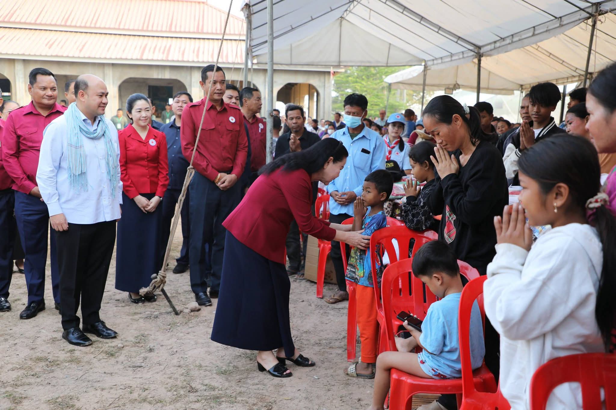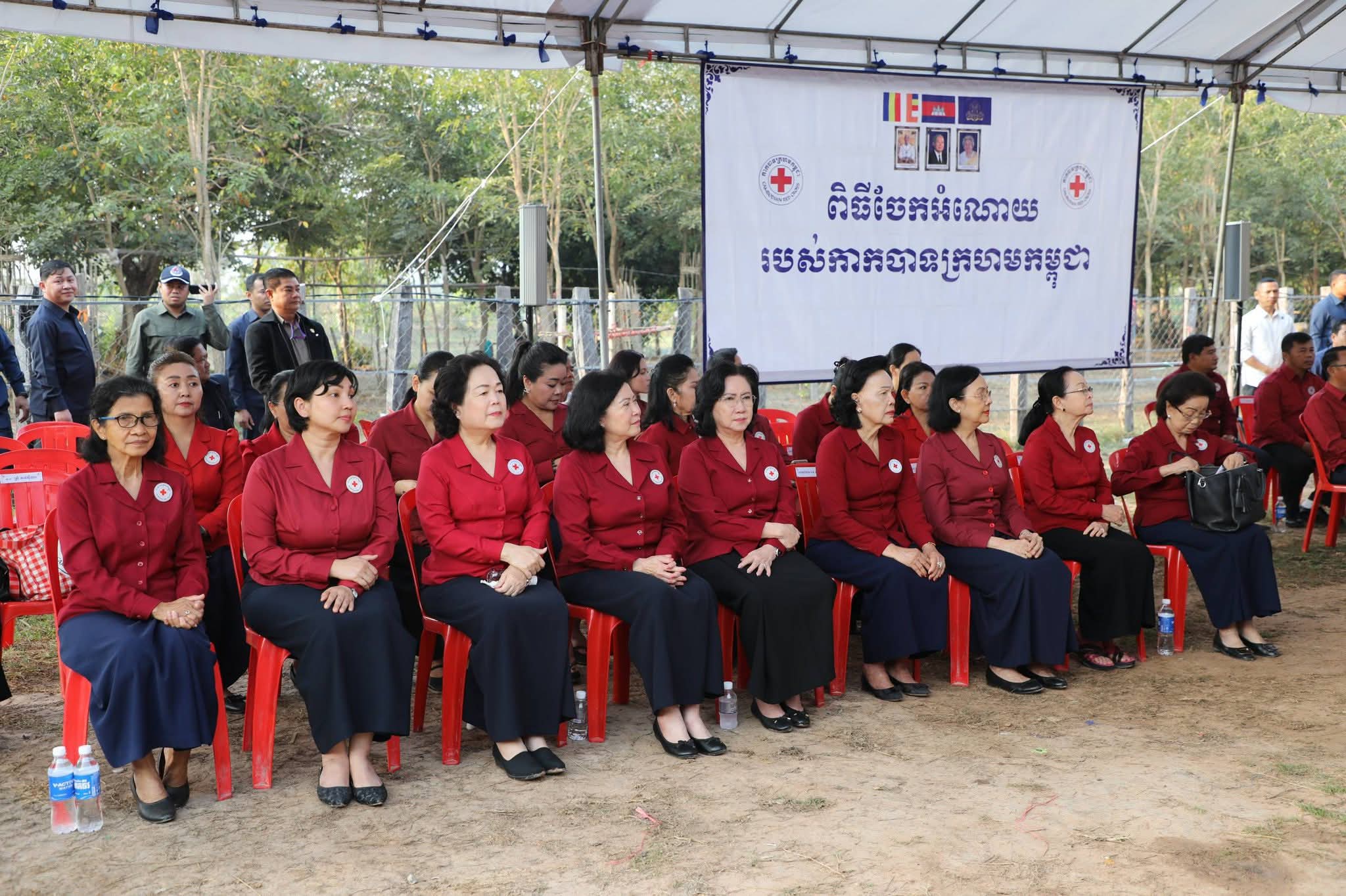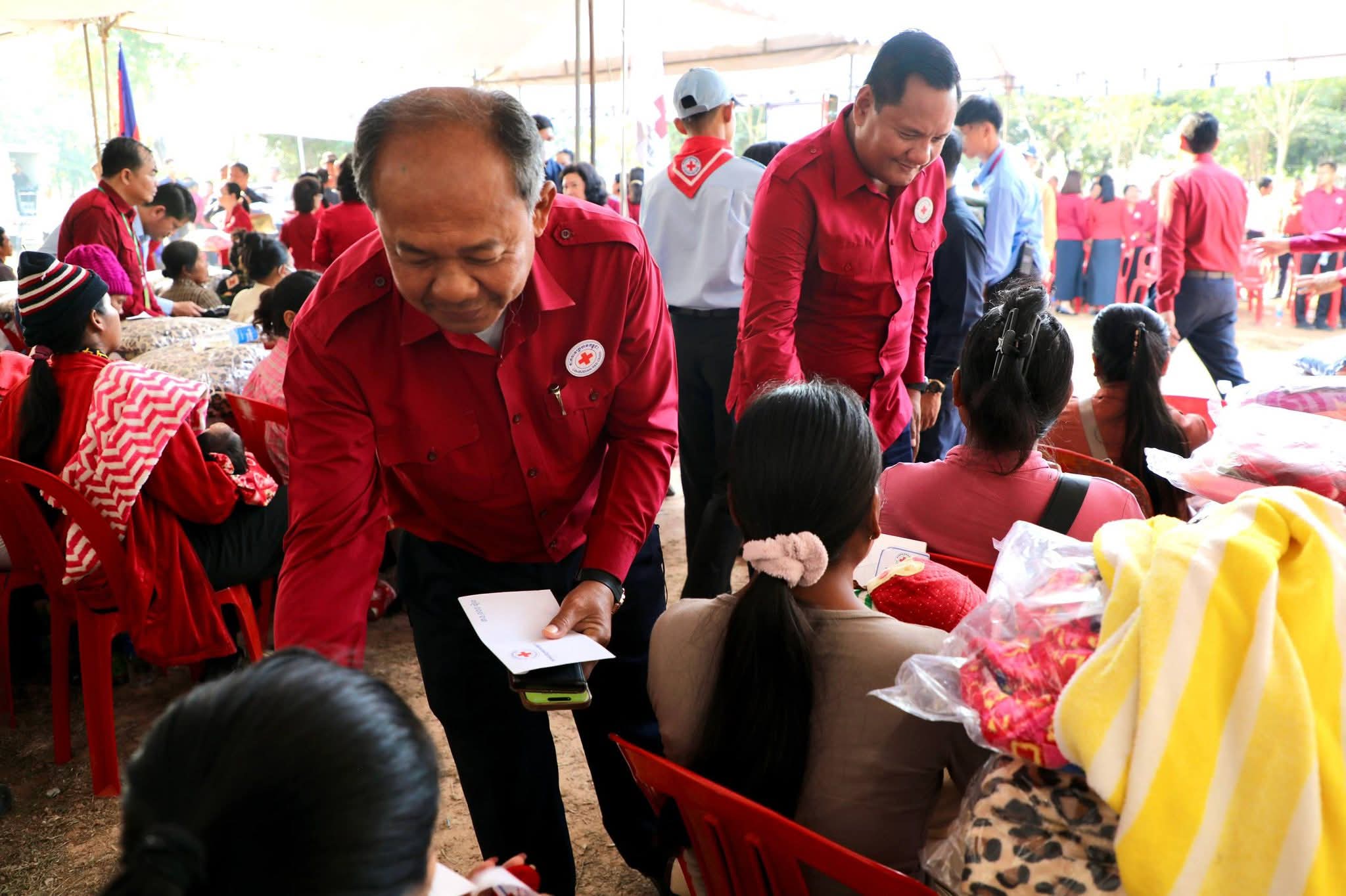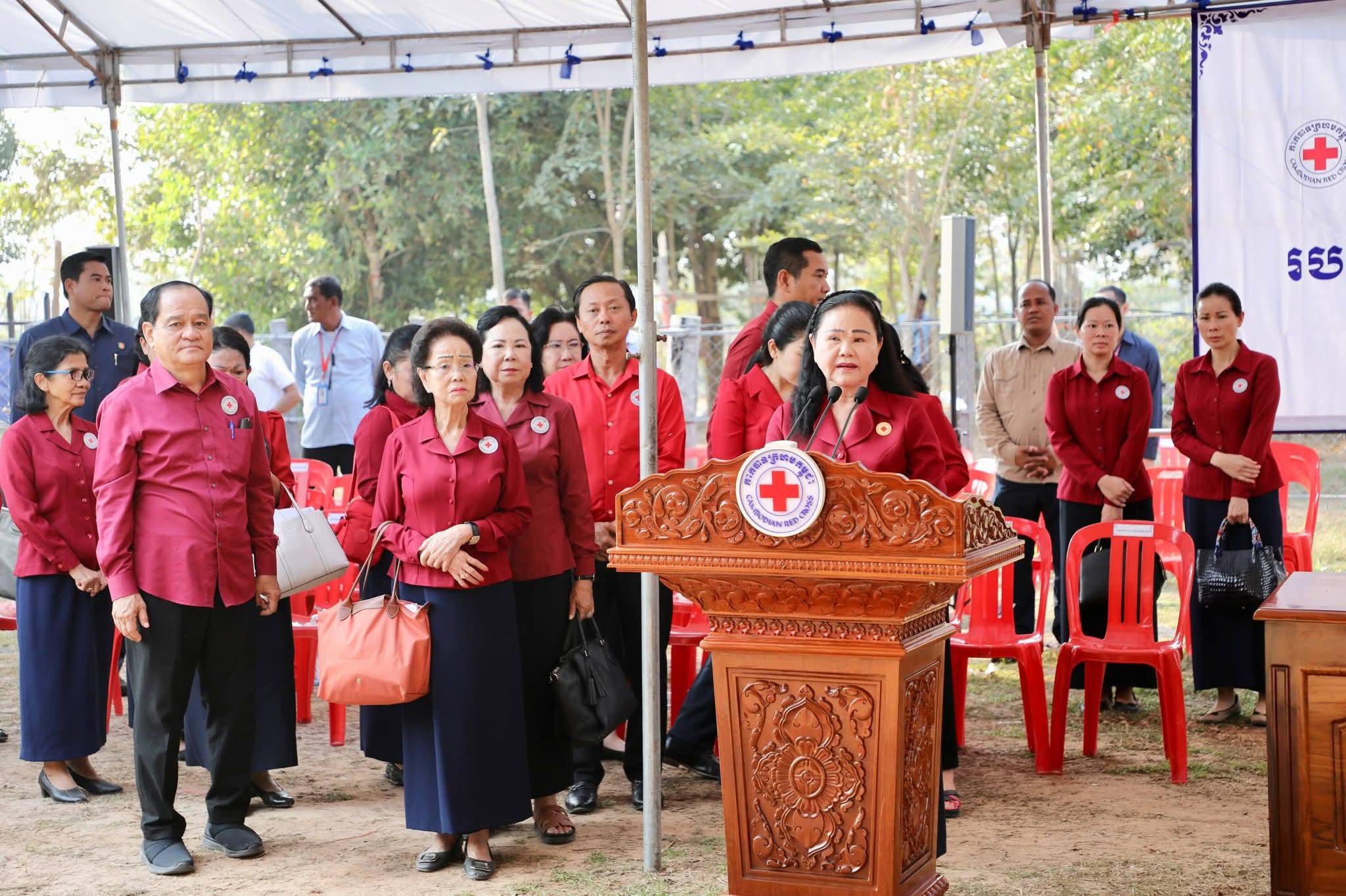សម្តេចកិត្តិព្រឹទ្ធបណ្ឌិត ប៊ុន រ៉ានី ហ៊ុនសែន បានថ្លែងបញ្ជាក់ថា៖ កាកបាទក្រហមកម្ពុជា ដែលជាជំនួយការឱ្យអាជ្ញាធរសាធារណៈក្នុងវិស័យមនុស្សធម៌ ទោះបីជាស្ថិតក្នុងកាលៈទេសៈណាក៏ដោយក៏កាកបាទក្រហមកម្ពុជា នៅតែគិតគូរយកចិត្តទុកដាក់ដល់ប្រជាពលរដ្ឋគ្រប់ពេលវេលា ហើយស្បៀង-សម្ភារដែលនាំមកចែកជូនជួយសម្រាលការលំបាកដល់បងប្អូនប្រជាពលរដ្ឋនាពេលនេះ គឺទទួលបានពីសប្បុរសជនគ្រប់មជ្ឈដ្ឋាន ដែលមានសទ្ធាជ្រះថ្លាឧបត្ថម្ភជាស្បៀង សម្ភារ និងថវិកាជូនដល់កាកបាទក្រហមកម្ពុជា ទើបកាកបាទក្រហមកម្ពុជានាំយកអំណោយទាំងអស់នេះមកជួយសម្រាលការលំបាកដល់បងប្អូនប្រជាពលរដ្ឋនាពេលនេះ។ ជាក់ស្តែង អំណោយដែលនាំយកមកចែកជូននាពេលនេះមាន ភួយ ជាអំណោយរបស់ គណៈកម្មាធិការអន្តរជាតិនៃកាកបាទក្រហម (ICRC), មុងអង្រុត និងភួយ ជាអំណោយរបស់ក្រុមហ៊ុន តូយ៉ូតា ខេមបូឌា, ភេសជ្ជៈបាកាស ជាអំណោយរបស់ អ្នកឧកញ៉ា សុខ សំណាង និងលោកជំទាវ ស៊ីម សុនិមល, នំប៉័ងនិងទឹកសុទ្ធ ជាអំណោយរបស់សាខាកាកបាទក្រហមកម្ពុជា ខេត្តសៀមរាប។ ដោយឡែក លោកជំទាវ អ៊ូ ធីតាពៅ គួចចំរើន បានឧបត្ថម្ភថវិកា ១ម៉ឺនដុល្លារ និងលោកអ្នកឧកញ៉ា ហុង សួន ស៊ីគង់ទ្រីវ ក៏បានឧបត្ថម្ភថវិកា ១ម៉ឺនដុល្លារ ជូនដល់កាកបាទក្រហមកម្ពុជា ដើម្បីសកម្មភាពមនុស្សធម៌ផងដែរ។