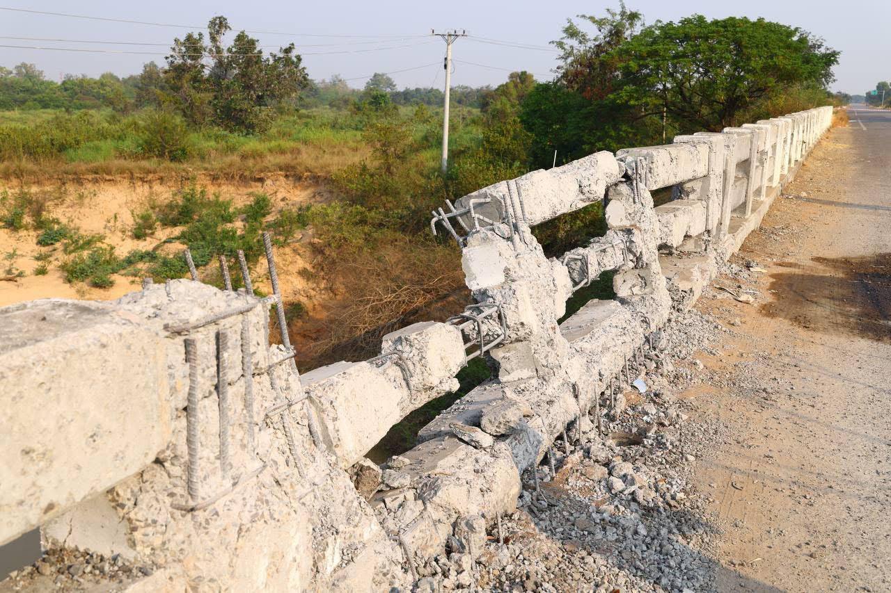 ឯកឧត្តម ប៉េង ពោធិ៍នា រដ្ឋមន្ត្រីក្រសួងសាធារណការ និងដឹកជញ្ជូន នាព្រឹកថ្ងៃទី១៧ ខែមករា ឆ្នាំ២០២៦នេះ បានដឹកនាំគណៈប្រតិភូក្រសួងចុះពិនិត្យ និងវាយតម្លៃលើស្ថានភាពខូចខាតស្ពានអូរជីក ស្ថិតនៅព្រំប្រទល់ ស្រុកស្រីស្នំ ខេត្តសៀមរាប និងស្រុកចុងកាល់ ខេត្តឧត្តរមានជ័យ ដែលបានរងការខូចខាតដោយសារសង្គ្រាមឈ្លានពានពីភាគីថៃ នាពេលកន្លងមក។