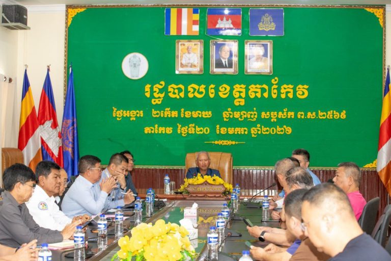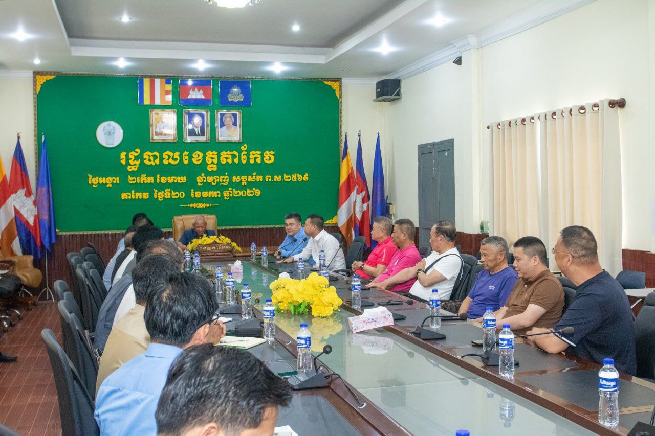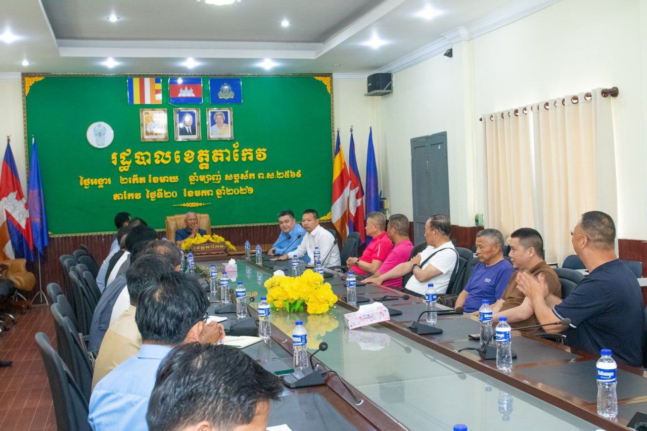 (តាកែវ)៖ នៅក្នុងឱកាសអញ្ជើញទទួលស្វាគមន៍ក្រុមអ្នកវិនិយោគមកពីប្រទេសចិន នៅព្រឹកថ្ងៃទី២០ ខែមករា ឆ្នាំ២០២៦នេះ ឯកឧត្តម វ៉ី សំណាង អភិបាលខេត្តតាកែវ បានស្វាគមន៍ និងធ្វើការលើកទឹកចិត្តដល់ក្រុមហ៊ុន អ្នកវិនិយោគទុនមកពីប្រទេសចិន ឲ្យចូលមកបណ្តាក់ទុននៅក្នុងខេត្តតាកែវ ឲ្យបានកាន់តែច្រើនឡើង ជាពិសេសបង្កើតរោងចក្រថ្មីៗ ដើម្បីបង្កើតការងារជូនប្រជាពលរដ្ឋនៅក្នុងខេត្ត។