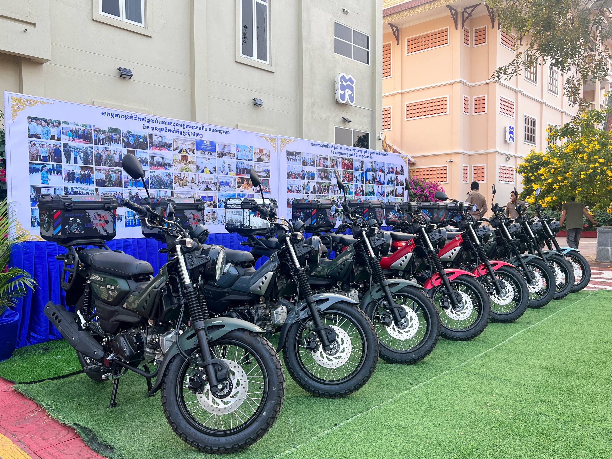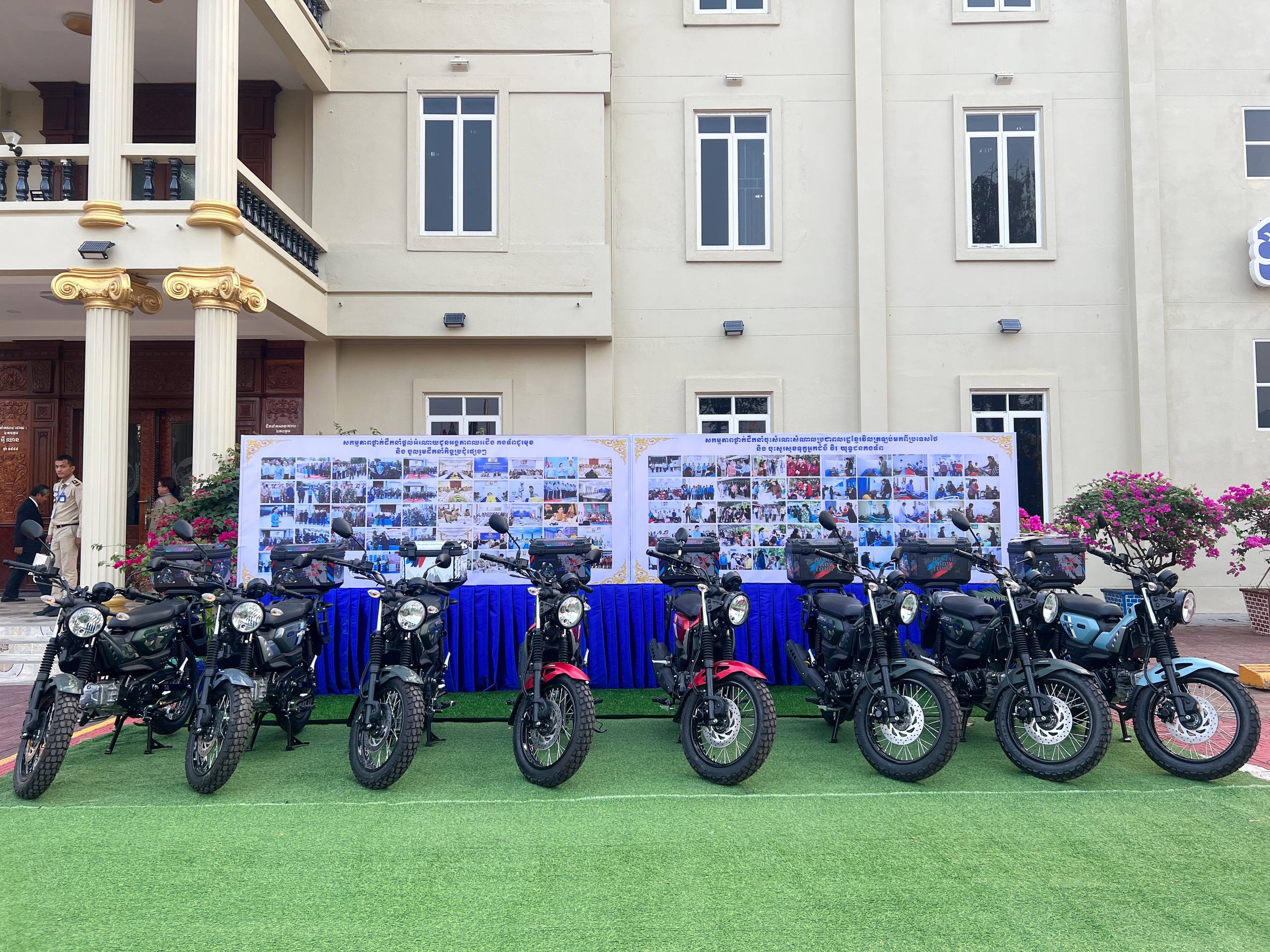 ឯកឧត្តមទេសរដ្ឋមន្ត្រី អ៉ី ឈាន ប្រគល់ម៉ូតូថ្មីចំនួន៨គ្រឿង ជូនសមត្ថកិច្ចក្នុងខេត្តប៉ៃលិន ដើម្បីចុះល្បាត ធានាសន្តិសុខ សណ្ដាប់ធ្នាប់ និងសុវត្ថិភាពមូលដ្ឋាន