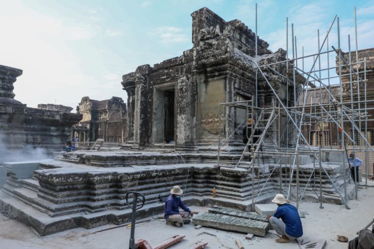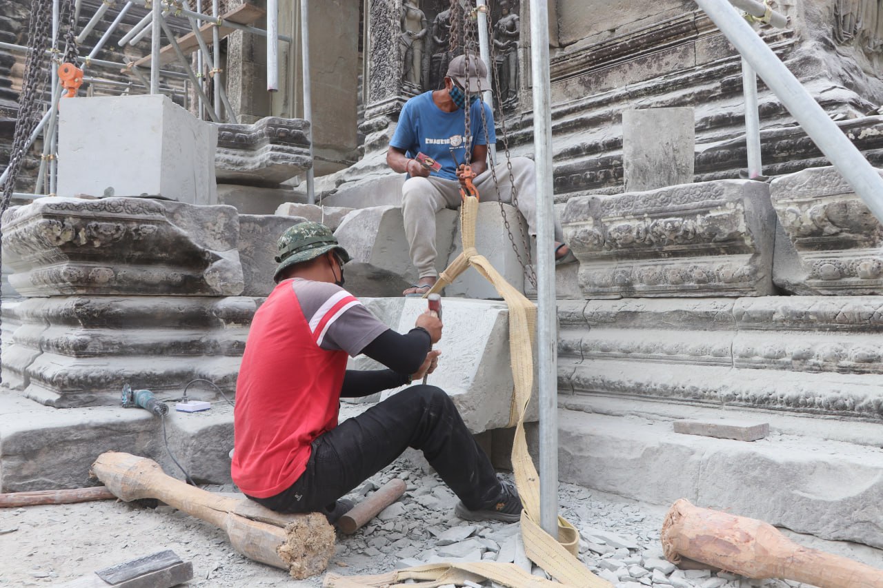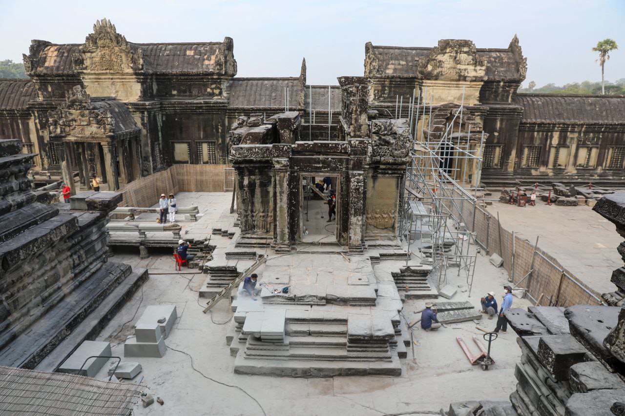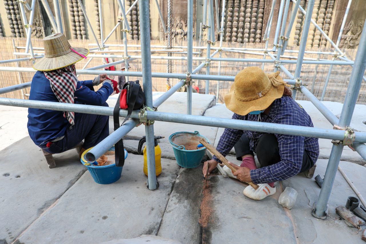 (សៀមរាប)៖ ក្រុមអ្នកជំនាញរបស់នាយកដ្ឋានអភិរក្សប្រាសាទ និងបុរាណវិទ្យា នៃអាជ្ញាធរជាតិអប្សរា គ្រោងនឹងចំណាយពេល៤ខែ ដើម្បីជួសជុលបណ្ណាល័យខាងជើងនៃជាន់ទី២ របស់ប្រាសាទអង្គរវត្ត ដែលមានការខូចខាតឱ្យរឹងមាំឡើងវិញ។