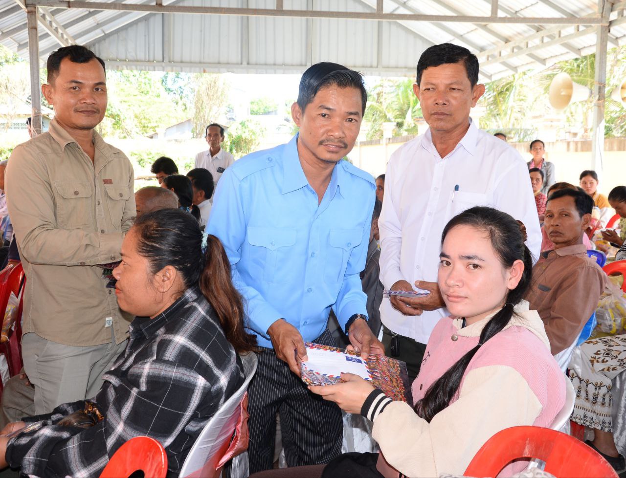 ជាចុងបញ្ចប់លោក ហ៊ុន សុខា និងក្រុមការងារទាំងអស់ បាននាំយកថវិកាជូនដល់គ្រួសារវីរៈកងទ័ព ក្នុងម្នាក់ៗទទួលបានថវិកាចំនួន៣ម៉ឺនរៀលជាមួយនឹង ការឧបត្ថម្ភ សម្ភារនិងគ្រឿងឧបភោគបរិភោគមួយចំនួនធំទៀត ដែលមានដូចជា មី ទឹកបរិសុទ្ធ ទឹកត្រី ទឹកស៊ីអីវ ប្រេងឆា សារ៉ុងពុម្ពផងដែរ៕