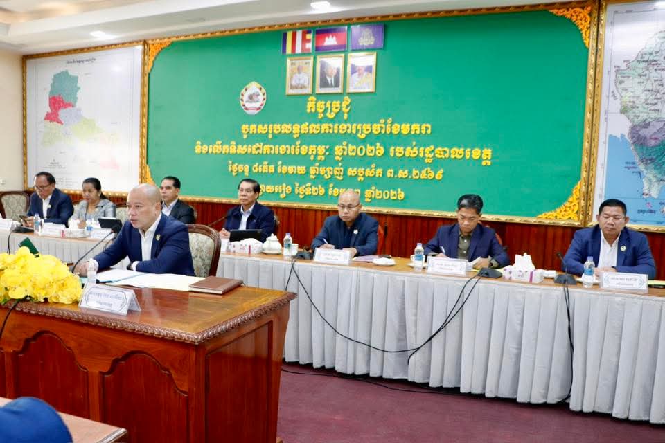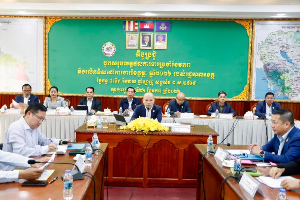 នៅថ្ងៃចន្ទ៨កើត ខែមាឃ ឆ្នាំម្សាញស័ប្តស័កព.ស២៥៦៩ ត្រូវនឹងថ្ងៃទី២៦ ខែមករា ឆ្នាំ២០២៦នេះ ឯកឧត្តម ប៉េង ពោធិ៍សា អភិបាលនៃគណៈអភិបាលខេត្តស្វាយរៀងបានអញ្ជើញជាអធិបតីក្នុងកិច្ចប្រជុំបូកសរុបលទ្ធផលការងារប្រចាំខែមករា និងលើកទិសដៅការងារខែកុម្ភះ ឆ្នាំ២០២៦ របស់រដ្ឋបាលខេត្តស្វាយរៀង។